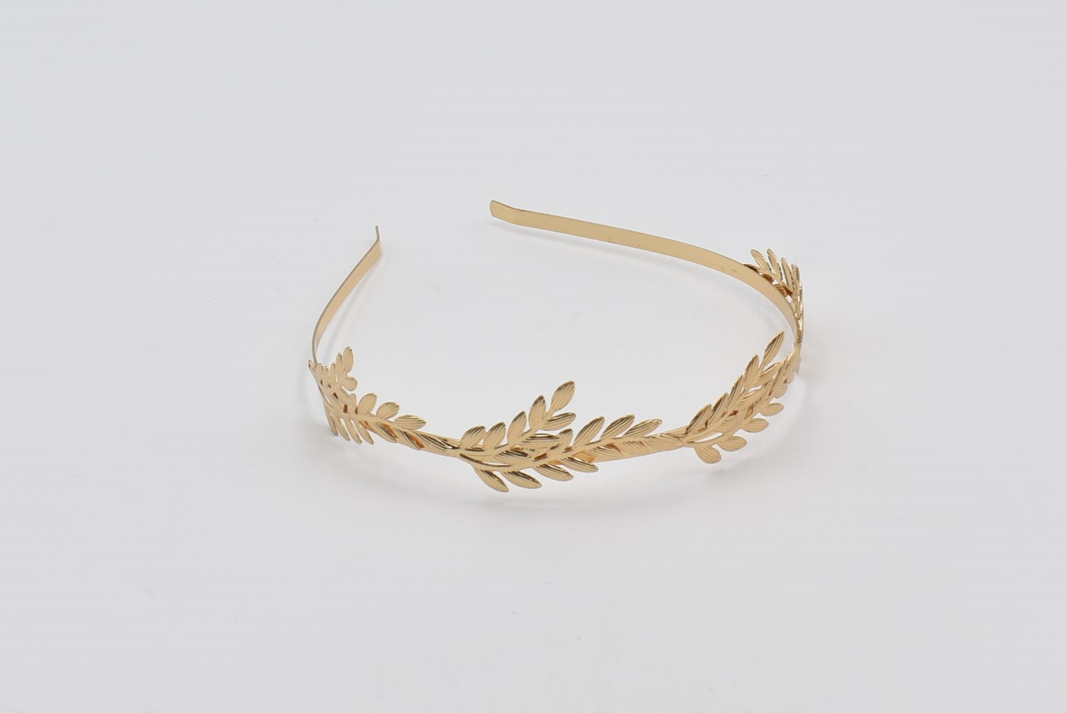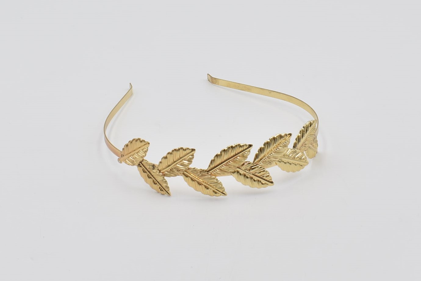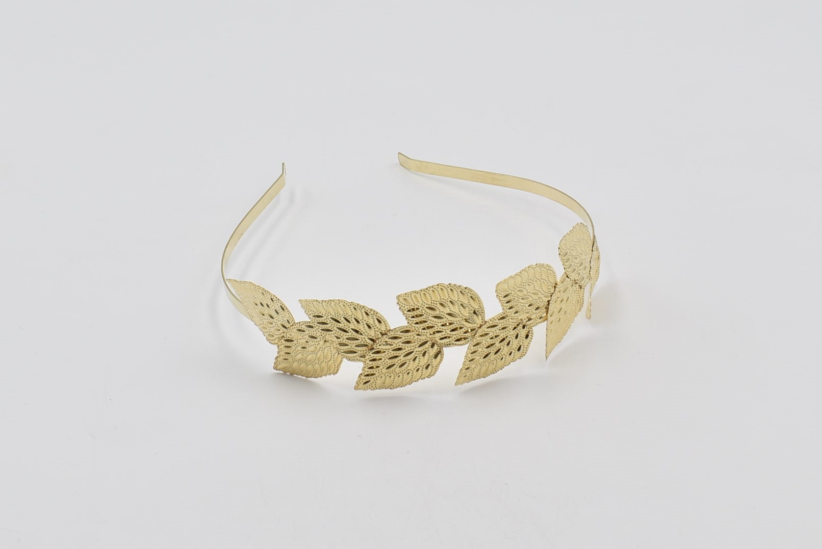 Κομψή στέκα μαλλιών με μεταλλικά φύλλα δάφνης σε χρυσό χρώμα.