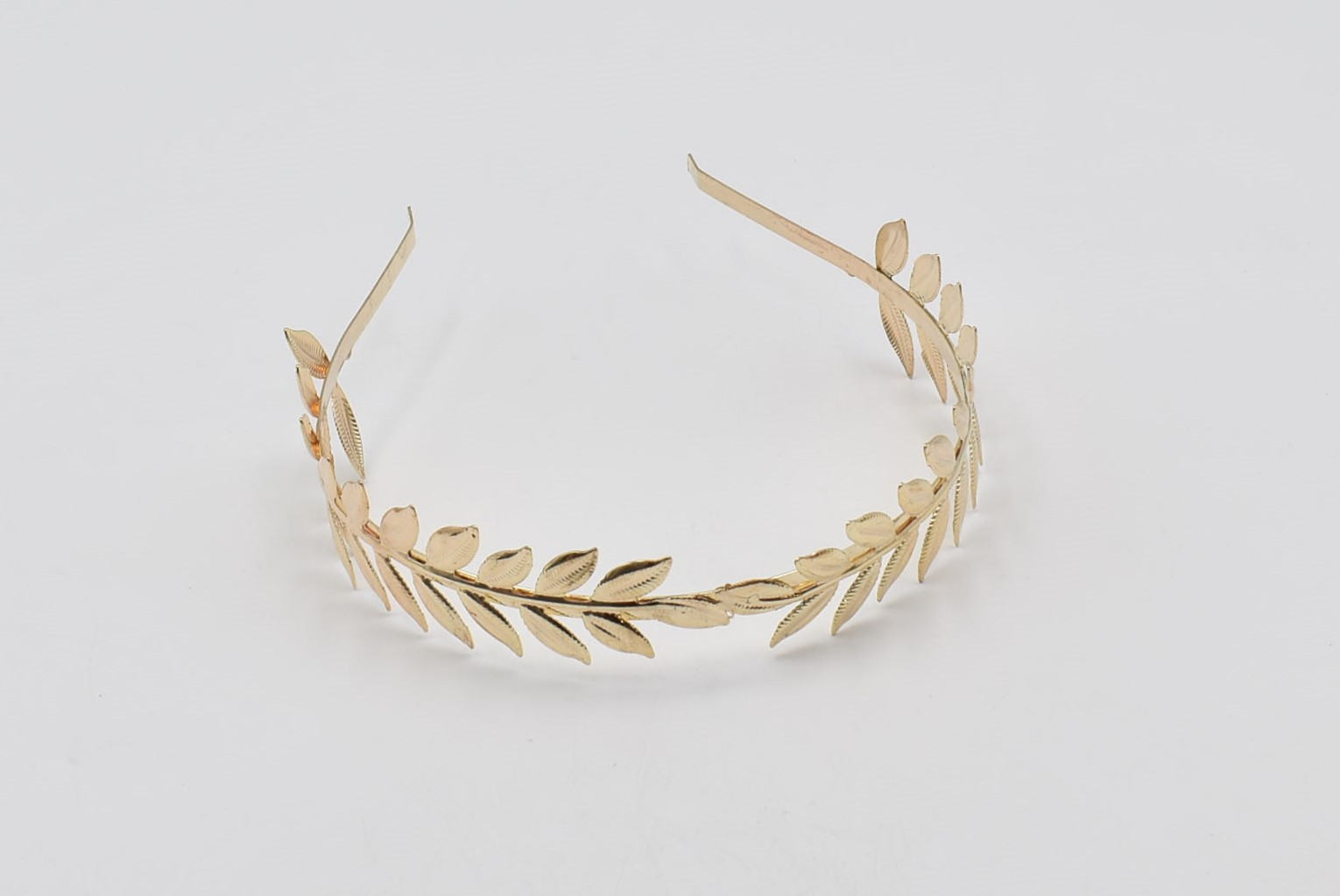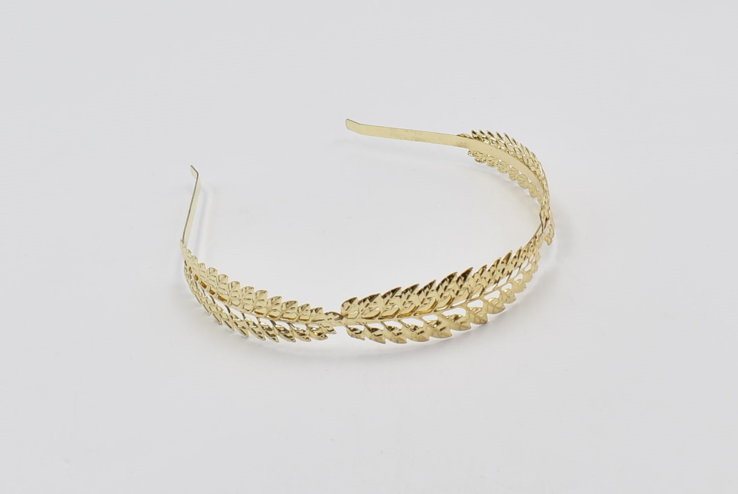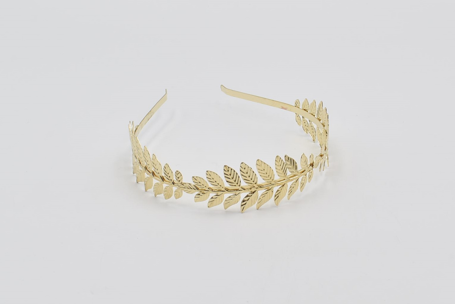 Κομψή στέκα μαλλιών με μεταλλικά φύλλα δάφνης σε χρυσό χρώμα.