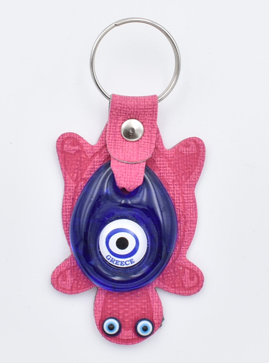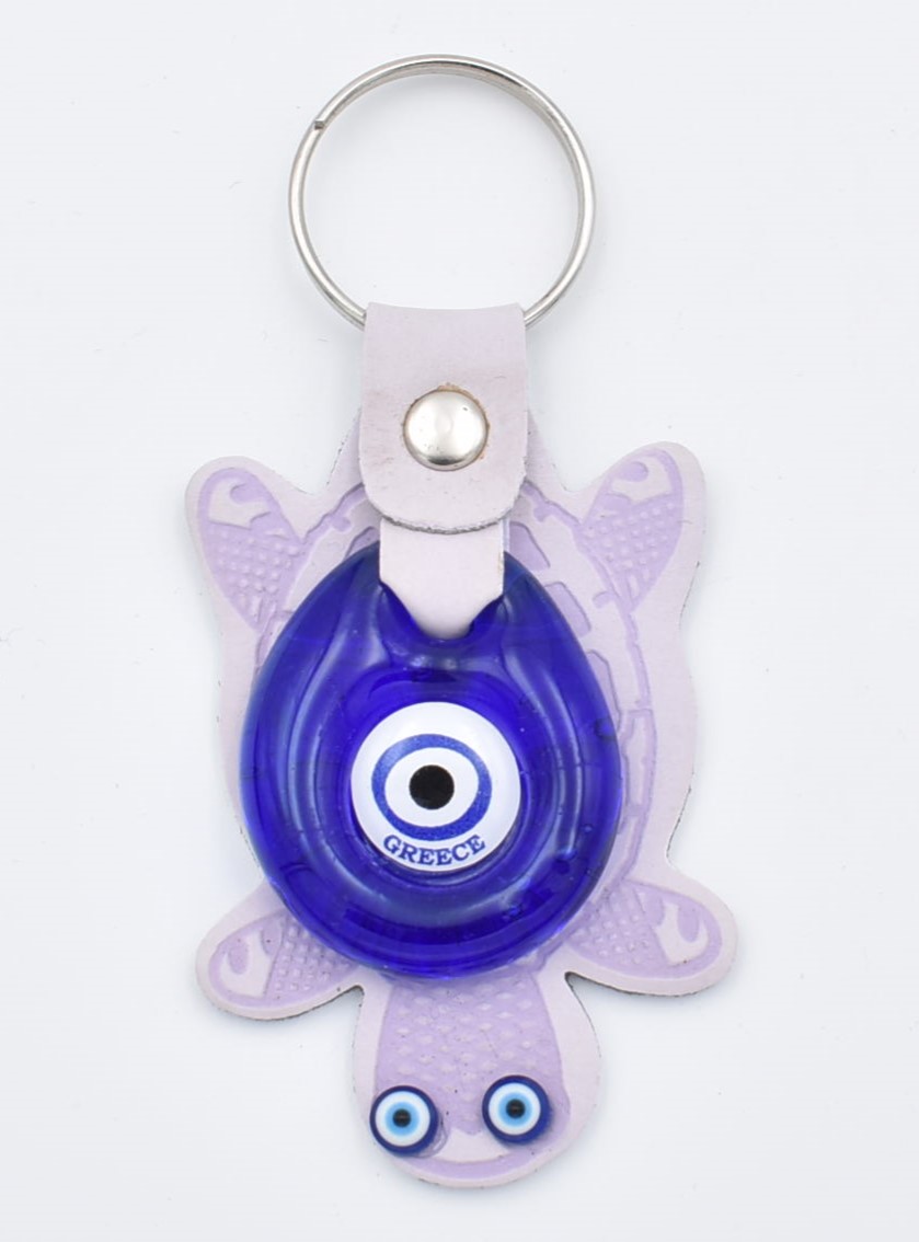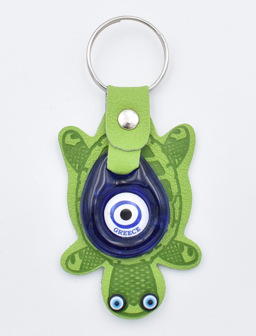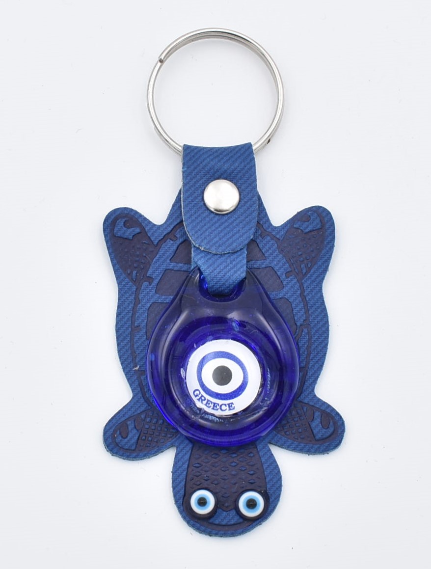 Κατασκευασμένο από ποιοτικό δέρμα σε σχήμα χελώνα , διακοσμημένο με γυάλινο ματάκι και ανάγλυφη απεικόνιση της Ακρόπολης και της λέξης “GREECE”.