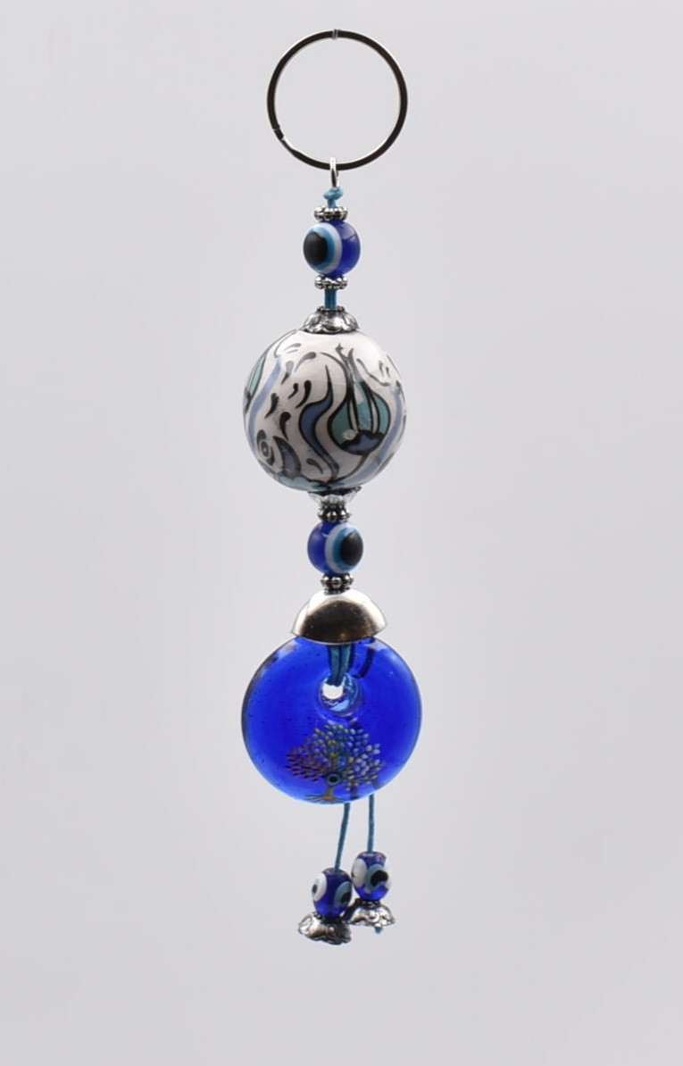 Μπρελόκ με Κεραμική Μπίλια, Μάτι & Χάντρες
