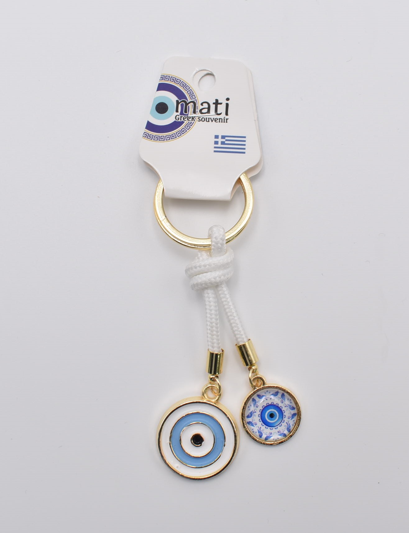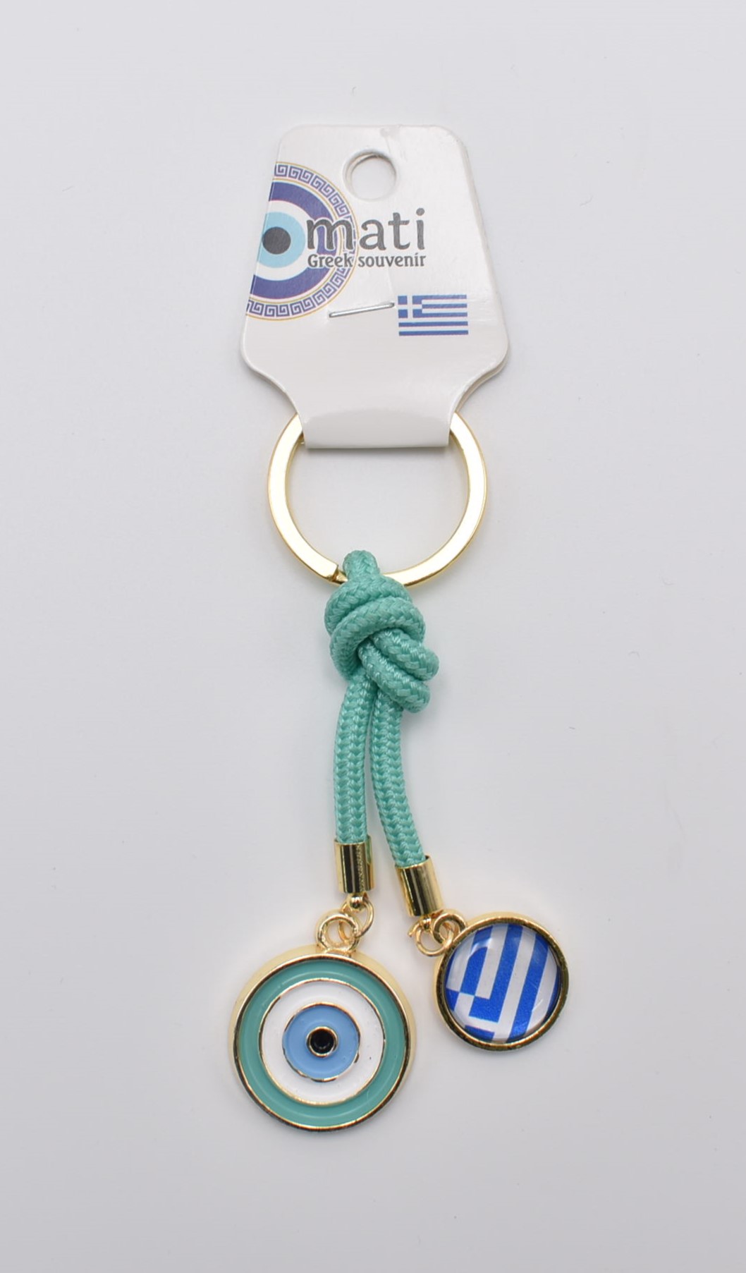Μπρελόκ Μεταλλικό Μάτι με Ελληνική Σημαία & Σκοινάκι