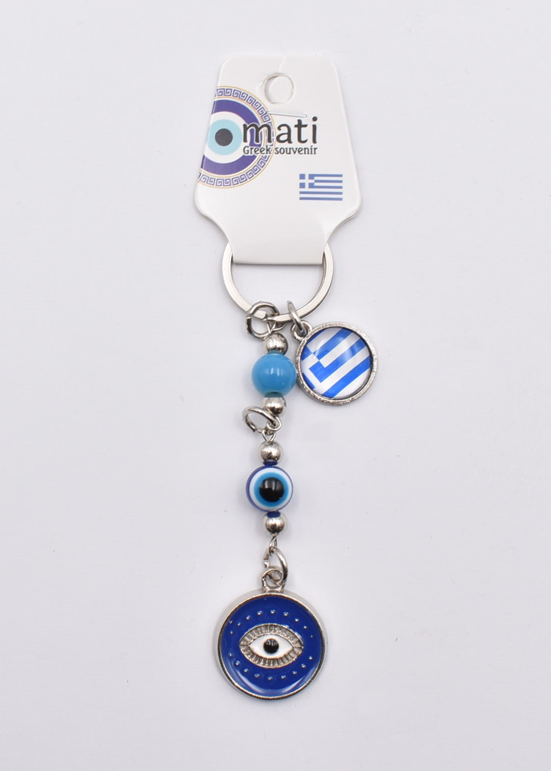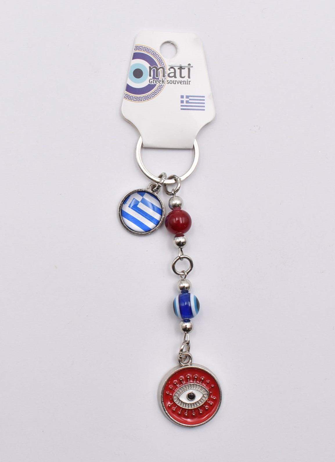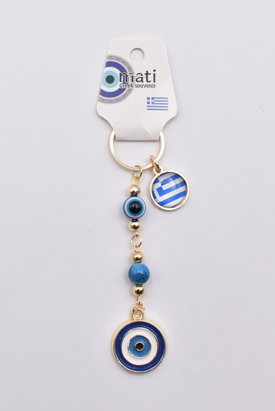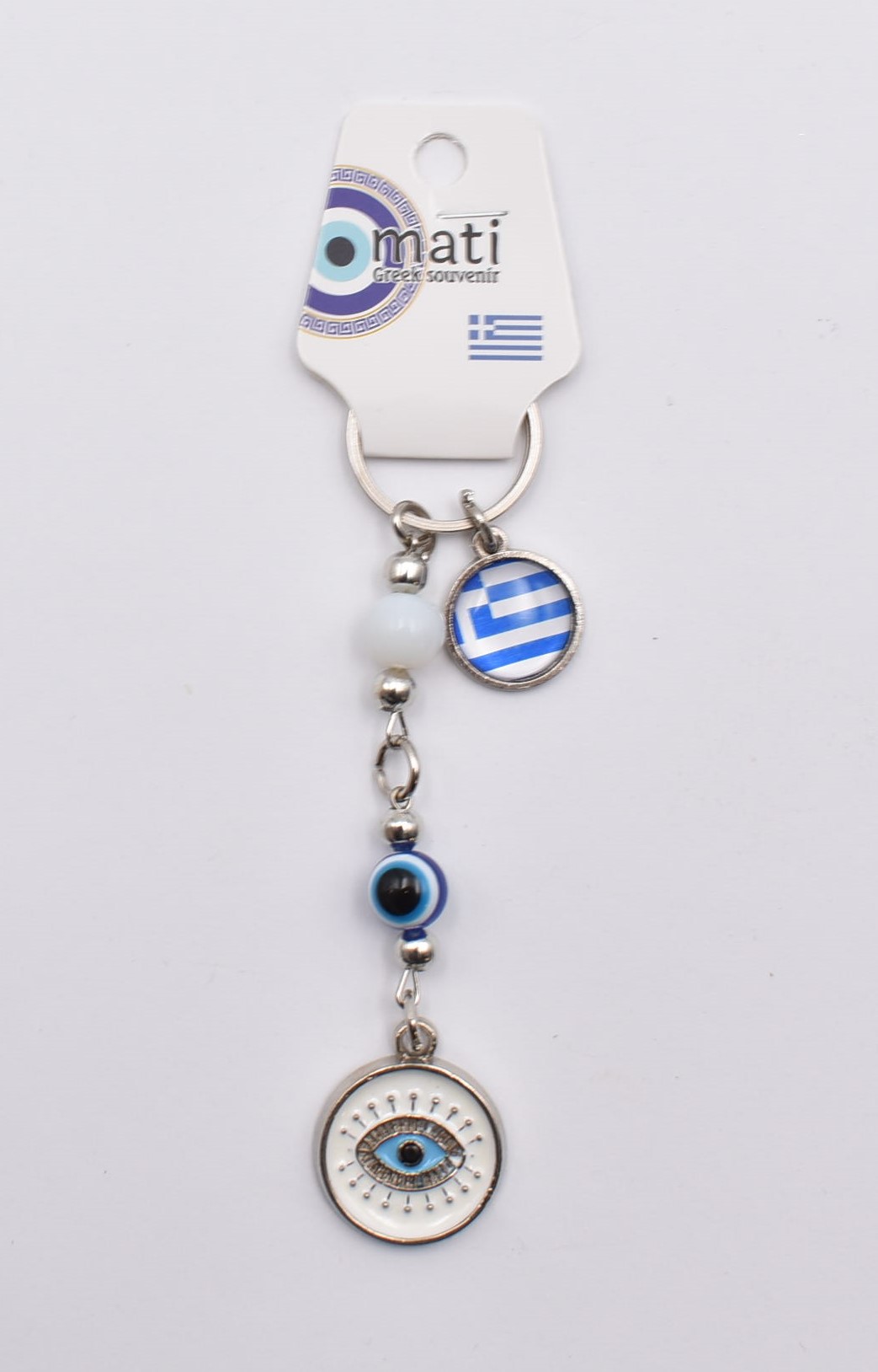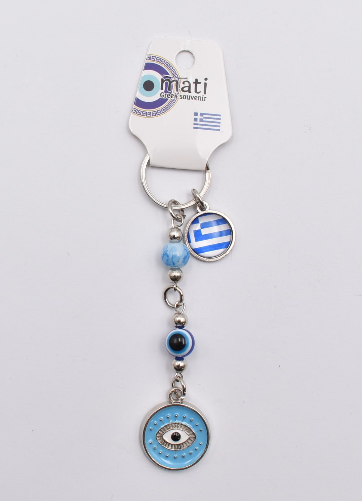 Μεταλλικό Μπρελόκ με Μάτι, Χάντρα & Ελληνική Σημαία