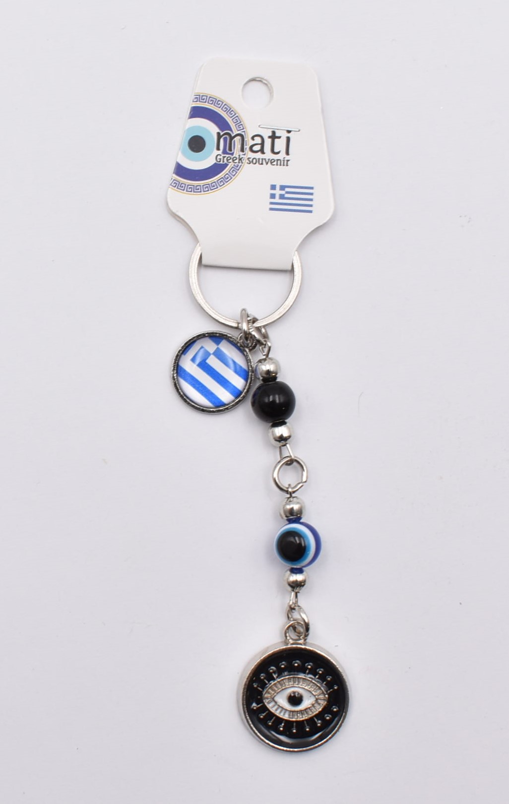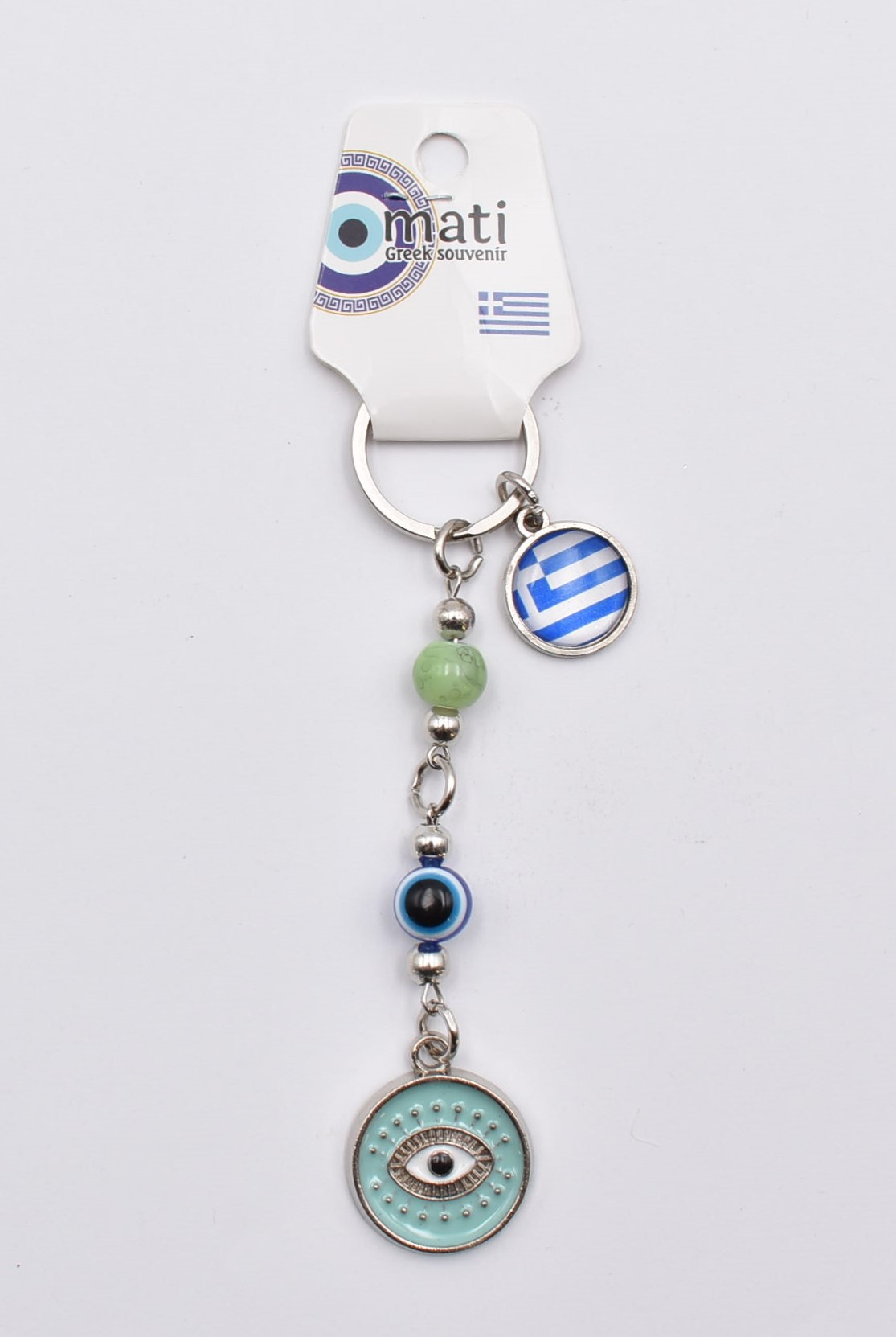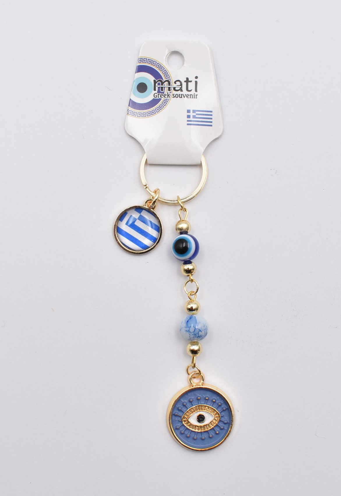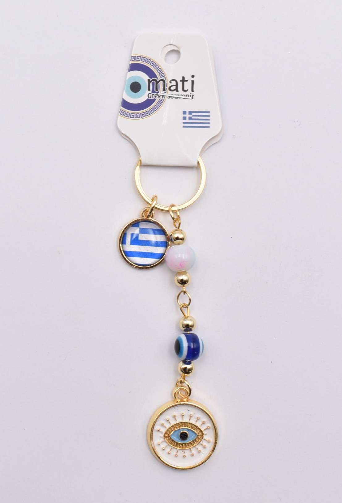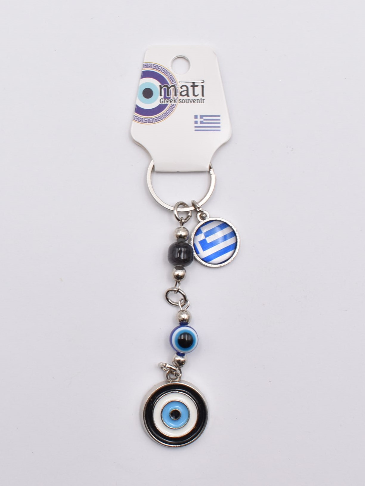 Μεταλλικό Μπρελόκ με Μάτι, Χάντρα & Ελληνική Σημαία