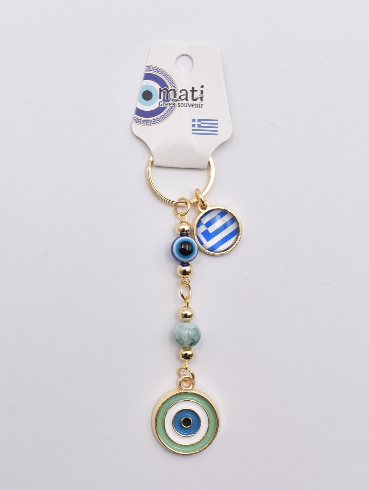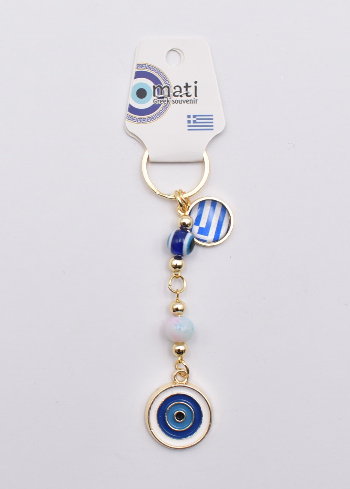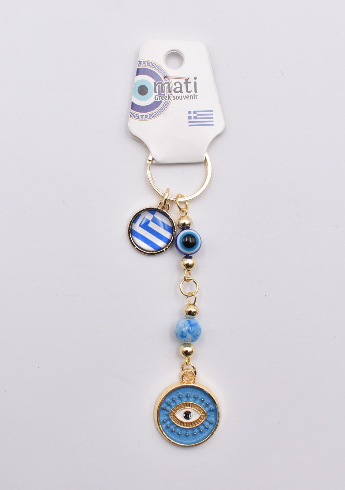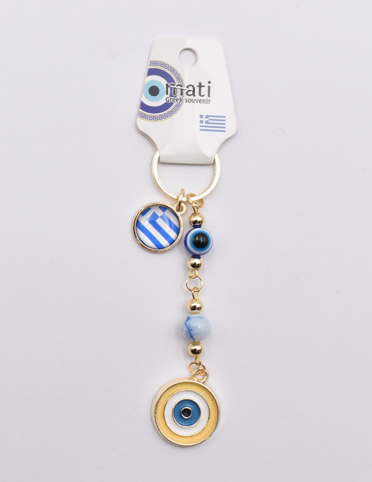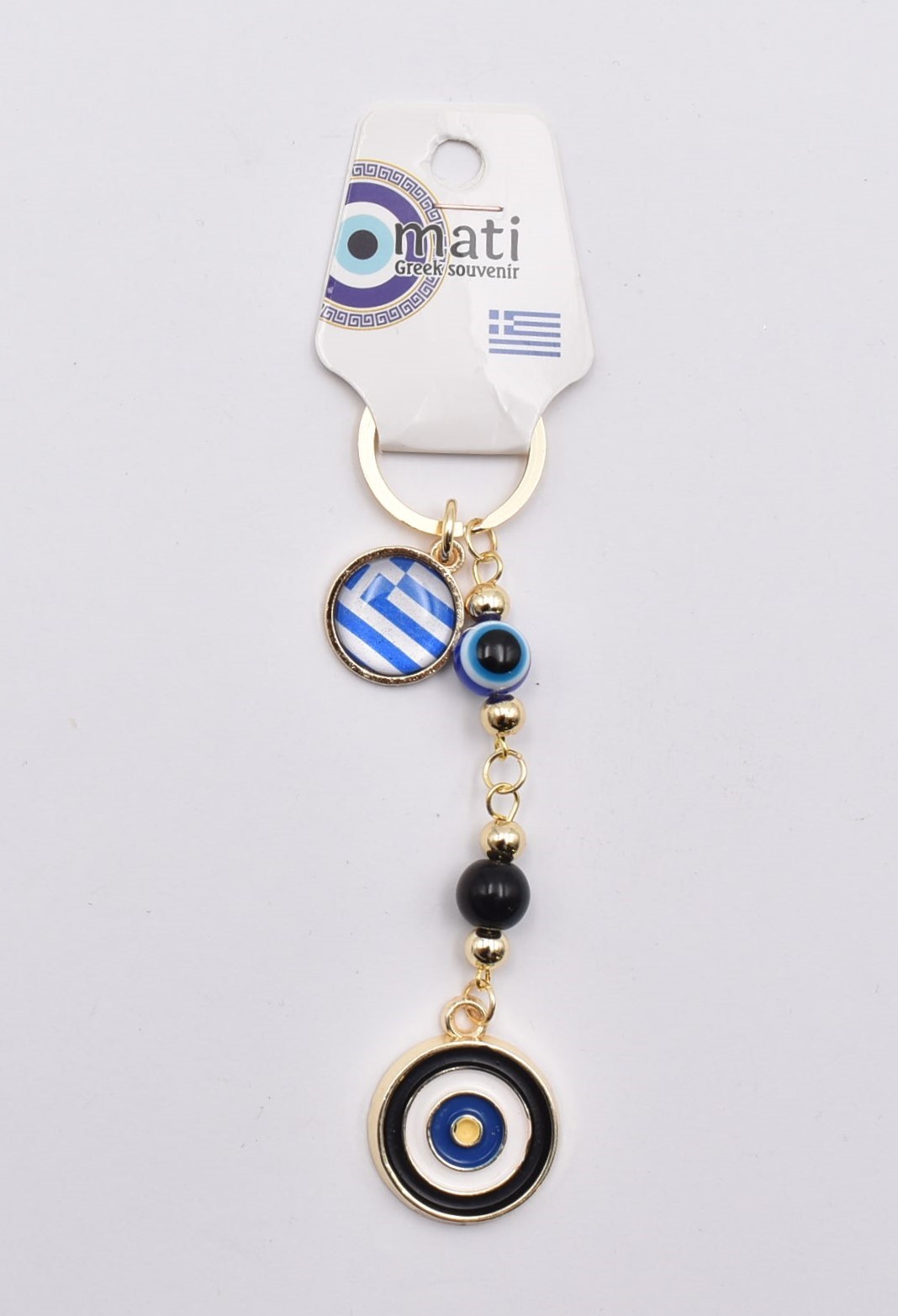 Μεταλλικό Μπρελόκ με Μάτι, Χάντρα & Ελληνική Σημαία