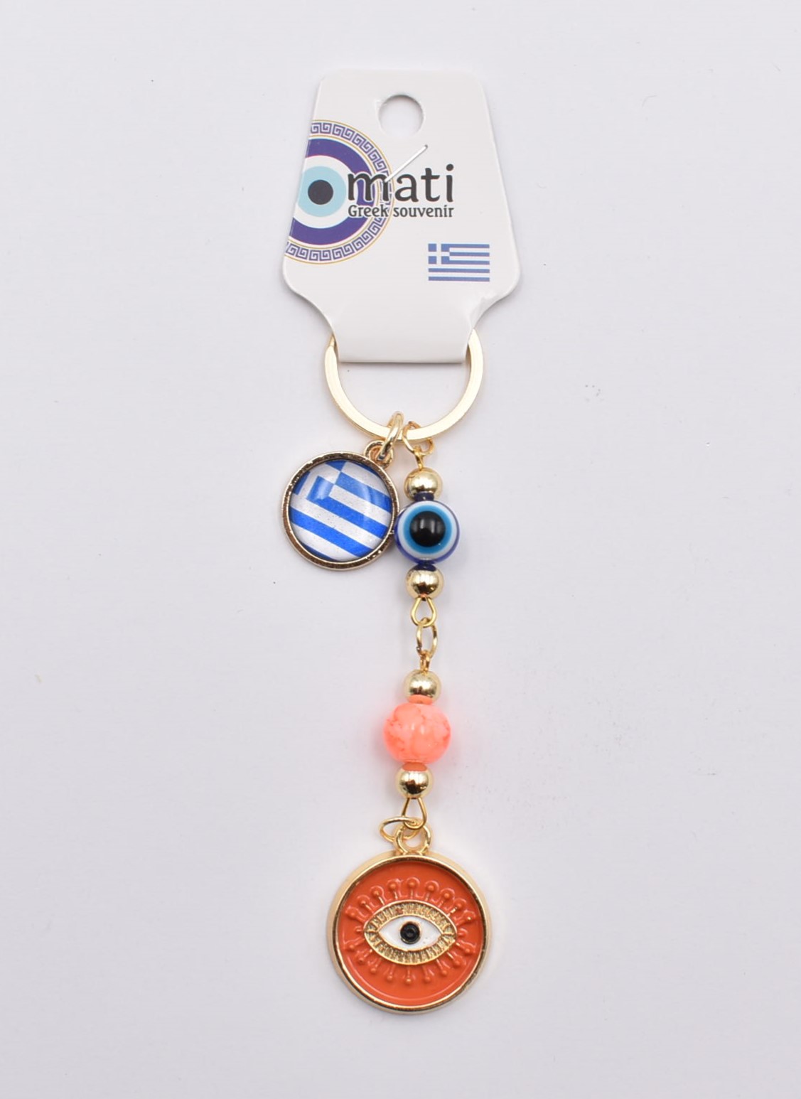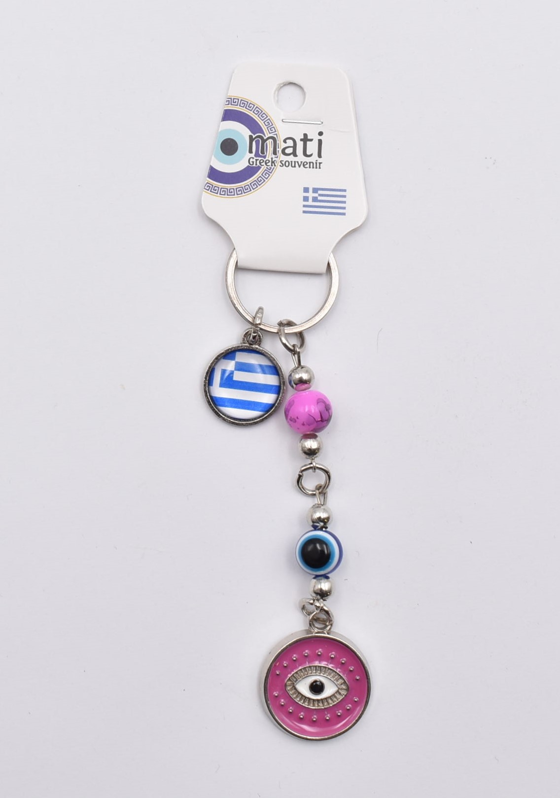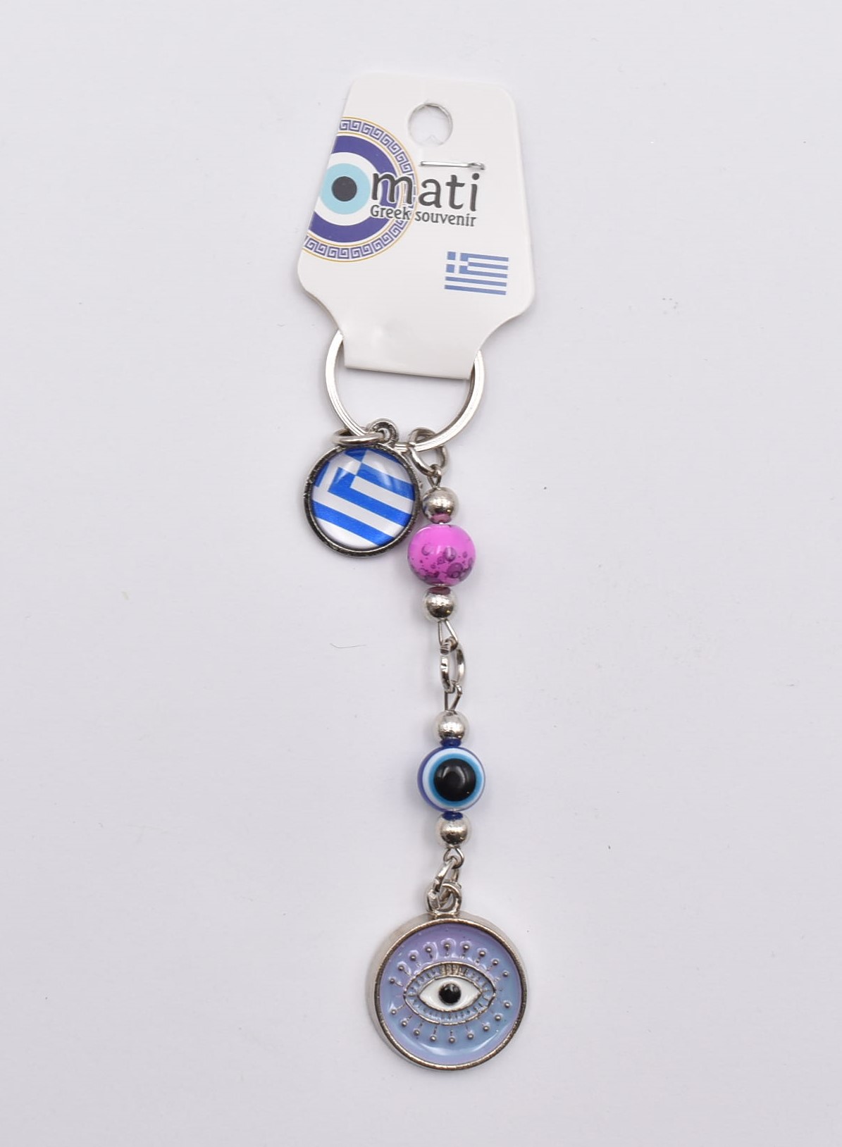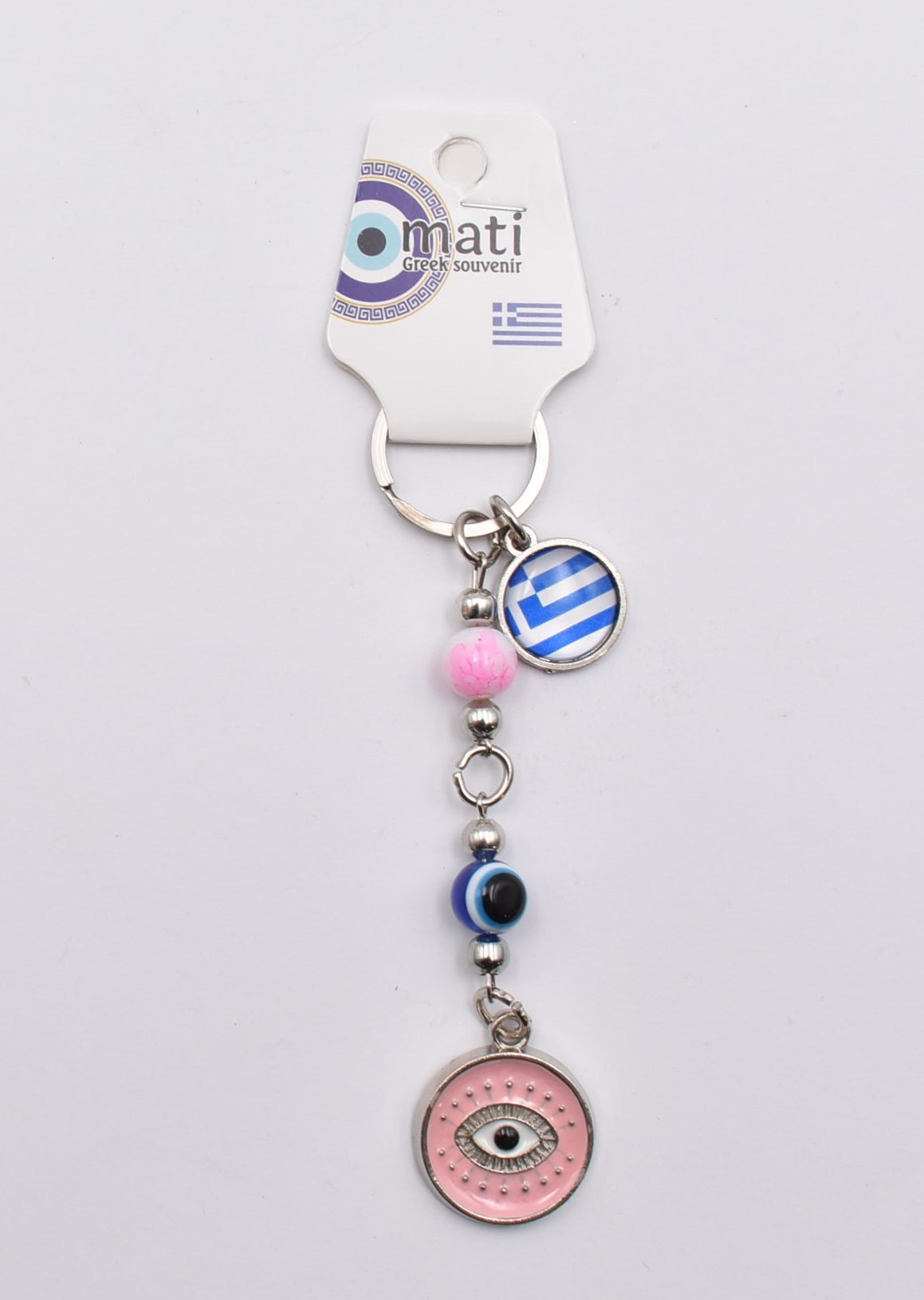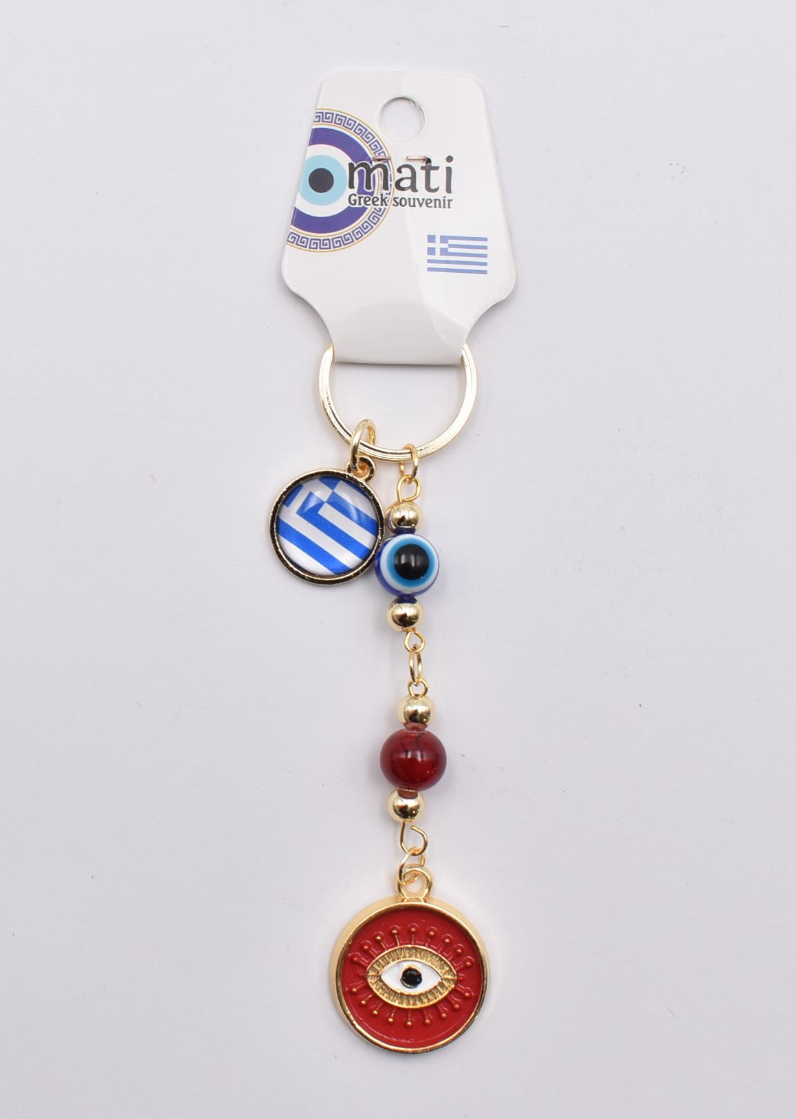 Μεταλλικό Μπρελόκ με Μάτι, Χάντρα & Ελληνική Σημαία