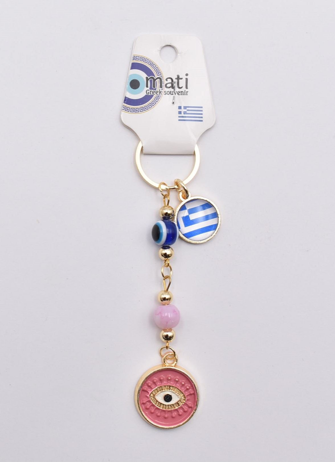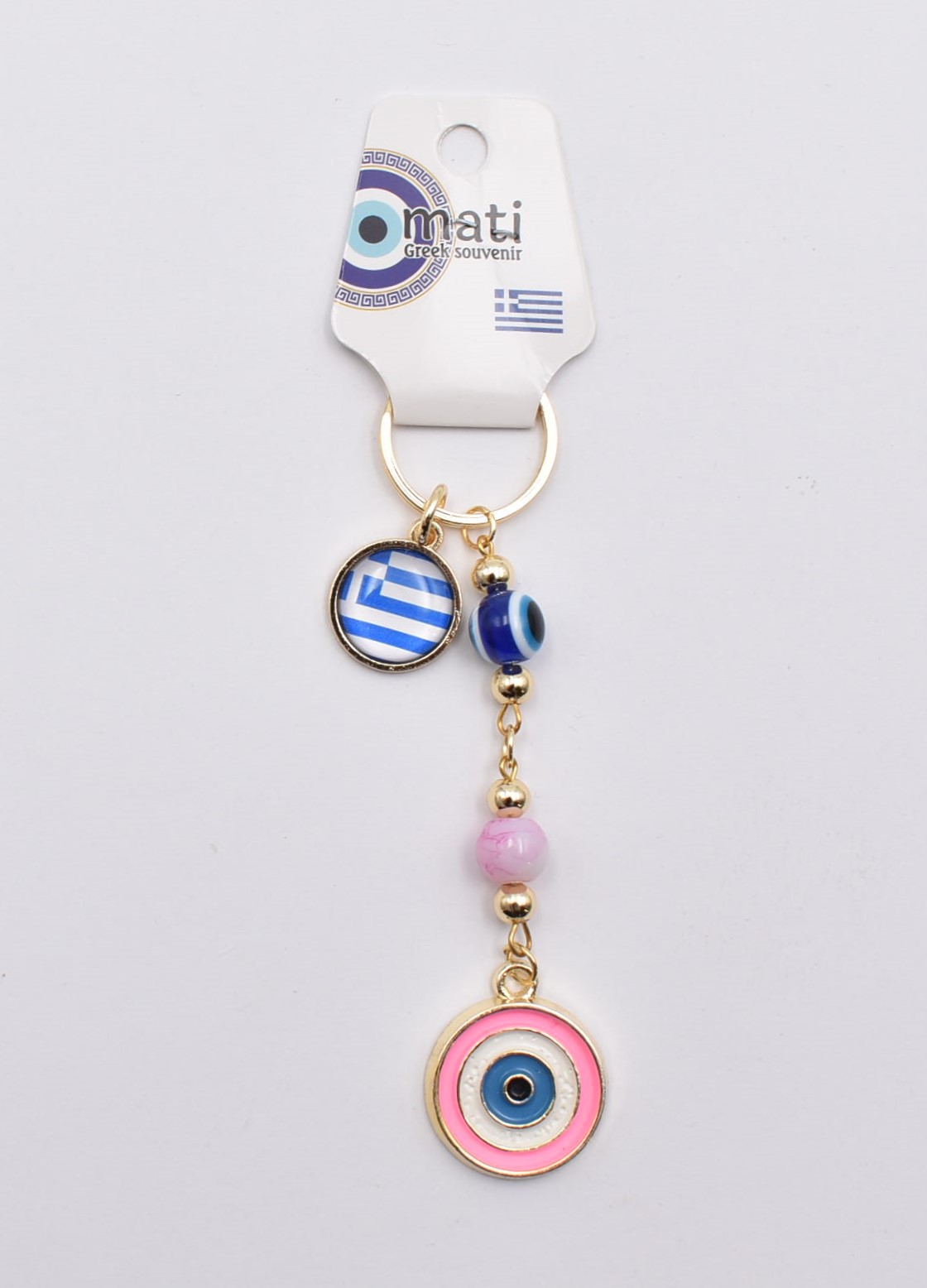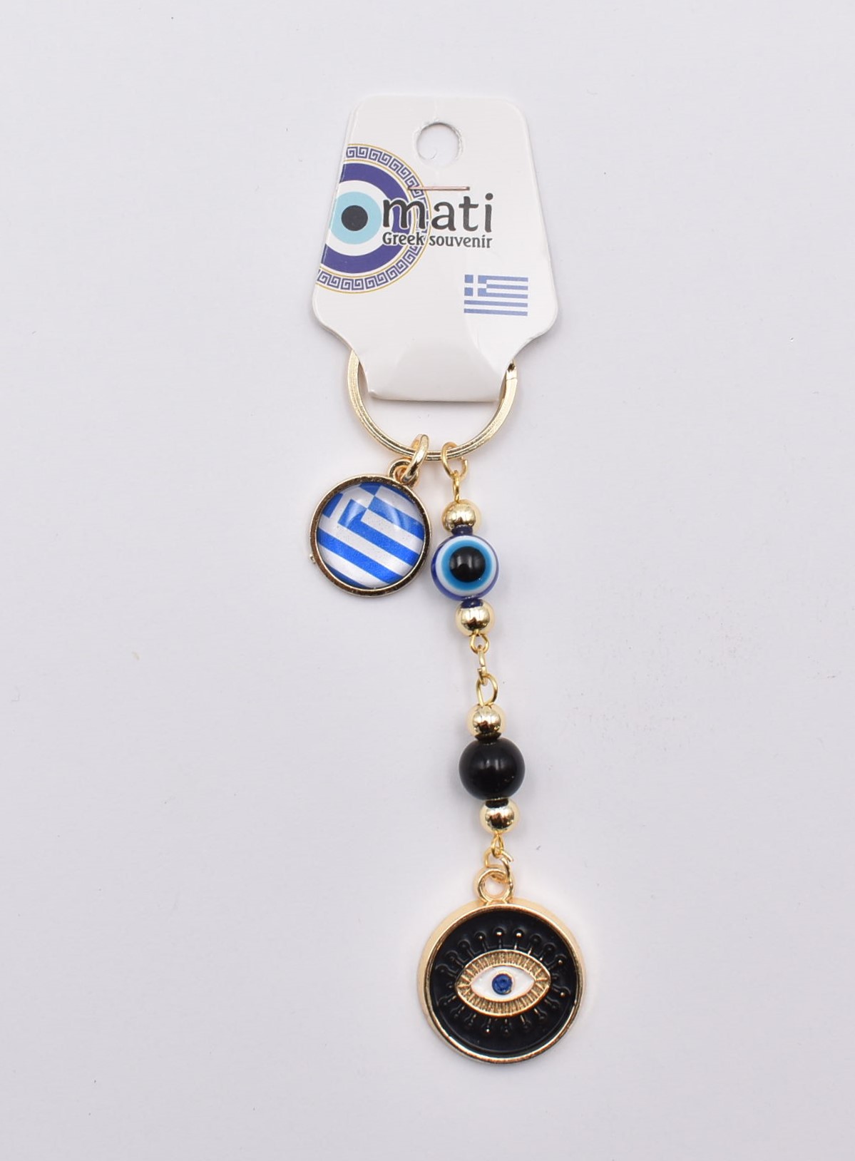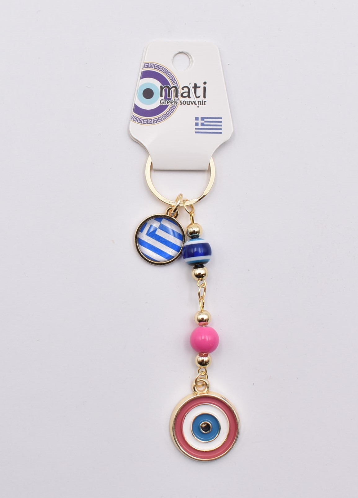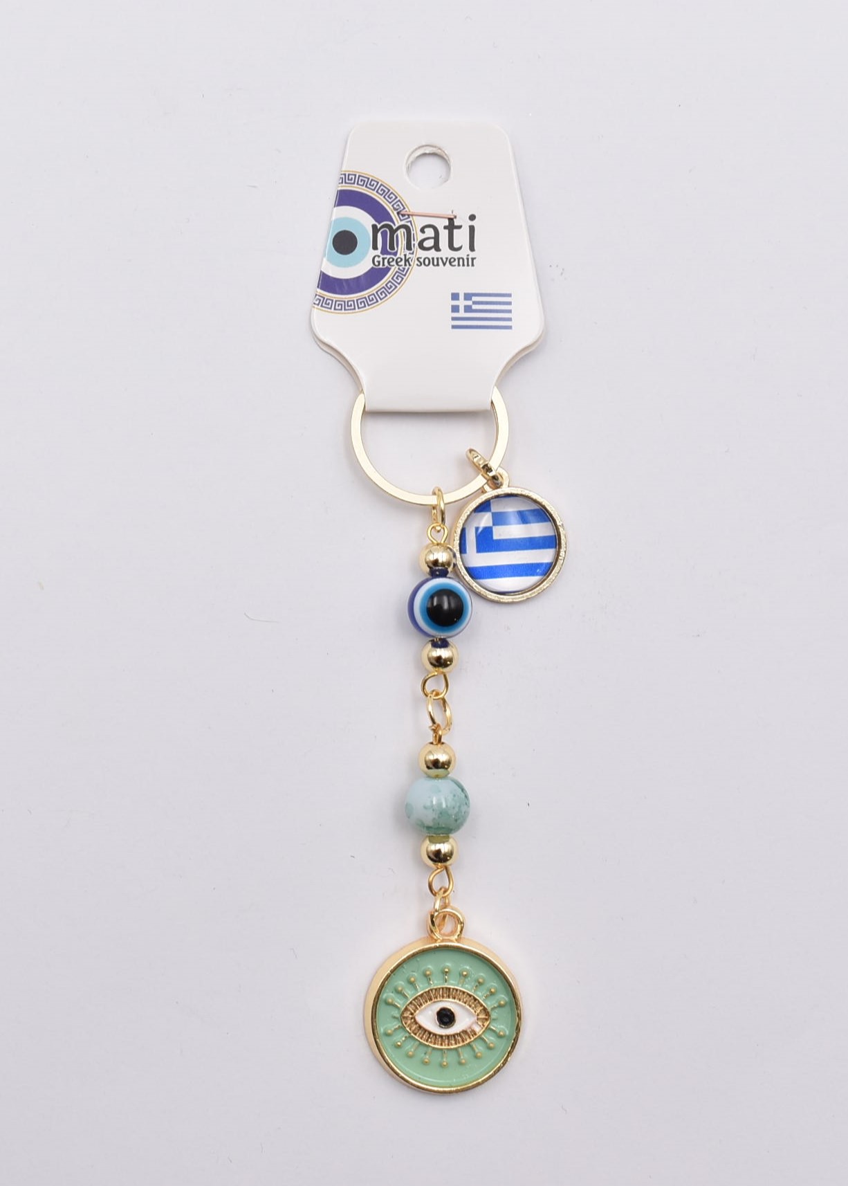 Μεταλλικό Μπρελόκ με Μάτι, Χάντρα & Ελληνική Σημαία