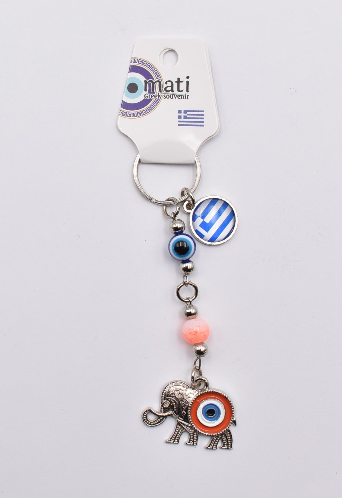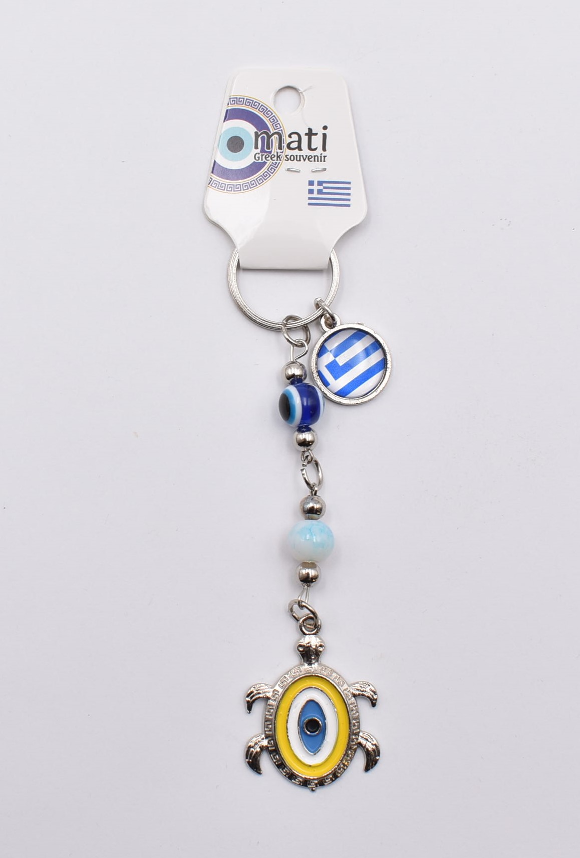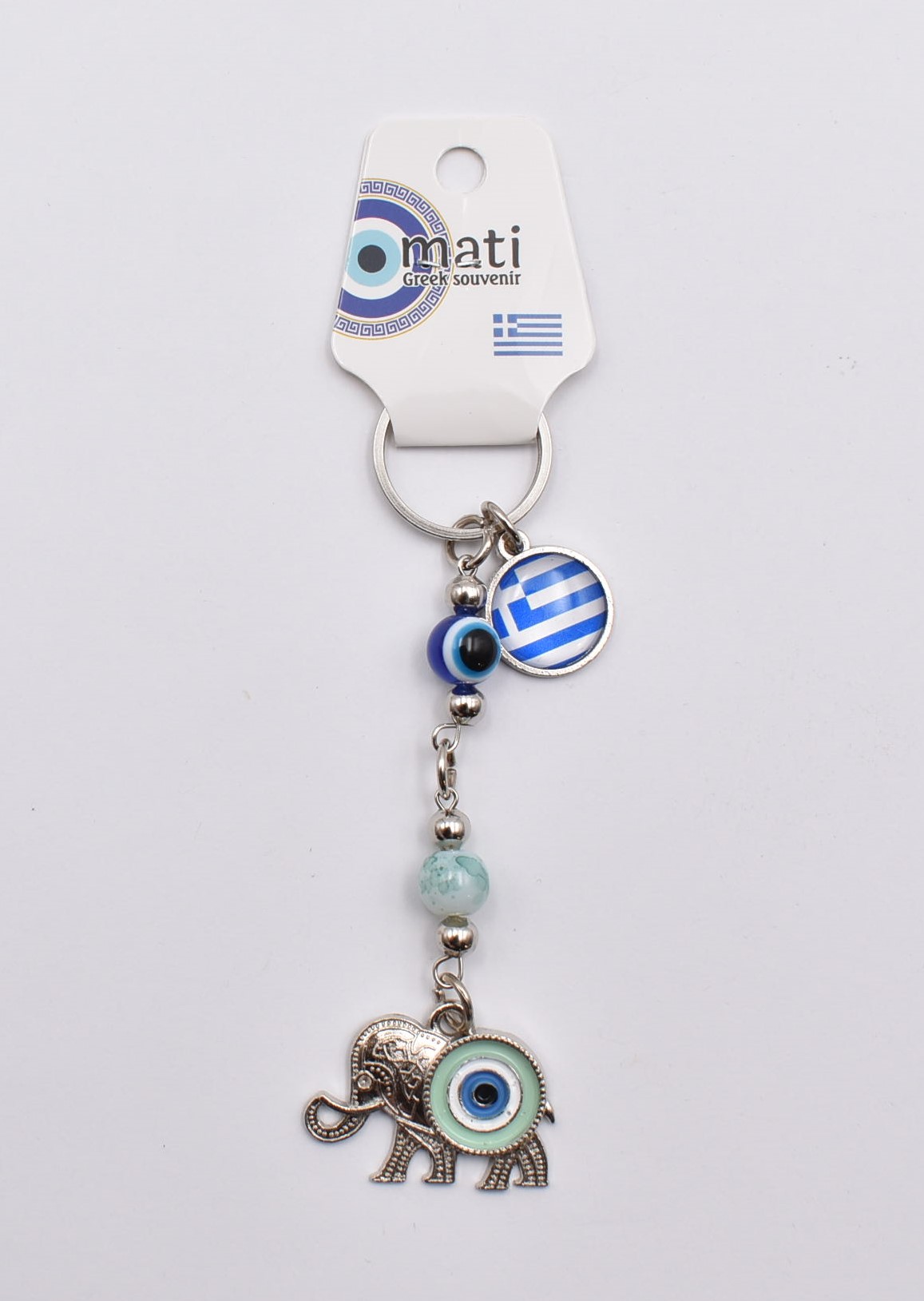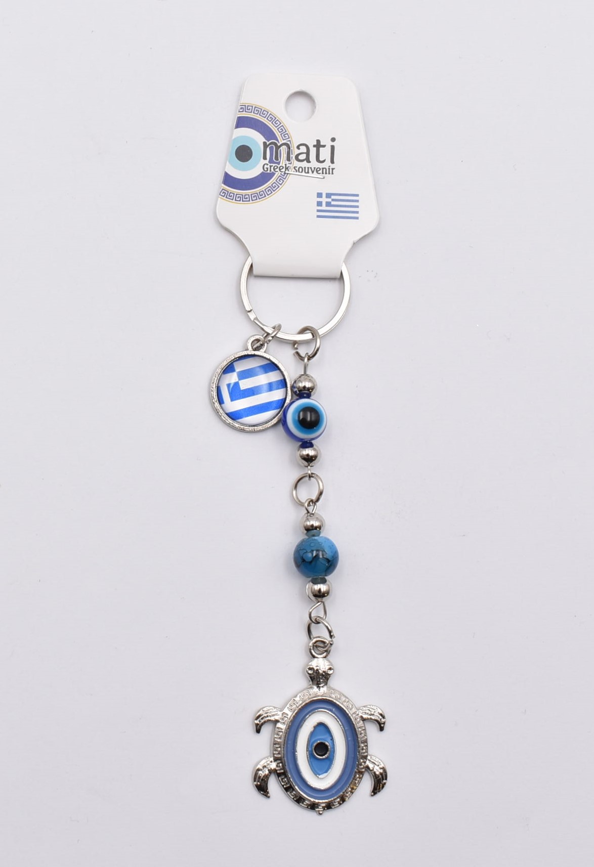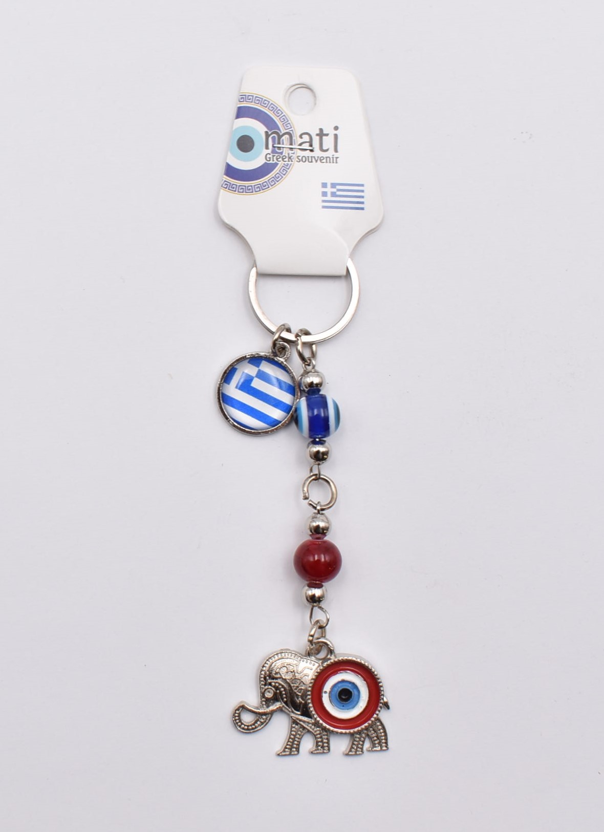 Μεταλλικό Μπρελόκ με Μάτι, Χάντρα & Ελληνική Σημαία