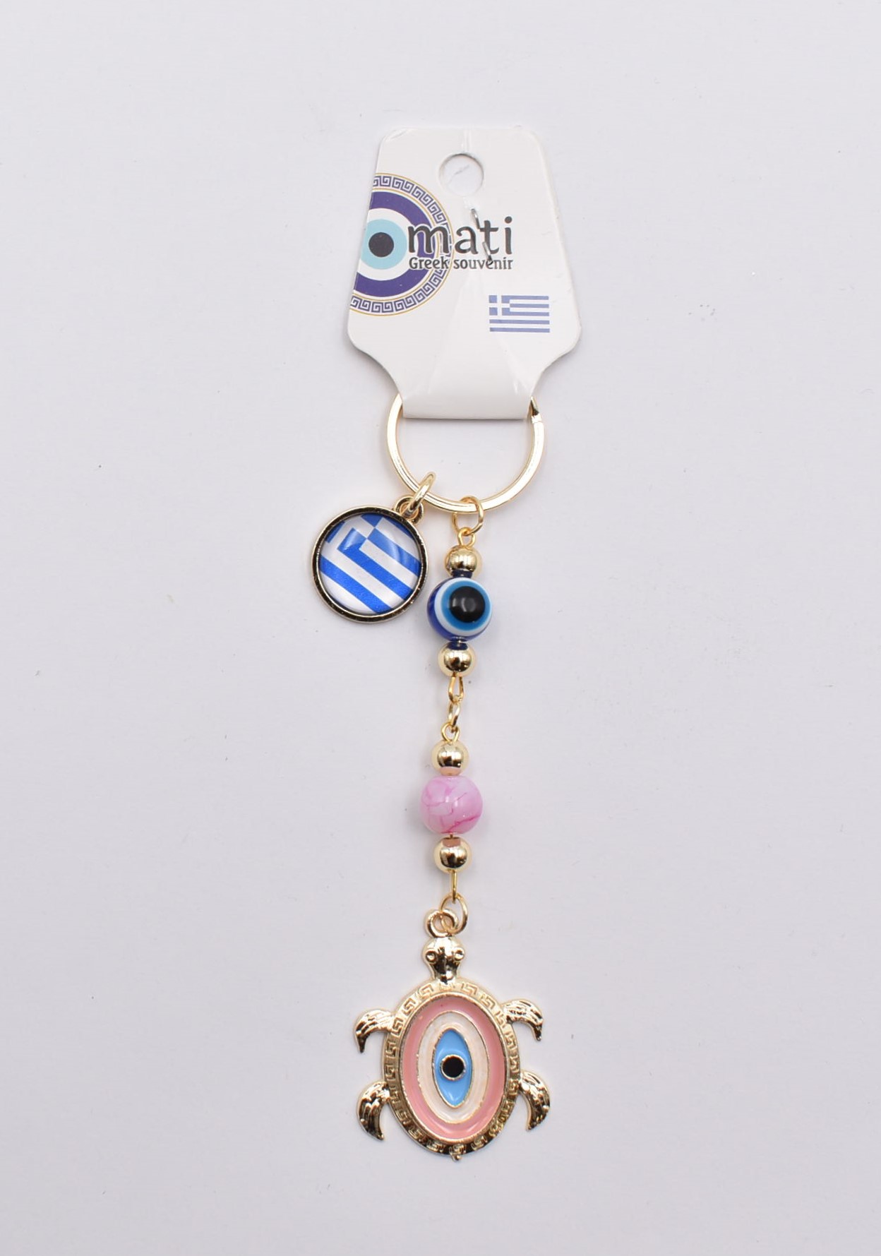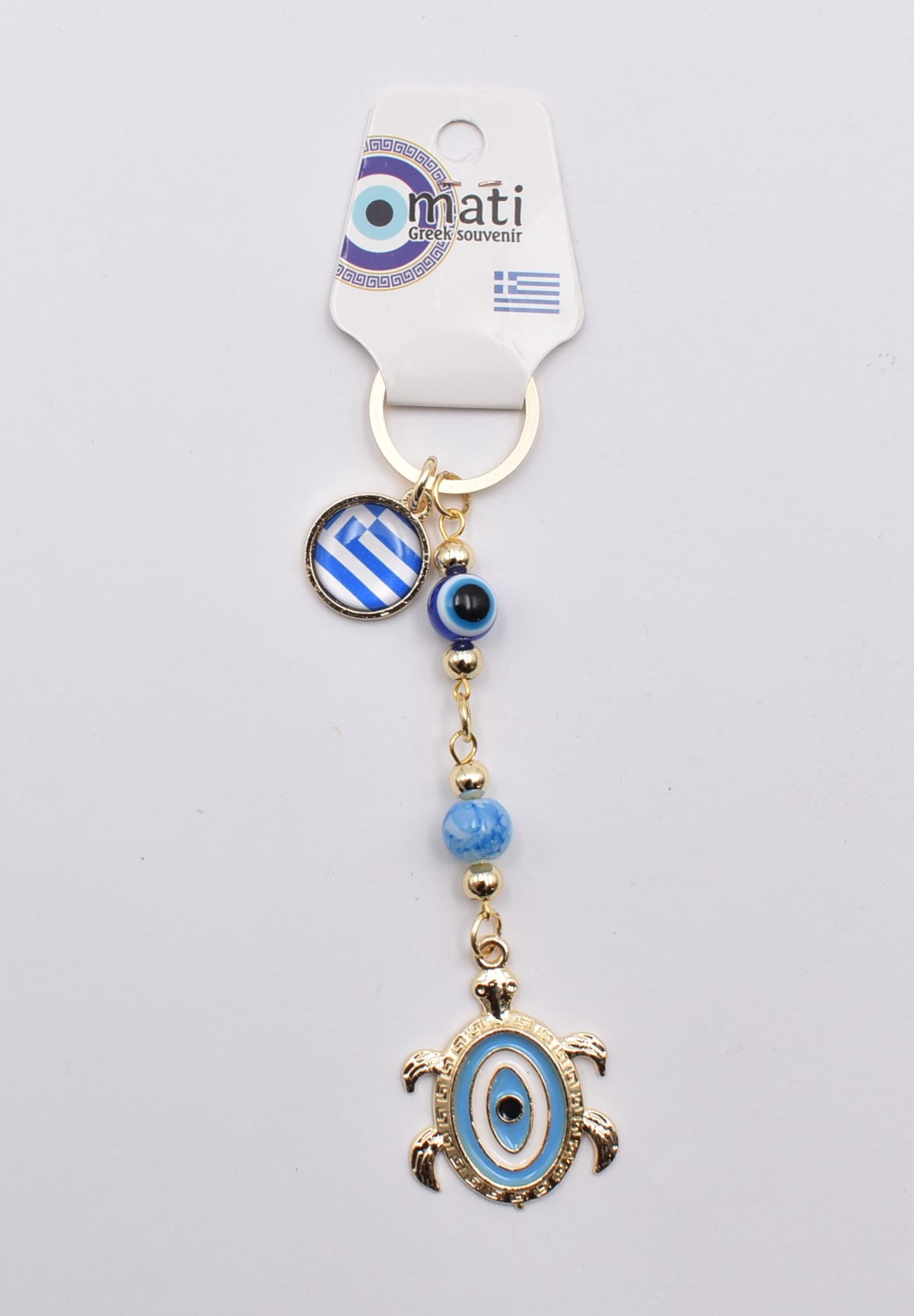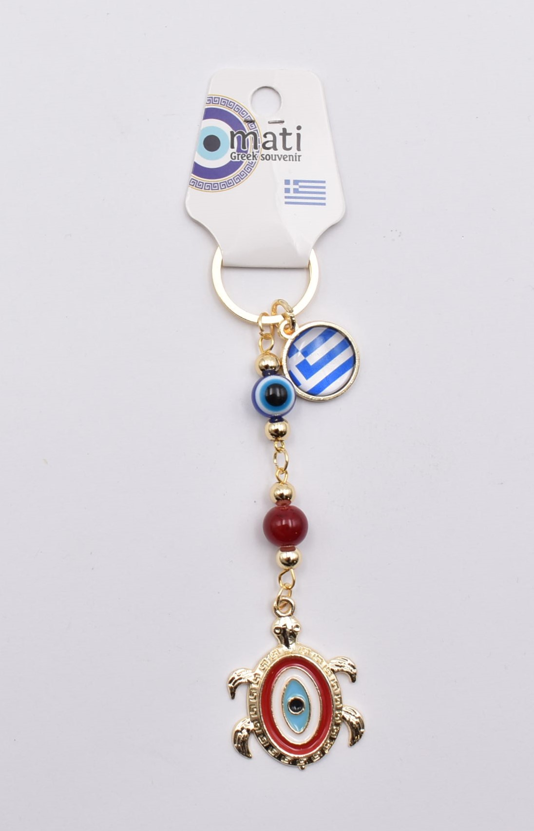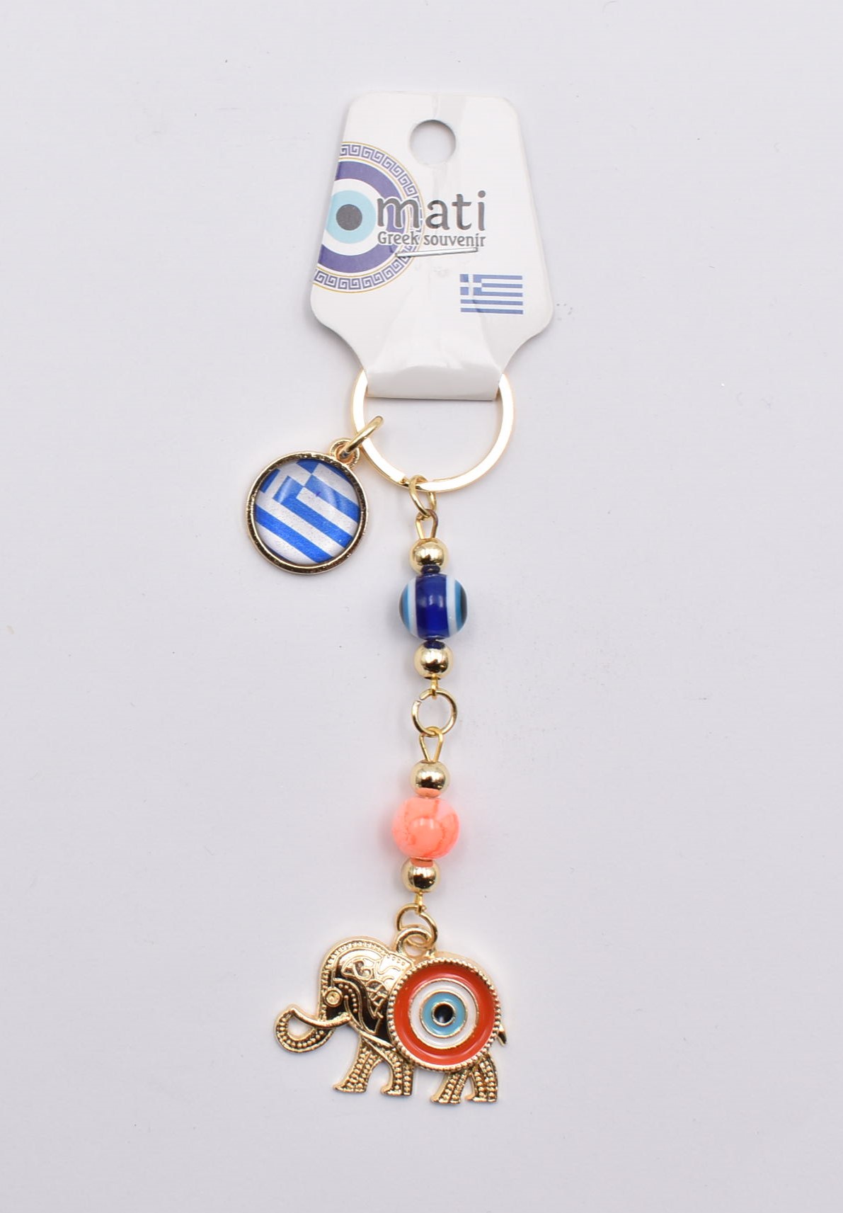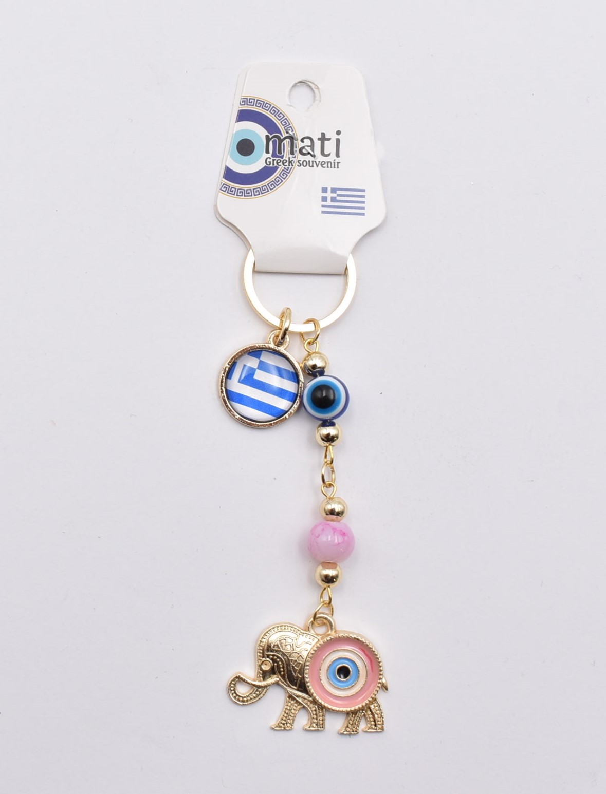 Μεταλλικό Μπρελόκ με Μάτι, Χάντρα & Ελληνική Σημαία