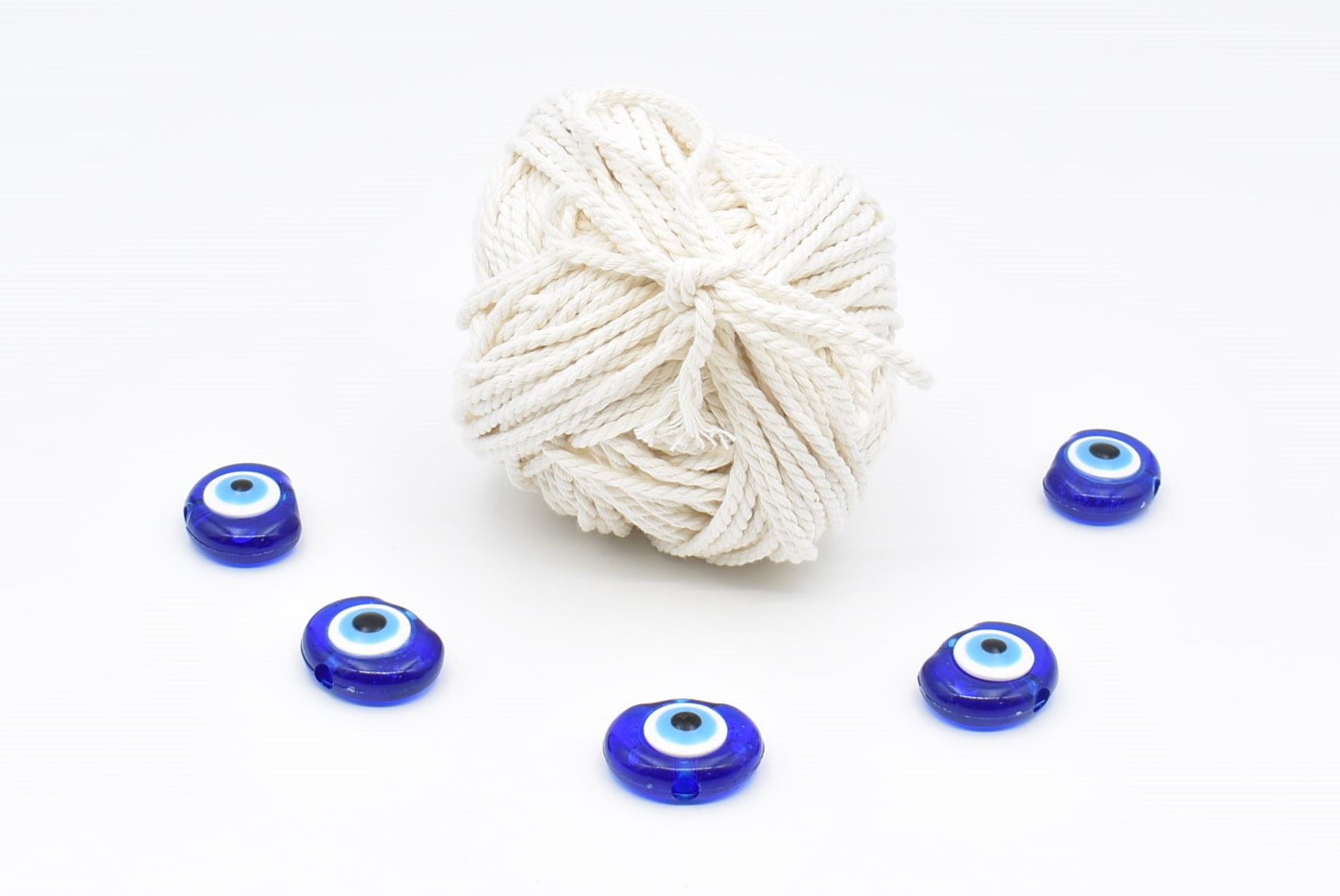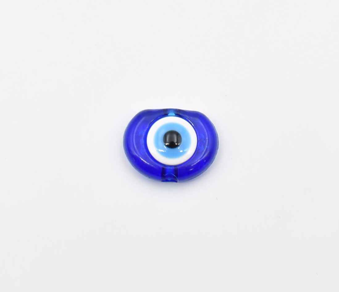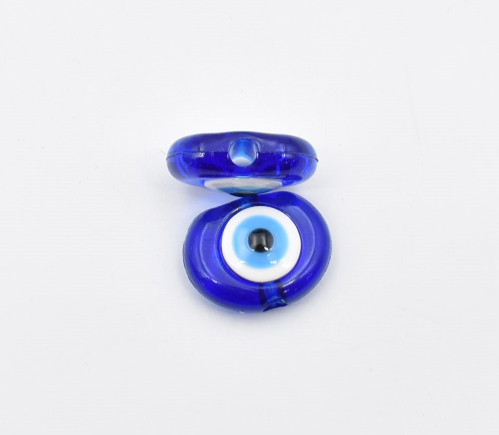 • Πλαστική χάντρα με σχέδιο “Μάτι” σε βαθύ μπλε χρώμα, σύμβολο προστασίας και θετικής ενέργειας.