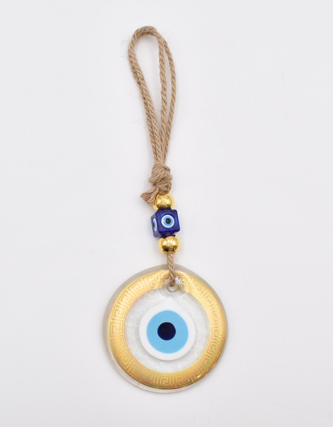 Κρεμαστό Διαφανές Γυάλινο Μάτι με Χρυσή Ρίγα Μαίανδρο & Σχέδιο