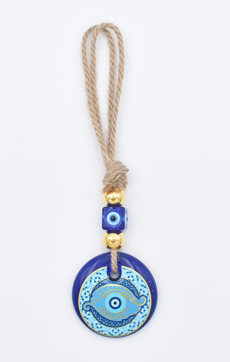 Κρεμαστό Γυάλινο Μάτι με Χρυσή Ρίγα