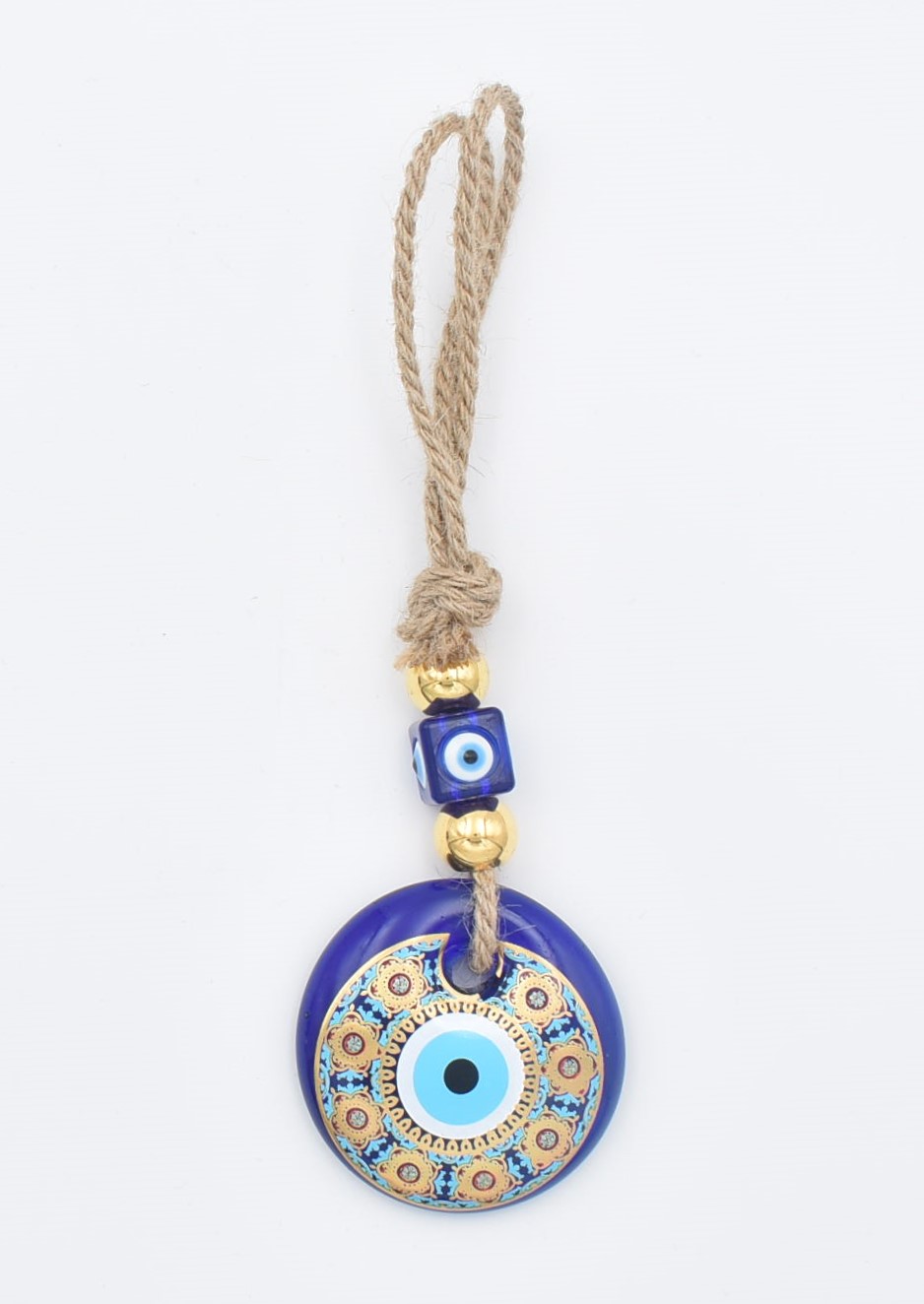 Κρεμαστό Γυάλινο Μάτι με Χρυσή Ρίγα και Κεντρική Χάντρα
