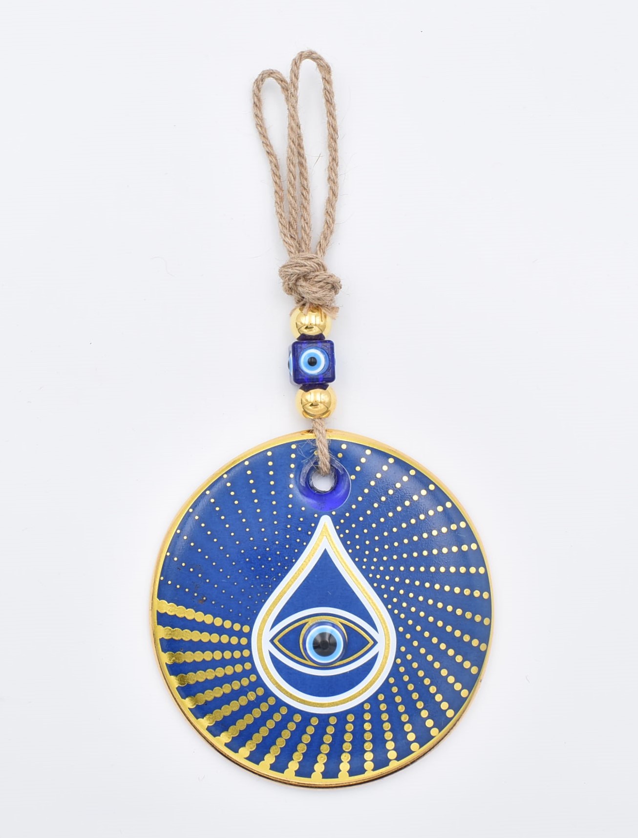 Κρεμαστό Γυάλινο Μάτι με Χρυσή Ρίγα 13CM