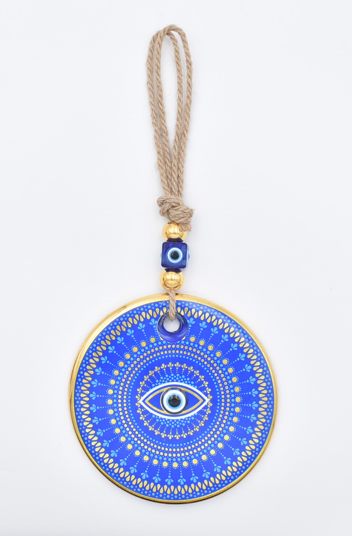 Κρεμαστό Γυάλινο Μάτι με Χρυσή Ρίγα