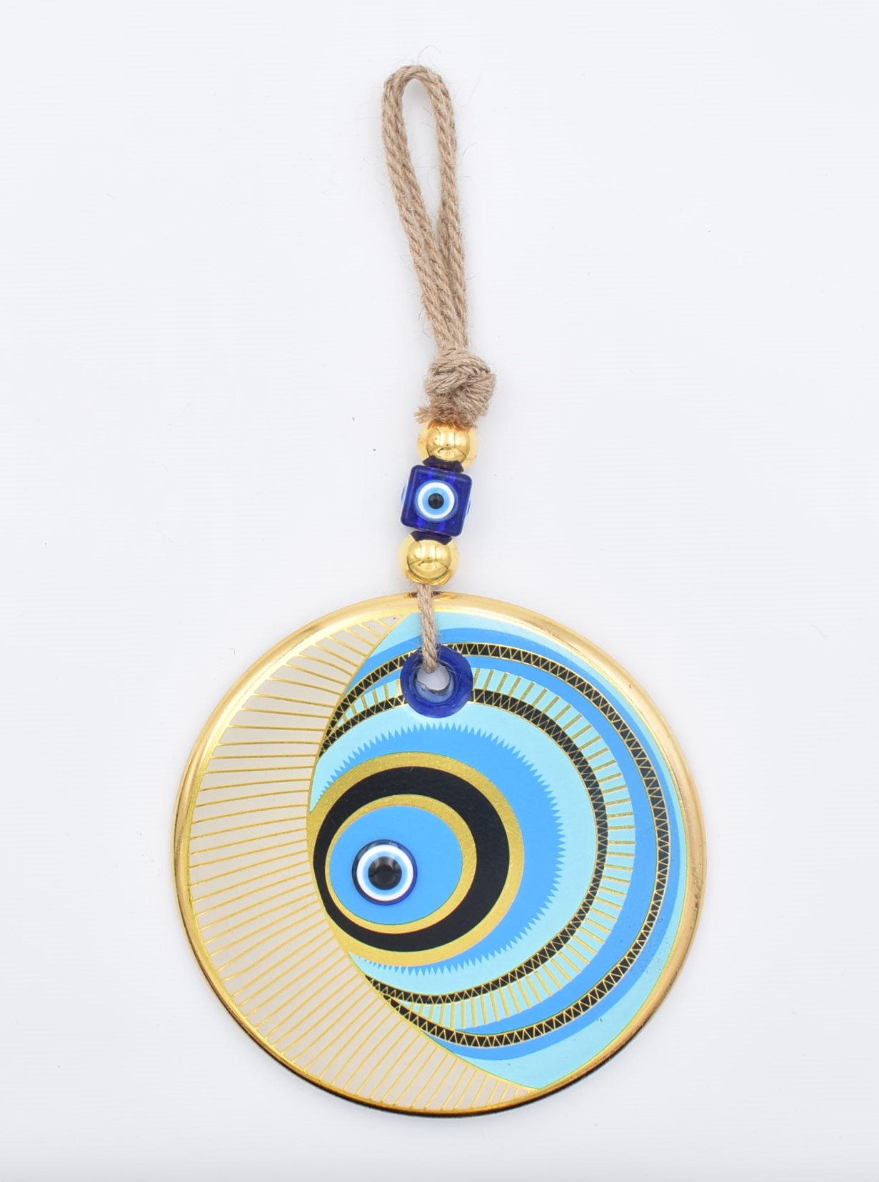 Κρεμαστό Γυάλινο Μάτι με Χρυσή Ρίγα