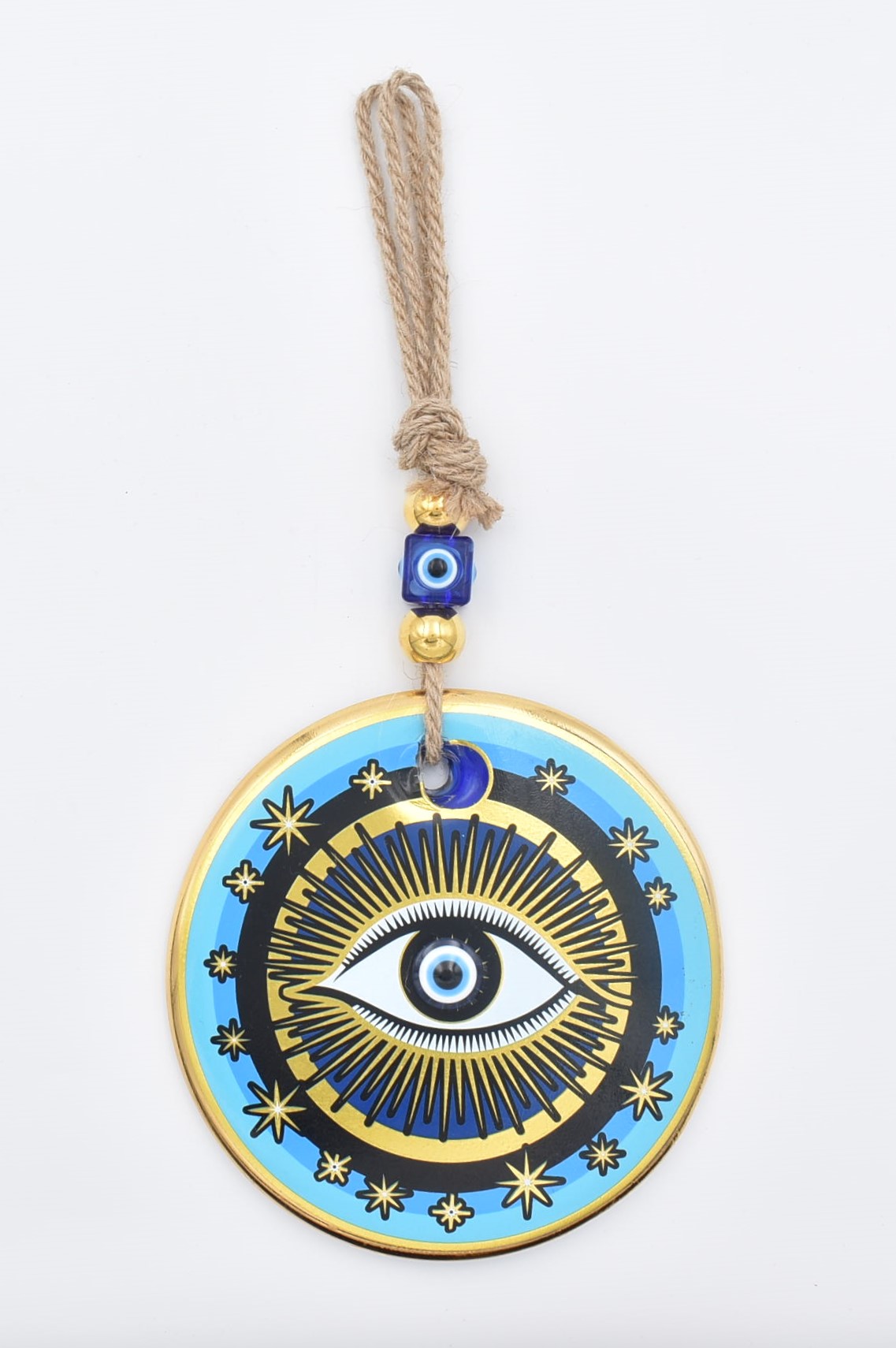 Κρεμαστό Γυάλινο Μάτι με Χρυσή Ρίγα