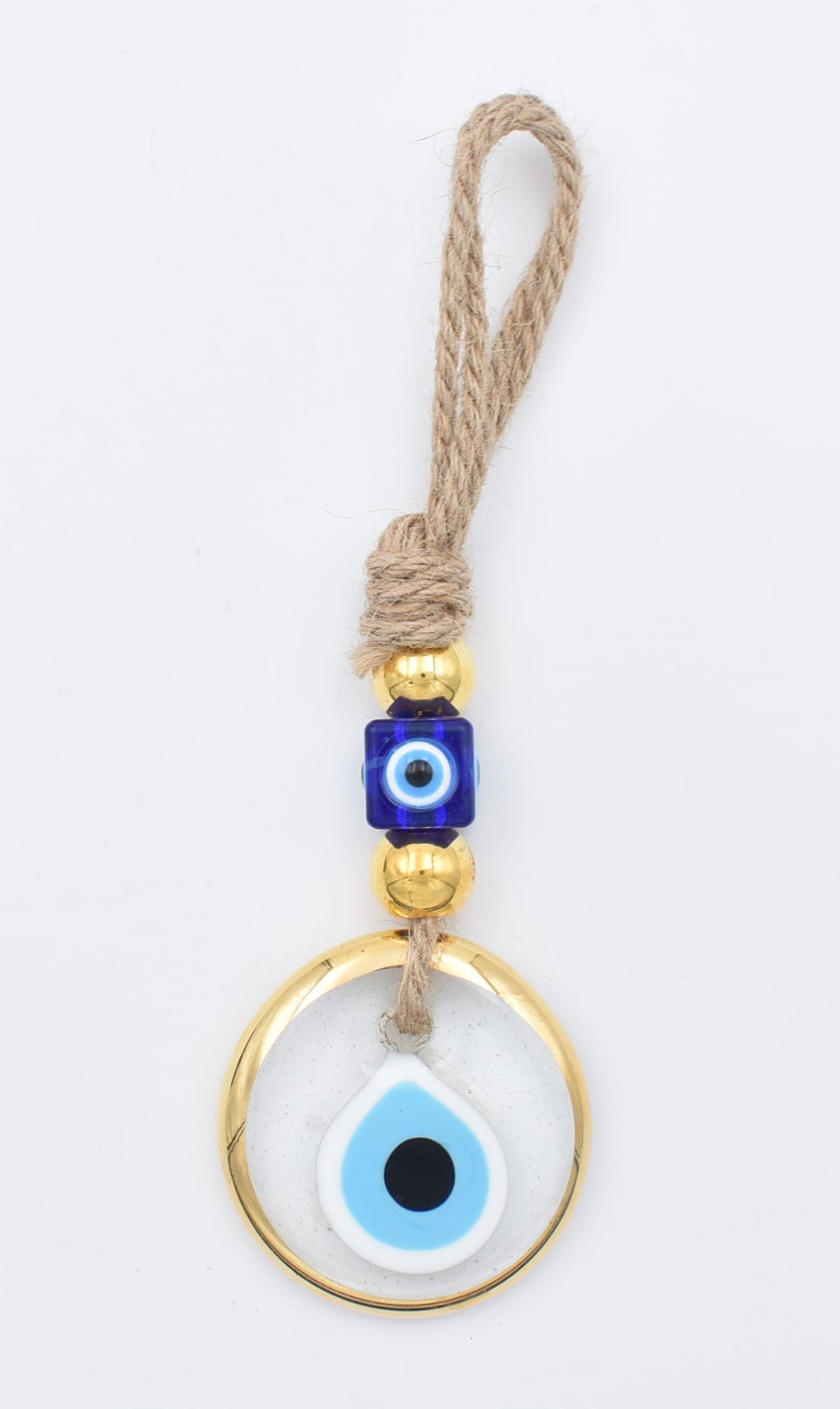 Κρεμαστό Γυάλινο Μάτι με Χρυσή Ρίγα