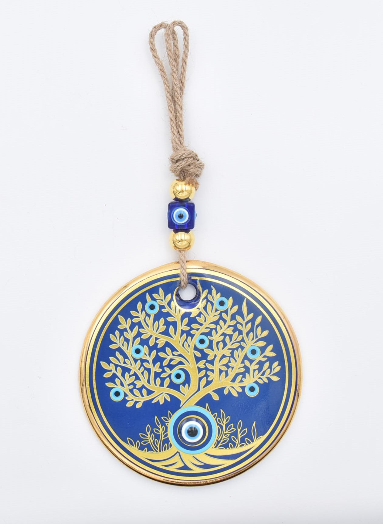 Κρεμαστό Γυάλινο Μάτι με Χρυσή Ρίγα