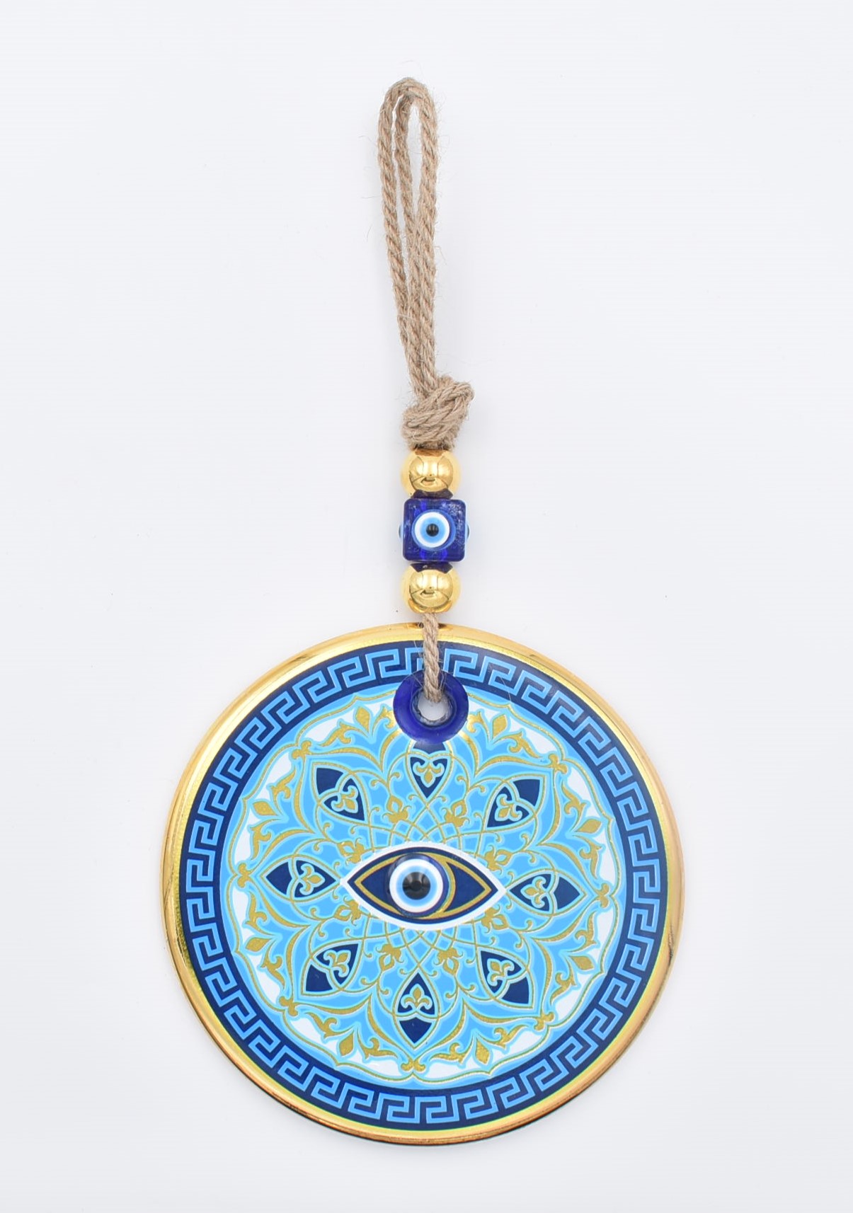 Κρεμαστό Γυάλινο Μάτι με Χρυσή Ρίγα 13 cm