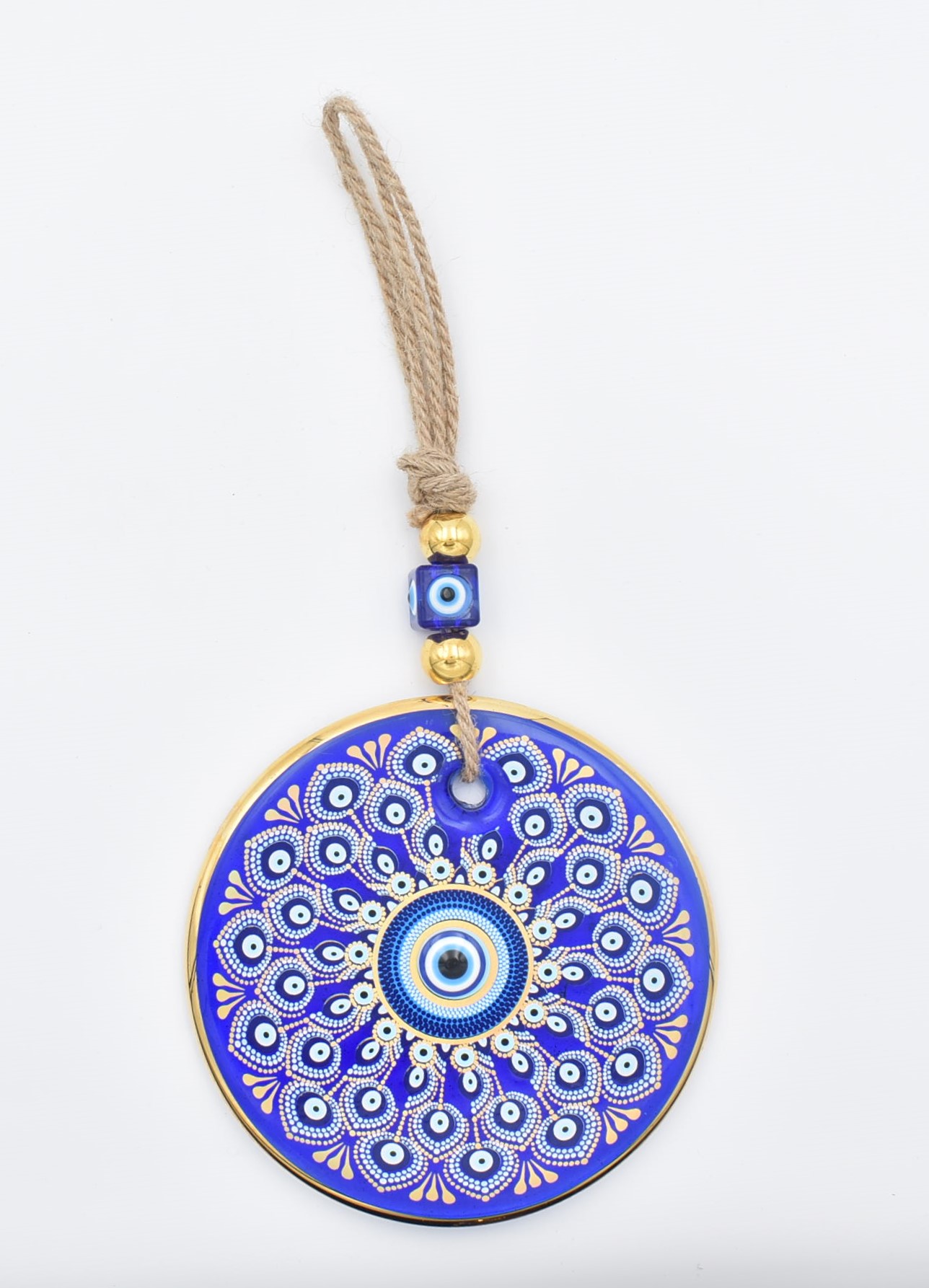 Κρεμαστό Γυάλινο Μάτι με Χρυσή Ρίγα 13 cm