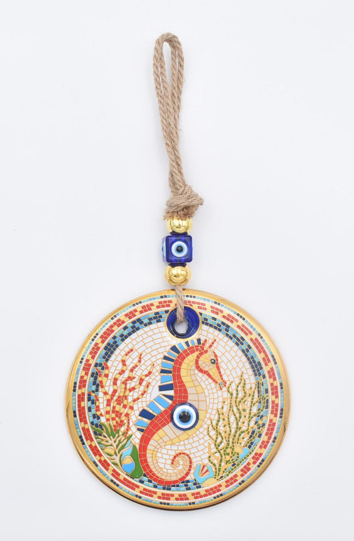 Κρεμαστό Γυάλινο Μάτι με Χρυσή Ρίγα