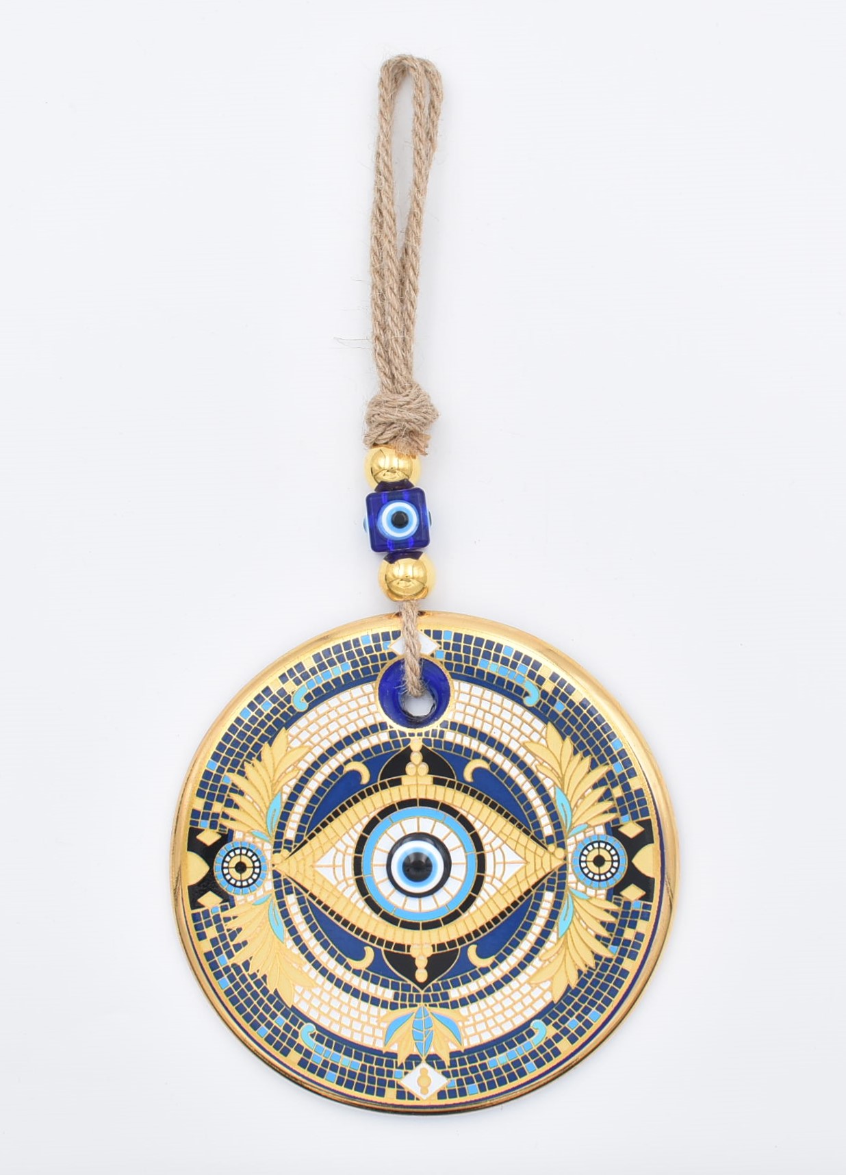 Κρεμαστό Γυάλινο Μάτι με Χρυσή Ρίγα