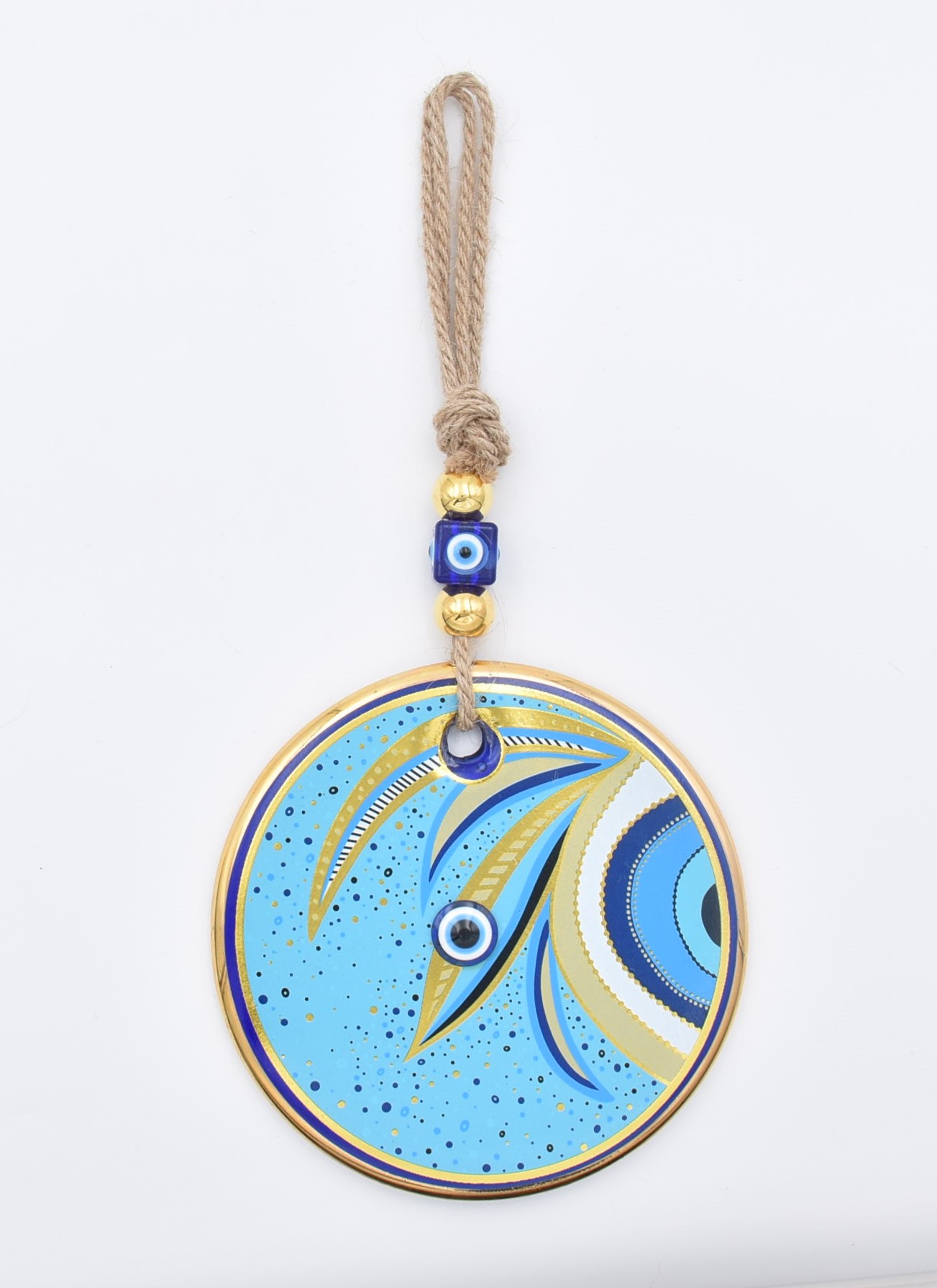 Κρεμαστό Γυάλινο Μάτι με Χρυσή Ρίγα