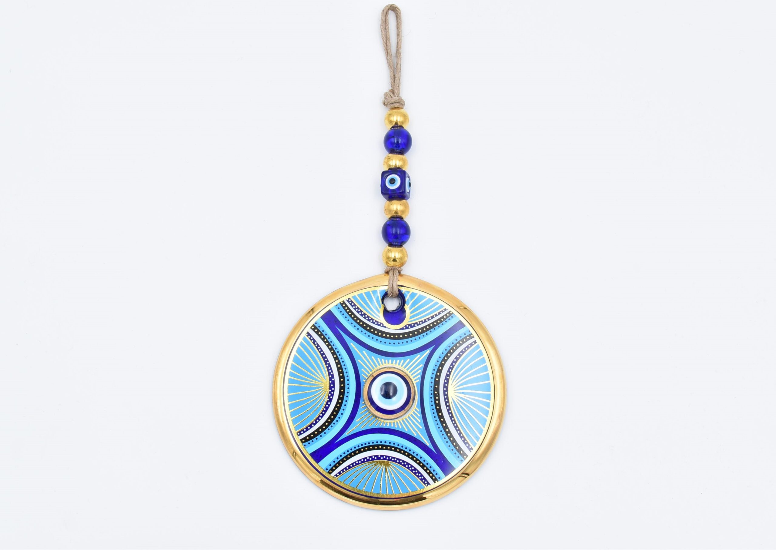 Κρεμαστό Γυάλινο Μάτι με Χρυσή Ρίγα και Κεντρική Χάντρα 11 cm – 13 cm