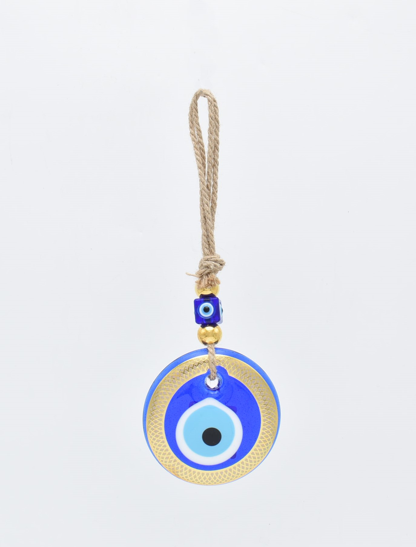 Κρεμαστό Γυάλινο Μάτι με Χρυσή Ρίγα & Σχέδιο 9 cm