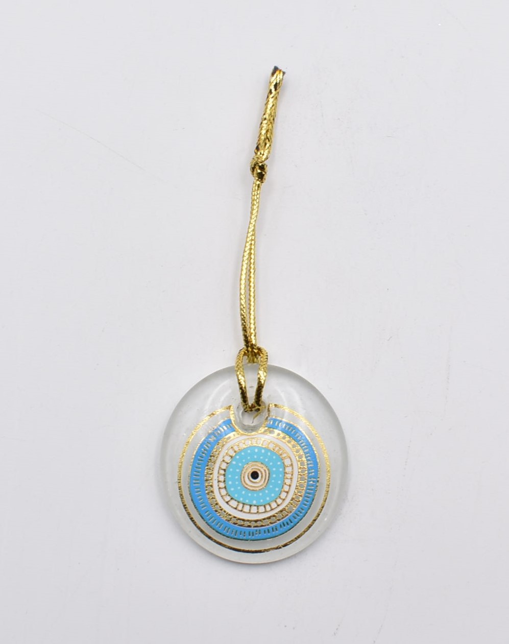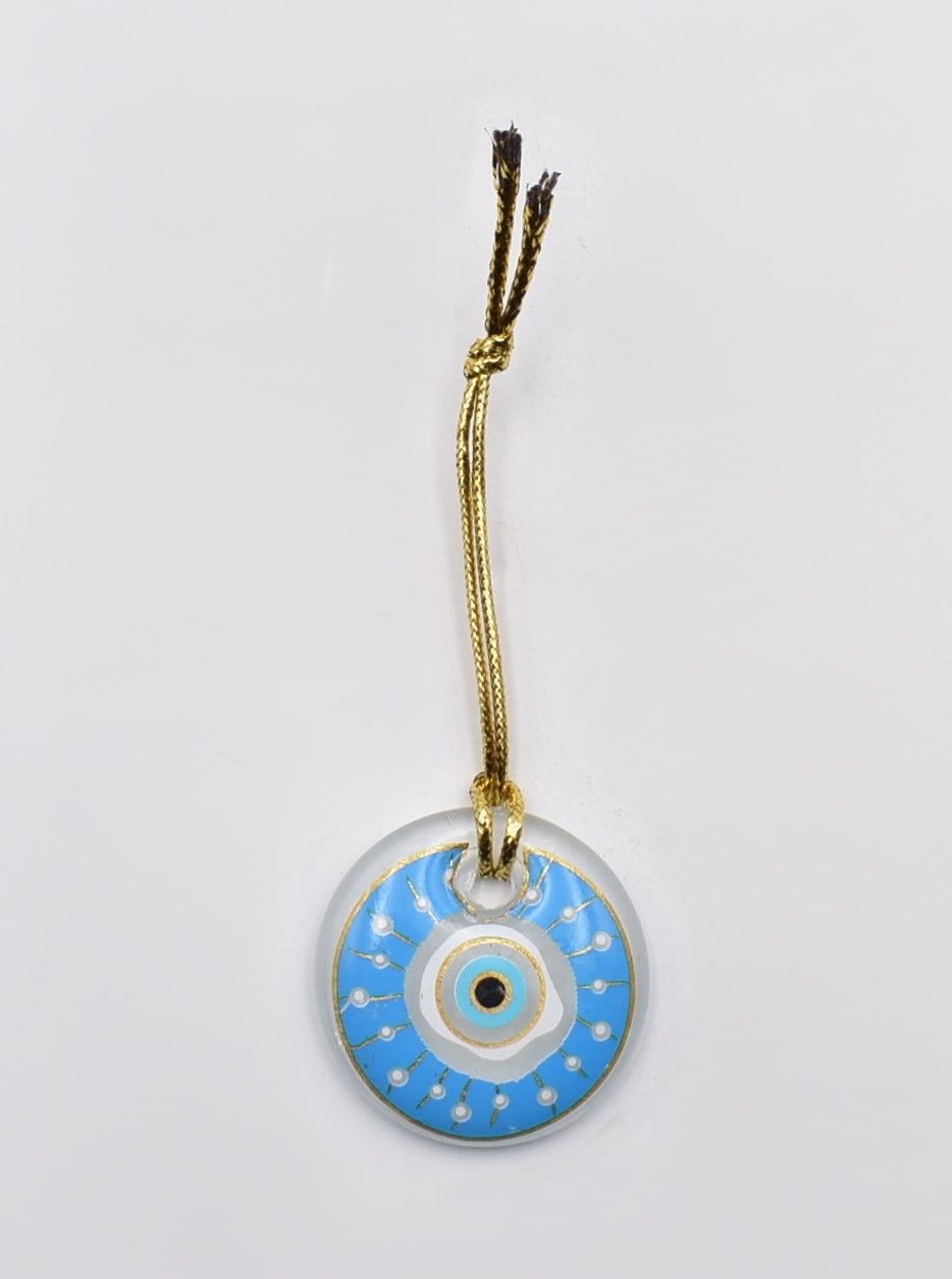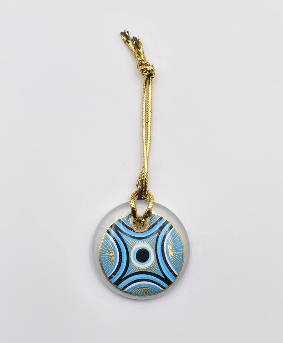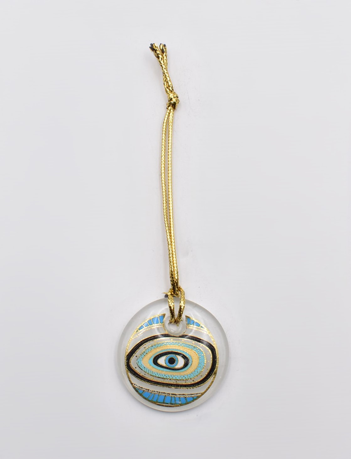 Κρεμαστό Μάτι Γυάλινο με Χρυσό Σχοινάκι 4 cm