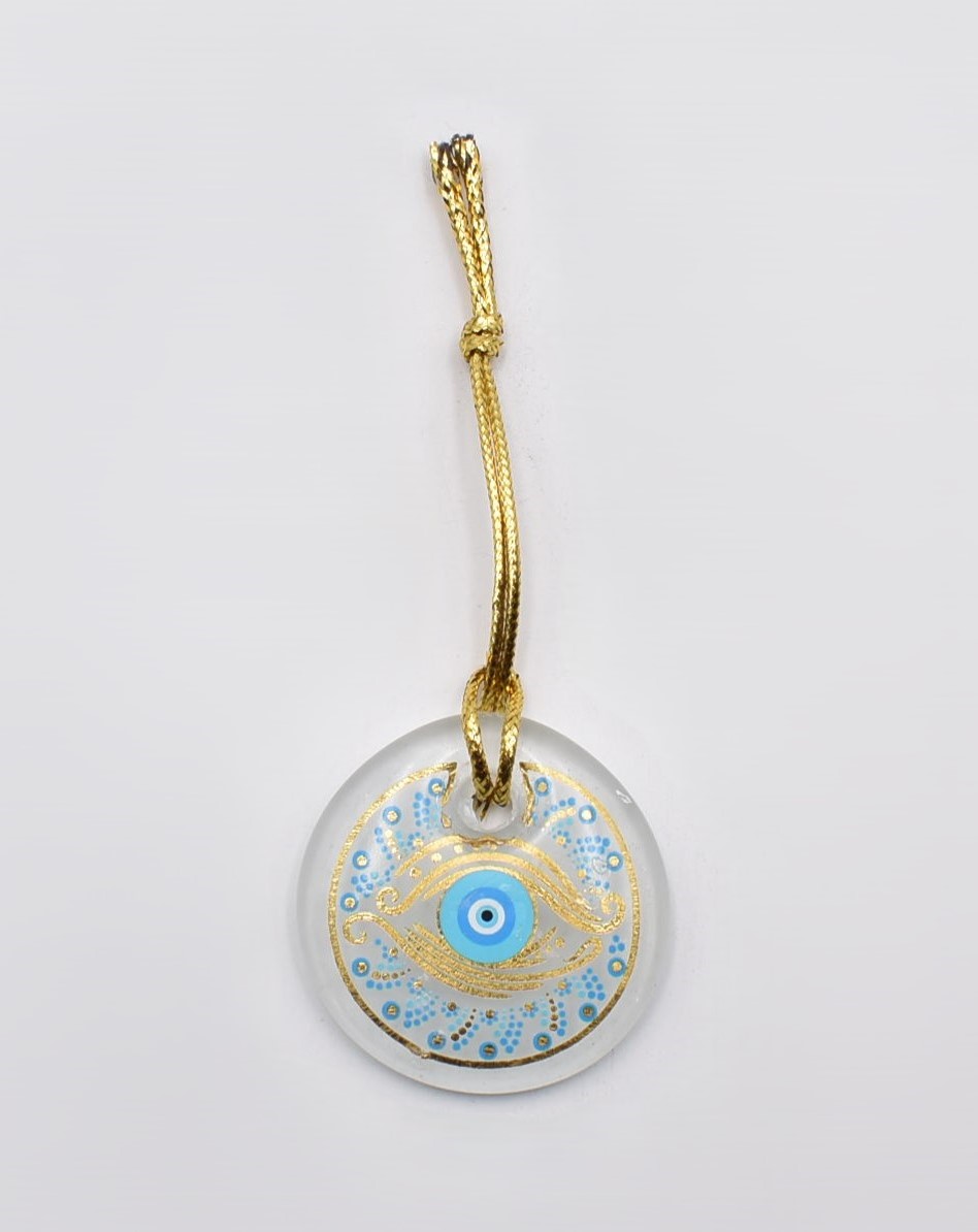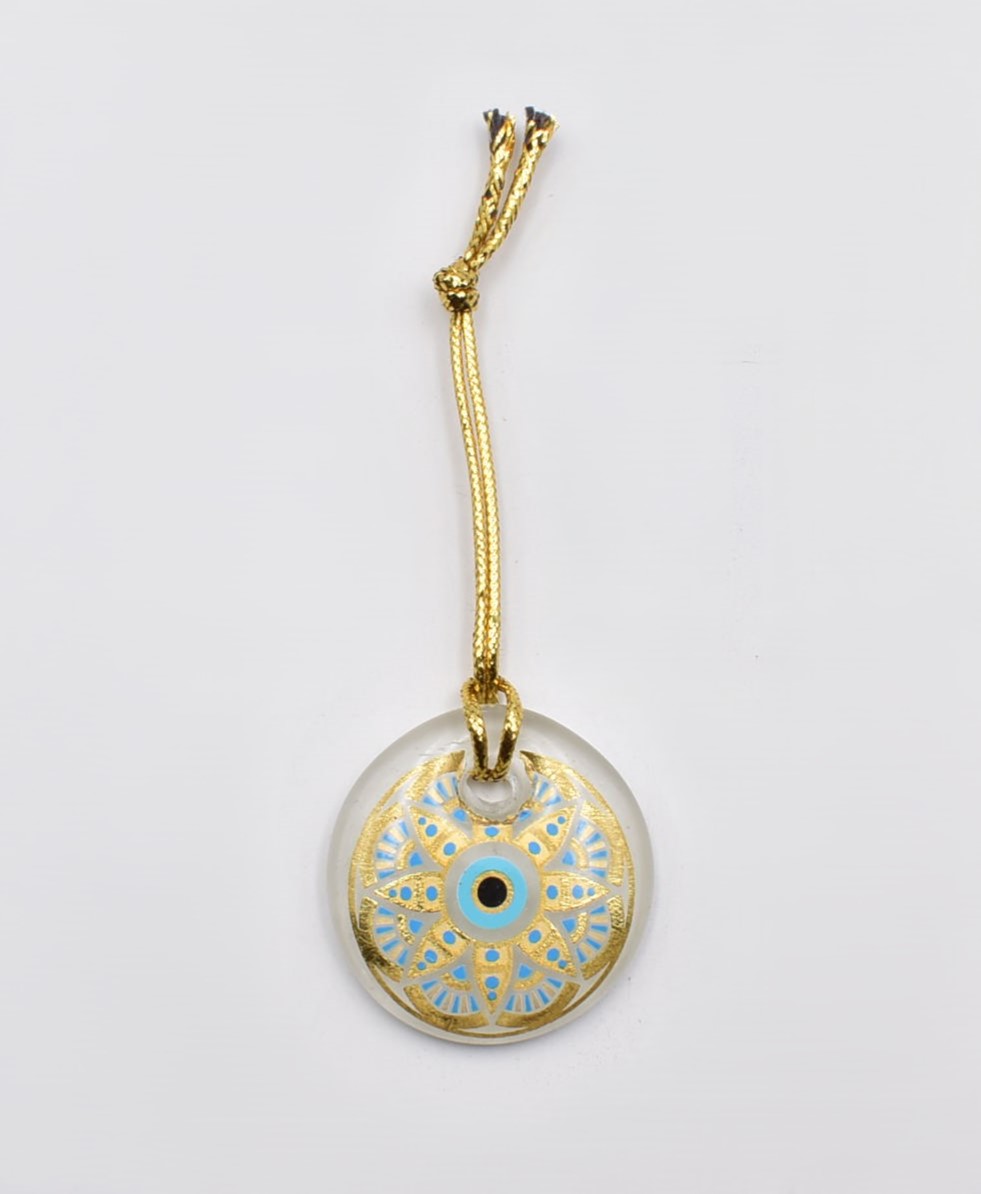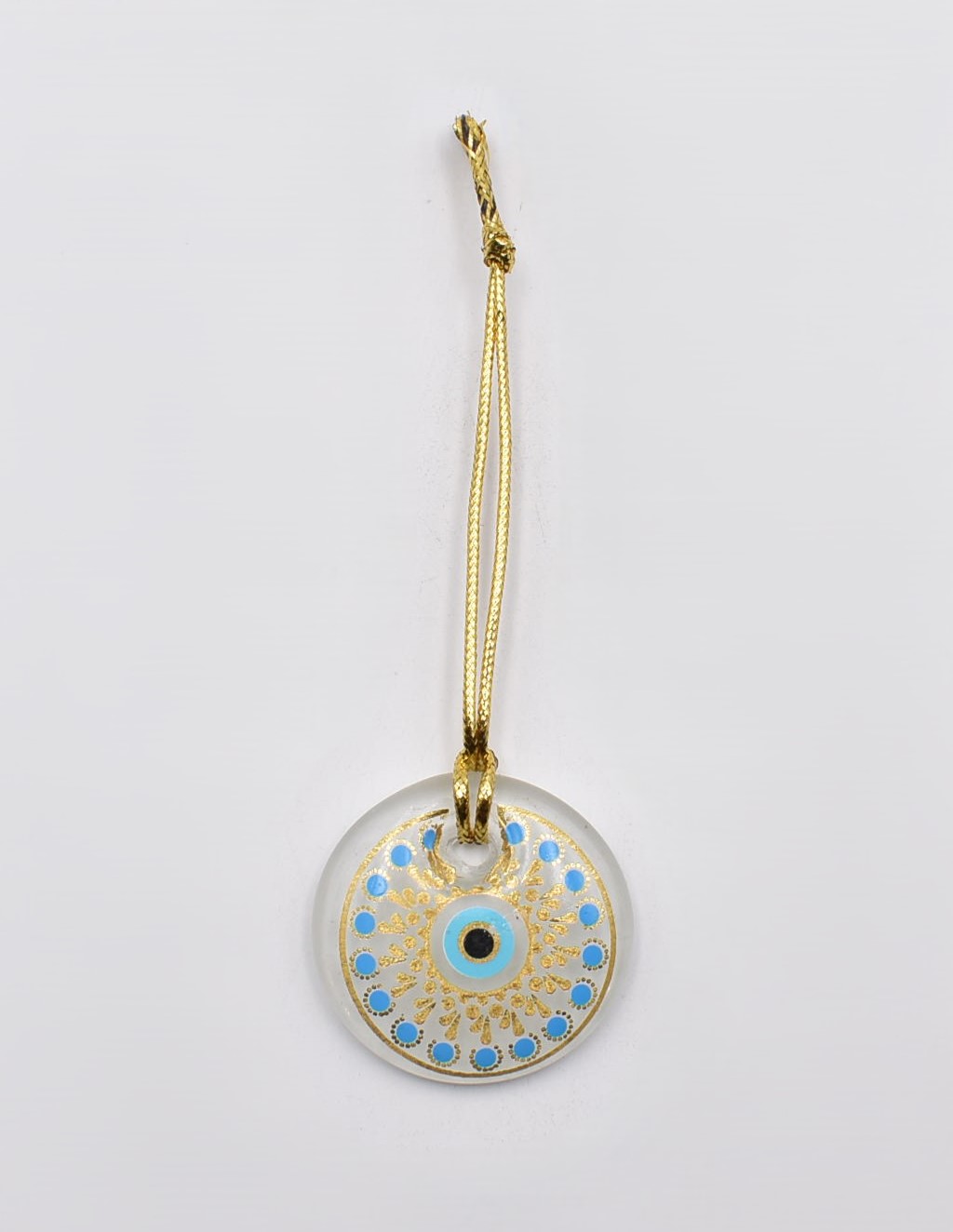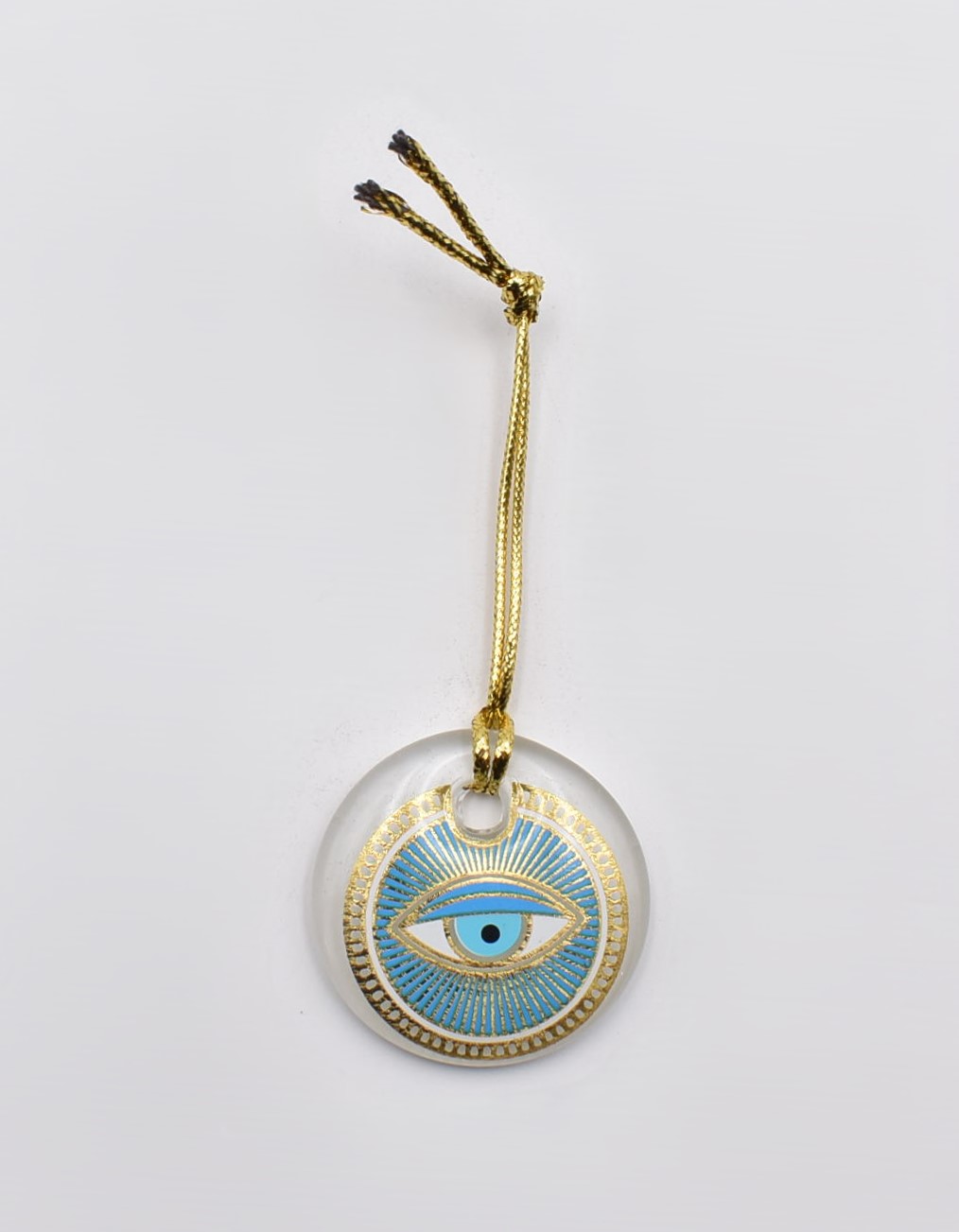 Κρεμαστό Μάτι Γυάλινο με Χρυσό Σχοινάκι 4 cm