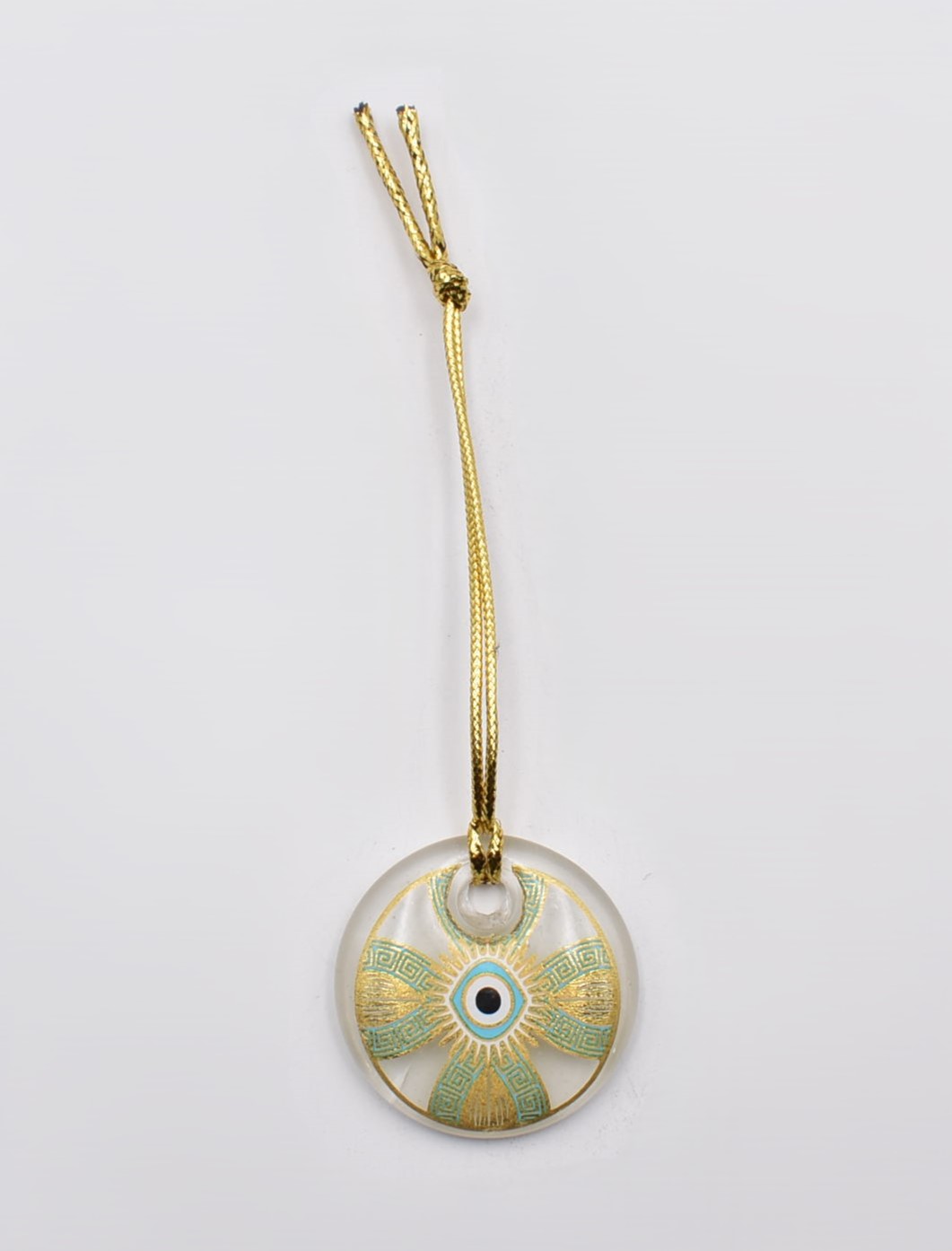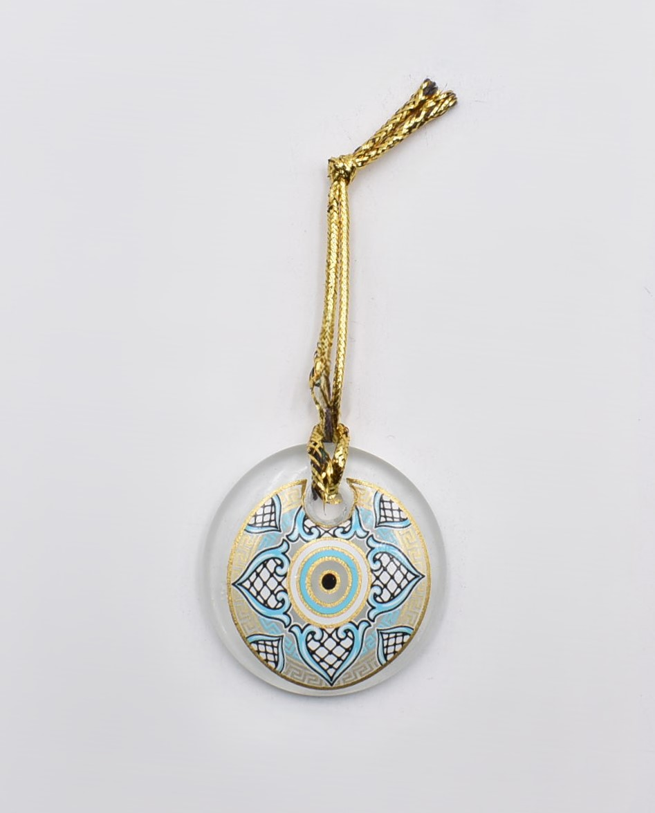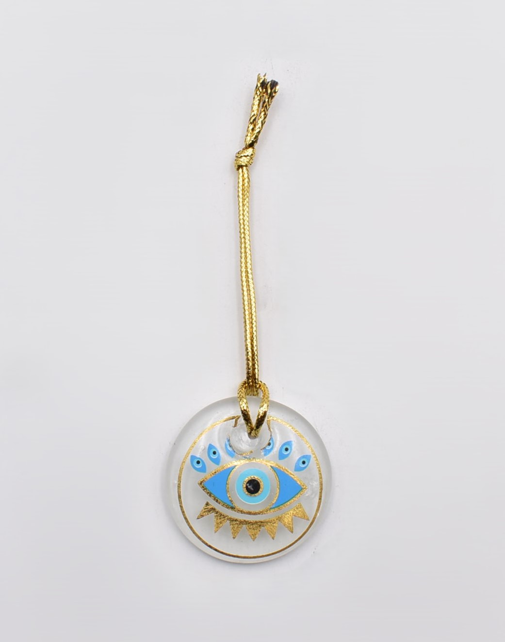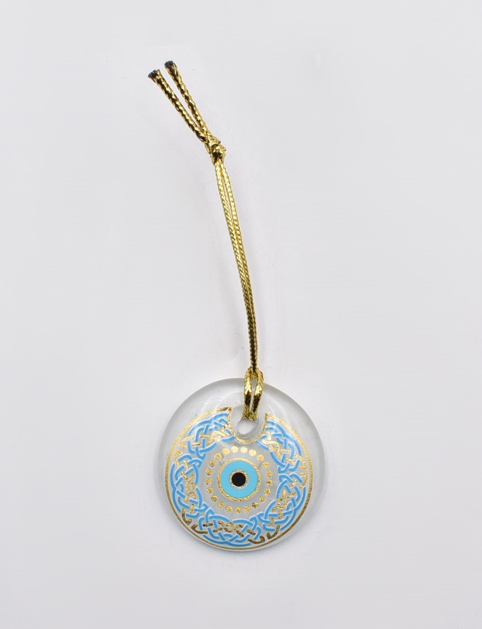 Κρεμαστό Μάτι Γυάλινο με Χρυσό Σχοινάκι 4 cm
