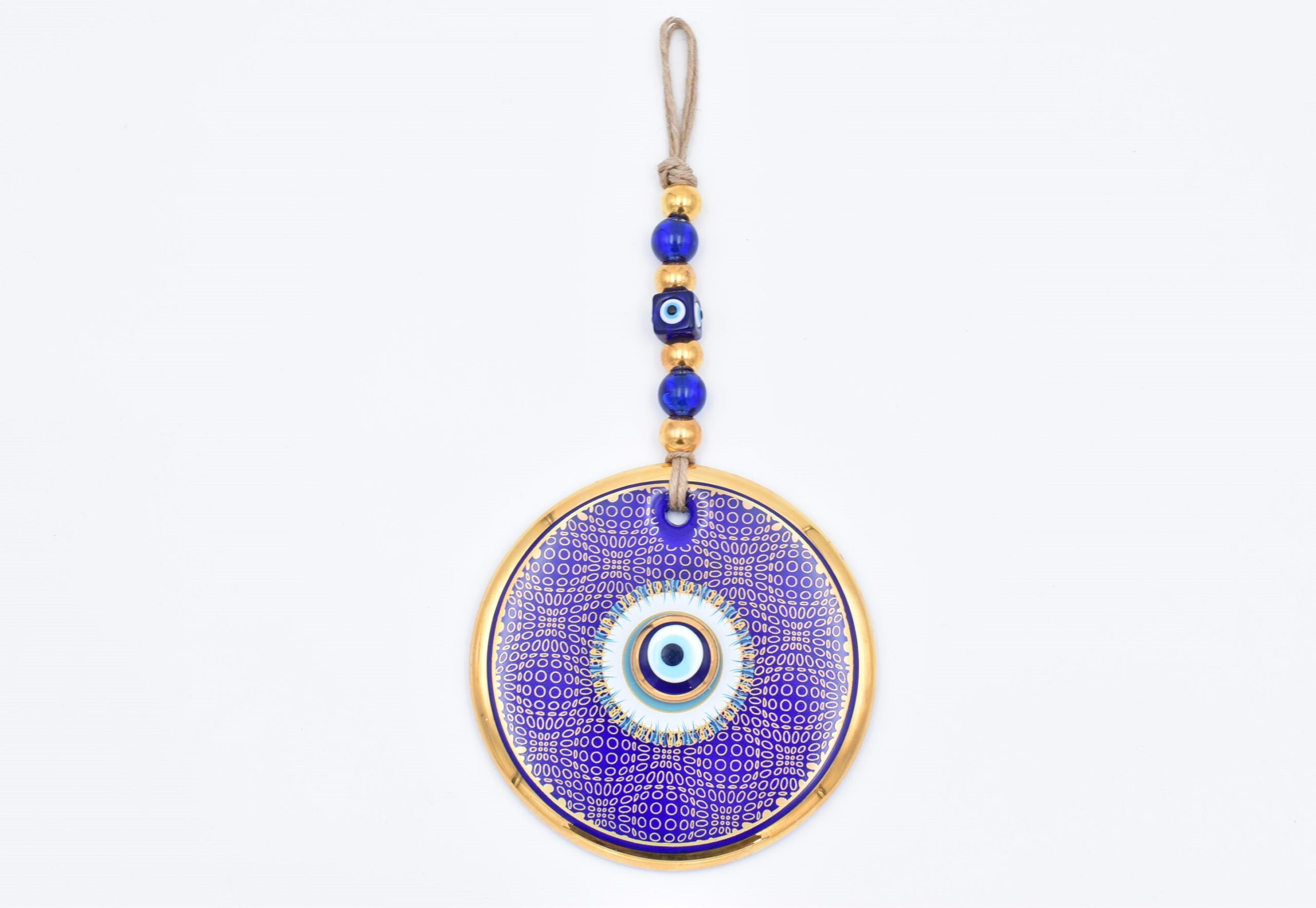 Κρεμαστό Γυάλινο Μάτι με Χρυσή Ρίγα και Κεντρική Χάντρα 11 cm – 13 cm