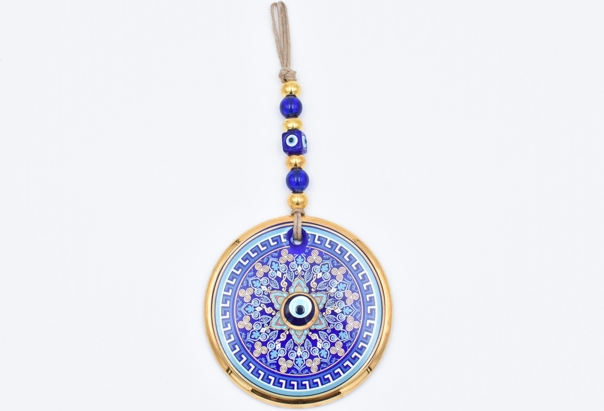 Κρεμαστό Γυάλινο Μάτι με Χρυσή Ρίγα και Κεντρική Χάντρα 11 cm – 13 cm