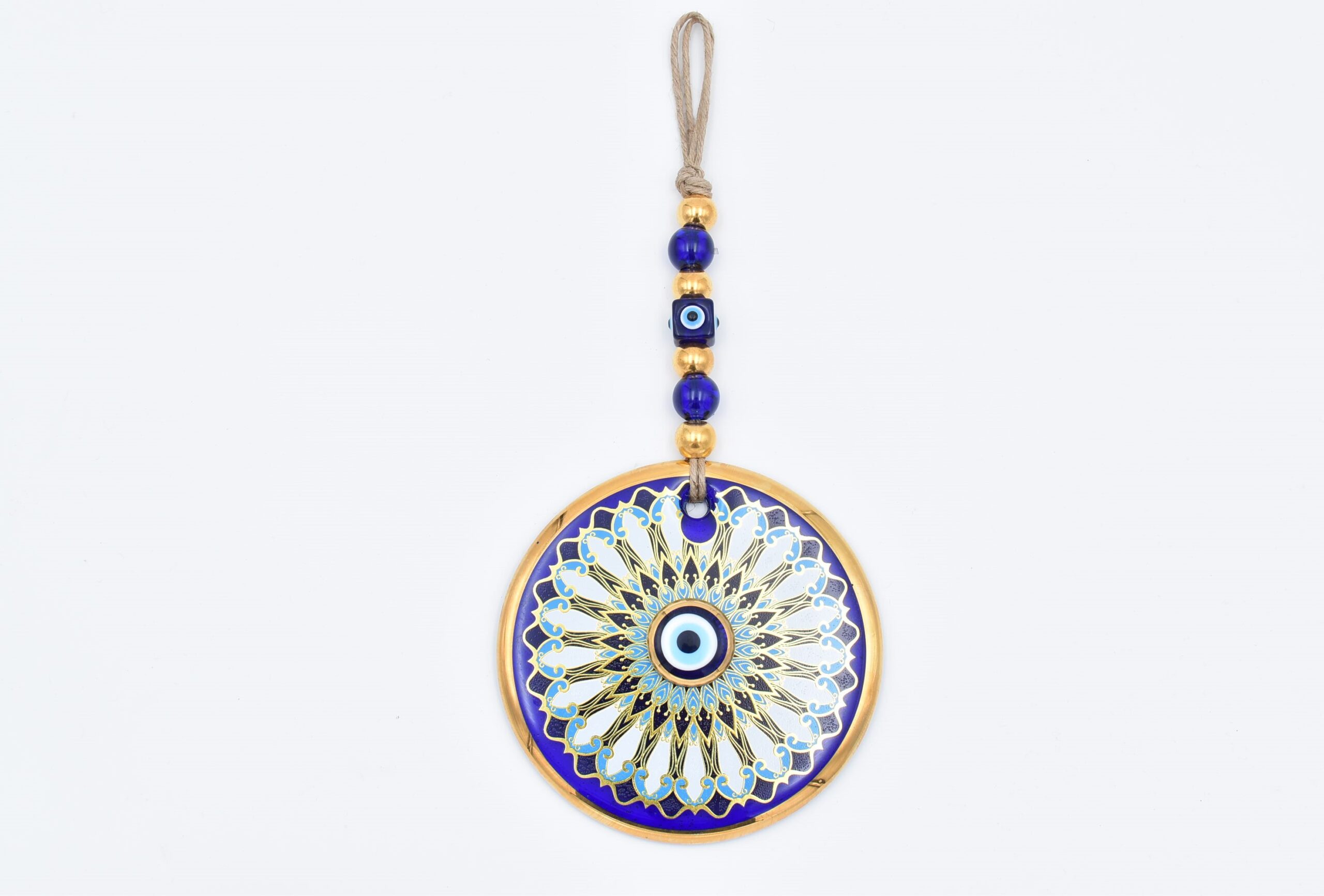 Κρεμαστό Γυάλινο Μάτι με Χρυσή Ρίγα και Κεντρική Χάντρα 13CM