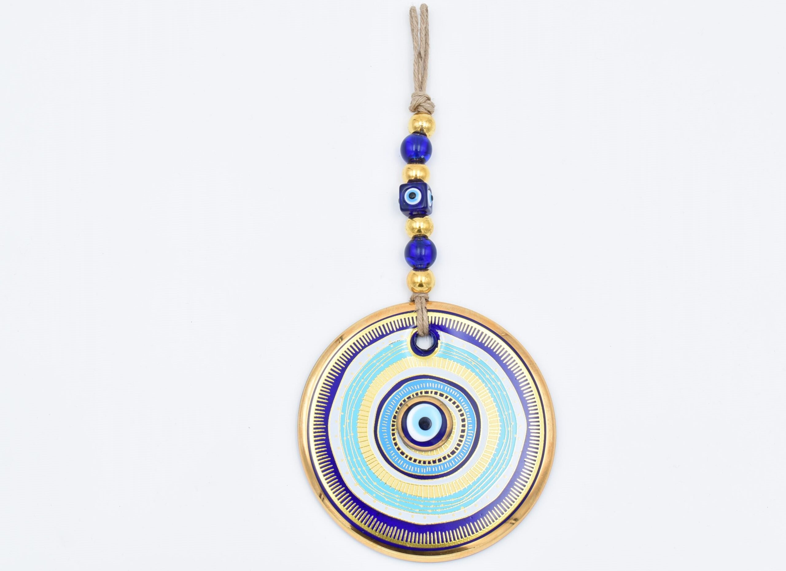 Κρεμαστό Γυάλινο Μάτι με Χρυσή Ρίγα και Κεντρική Χάντρα 11CM – 13CM
