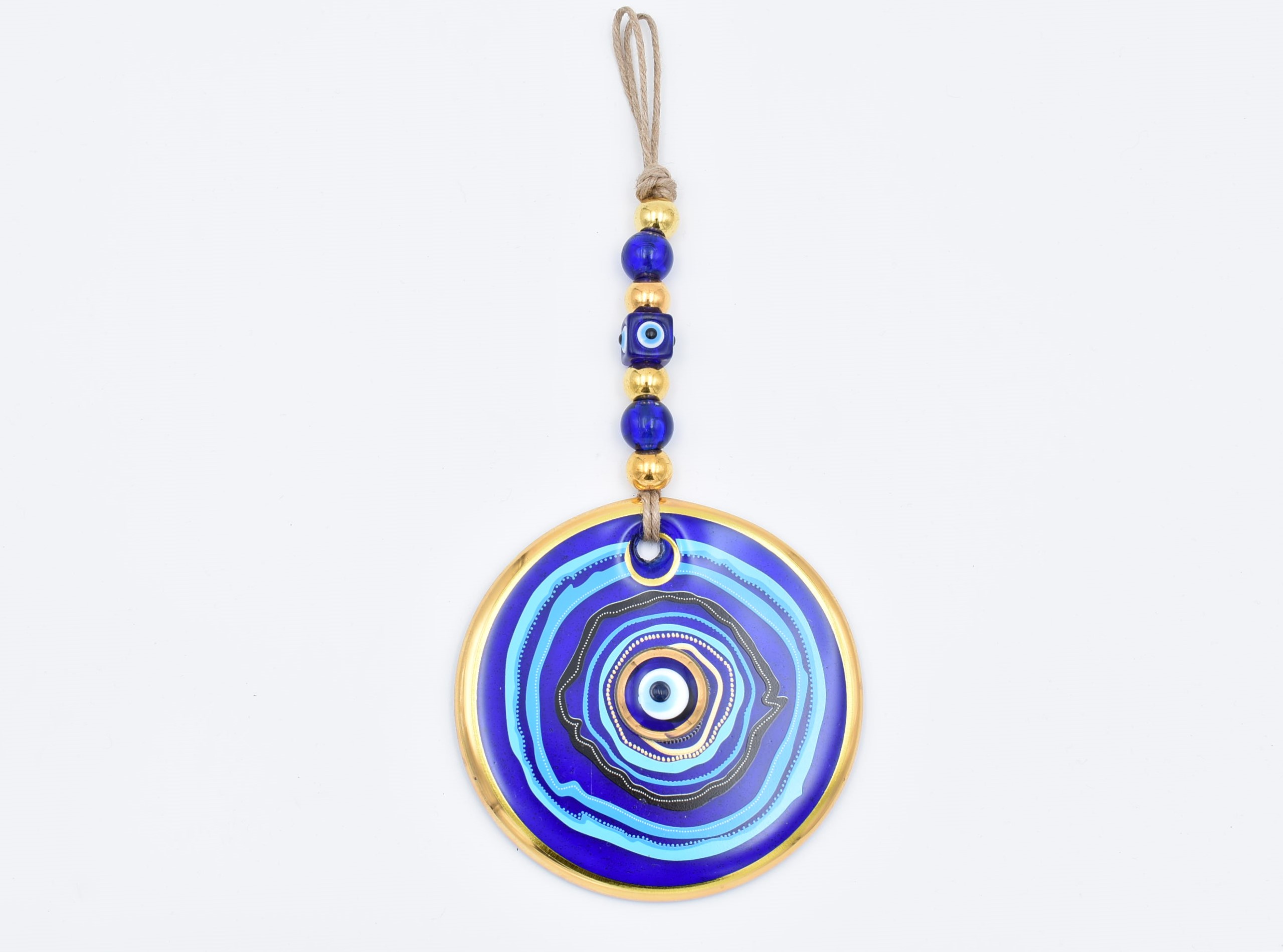 Κρεμαστό Γυάλινο Μάτι με Χρυσή Ρίγα και Κεντρική Χάντρα 11CM – 13CM