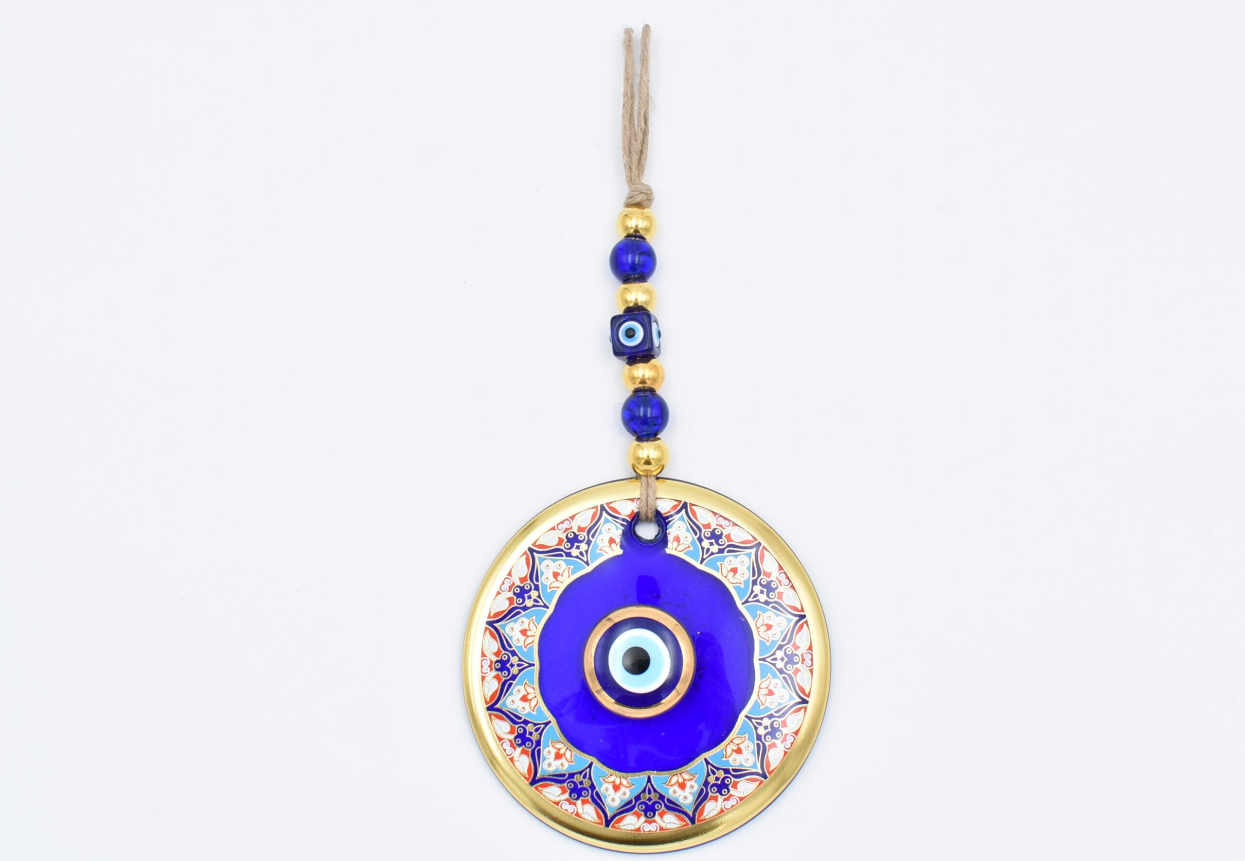 Κρεμαστό Γυάλινο Μάτι με Χρυσή Ρίγα και Κεντρική Χάντρα 11CM - 13CM