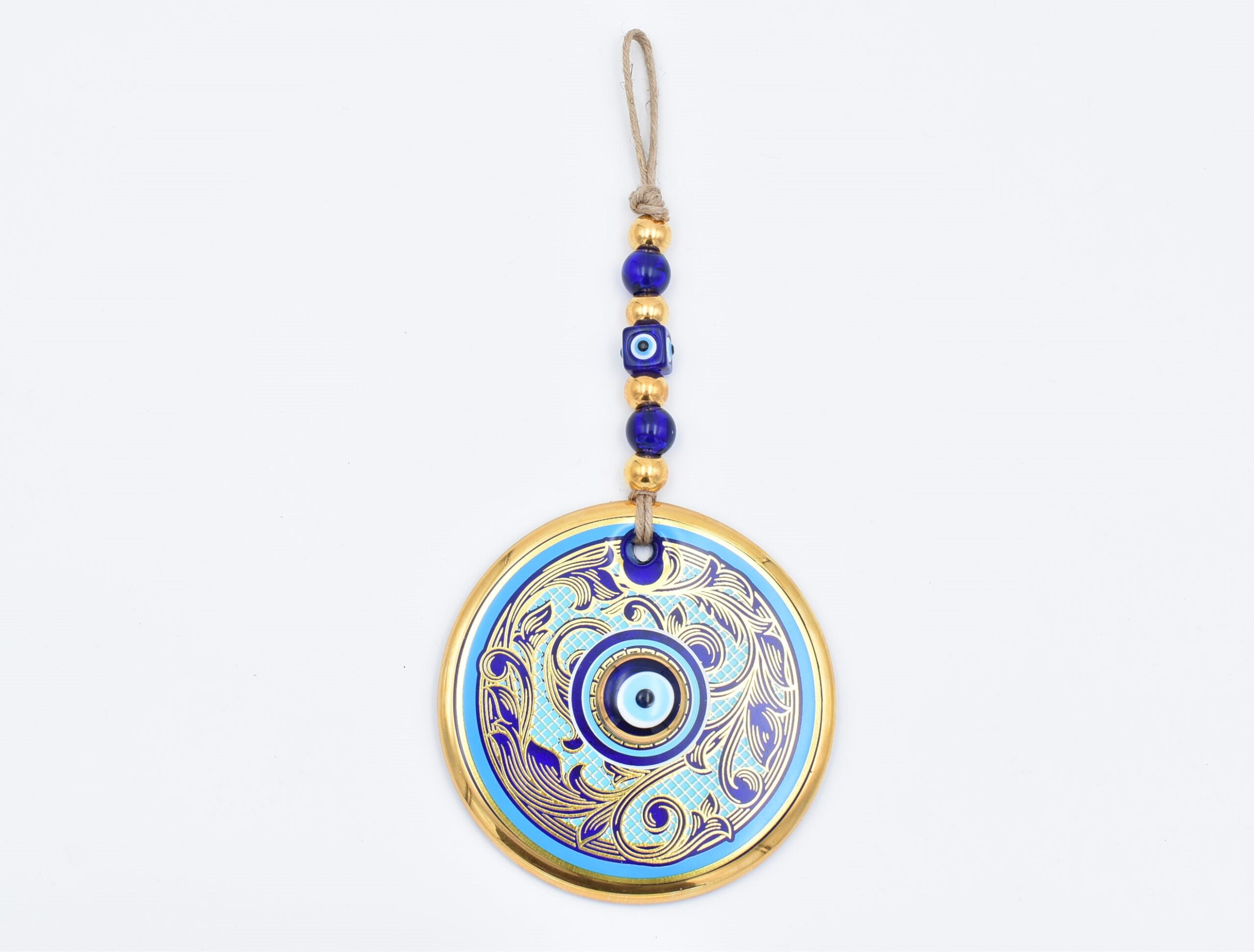 Κρεμαστό Γυάλινο Μάτι με Χρυσή Ρίγα και Κεντρική Χάντρα 11 cm – 13 cm