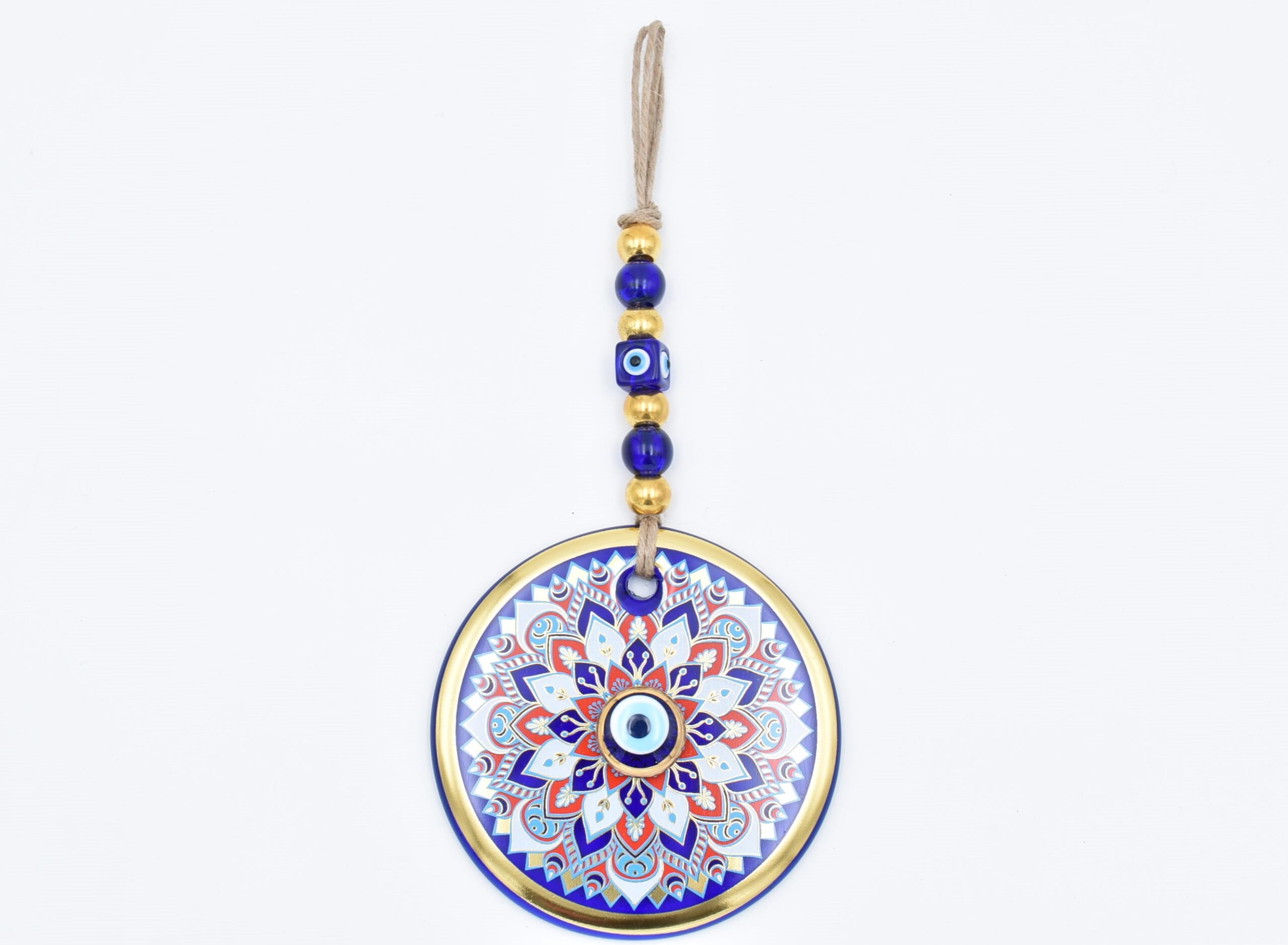 Κρεμαστό Γυάλινο Μάτι με Χρυσή Ρίγα και Κεντρική Χάντρα 11CM – 13CM