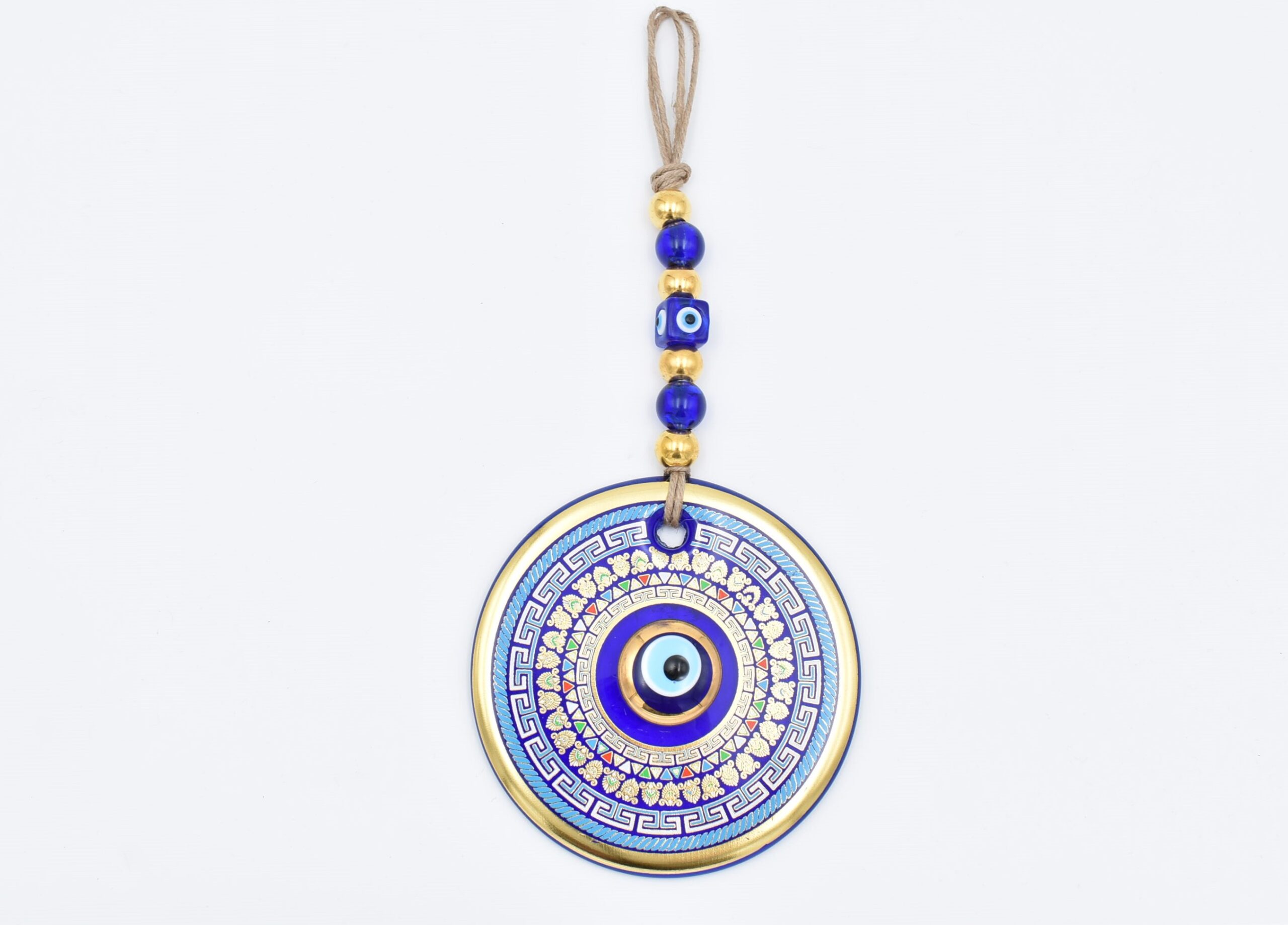 Κρεμαστό Γυάλινο Μάτι με Χρυσή Ρίγα και Κεντρική Χάντρα 13 cm
