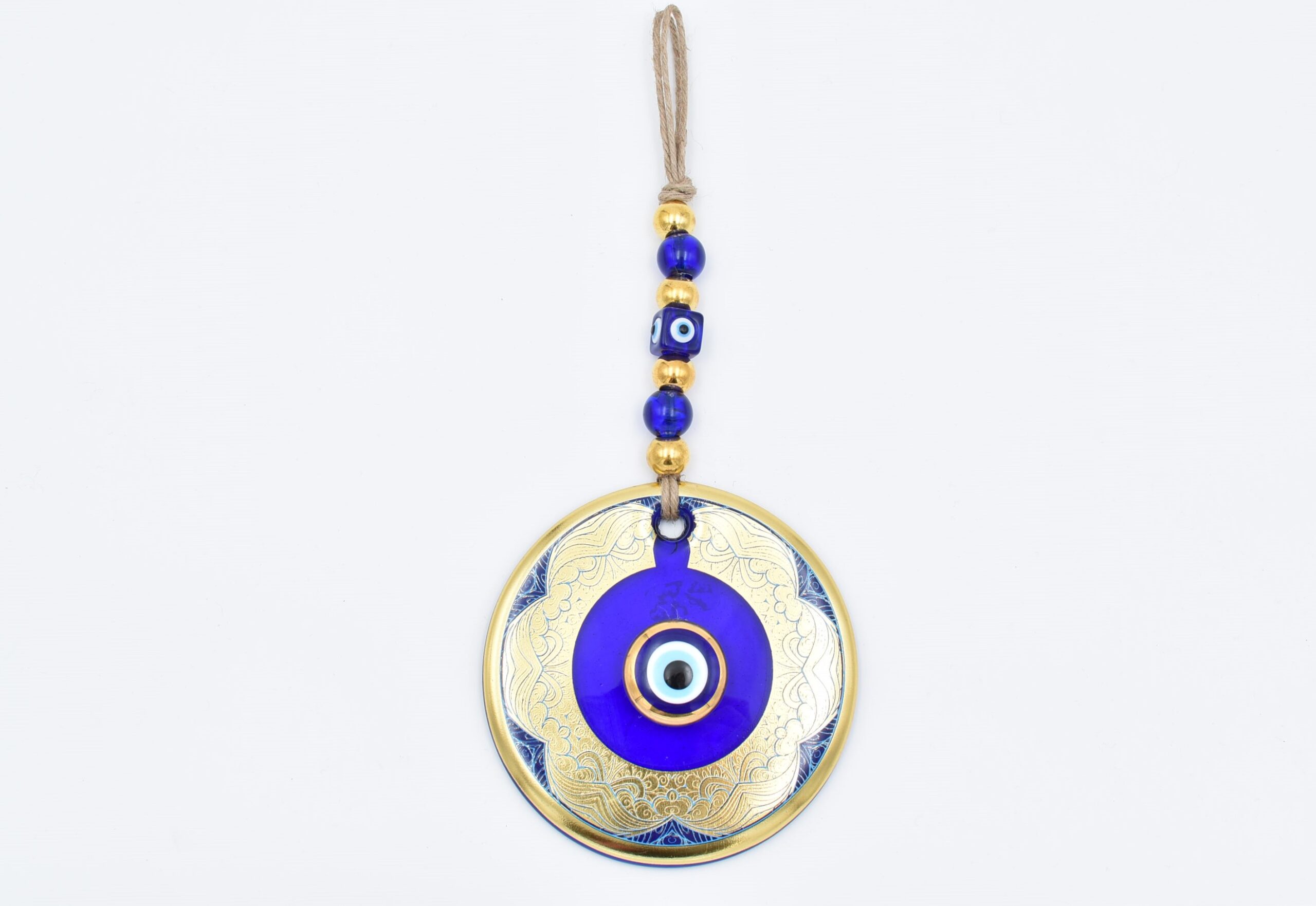 Κρεμαστό Γυάλινο Μάτι με Χρυσή Ρίγα και Κεντρική Χάντρα 11 cm – 13 cm