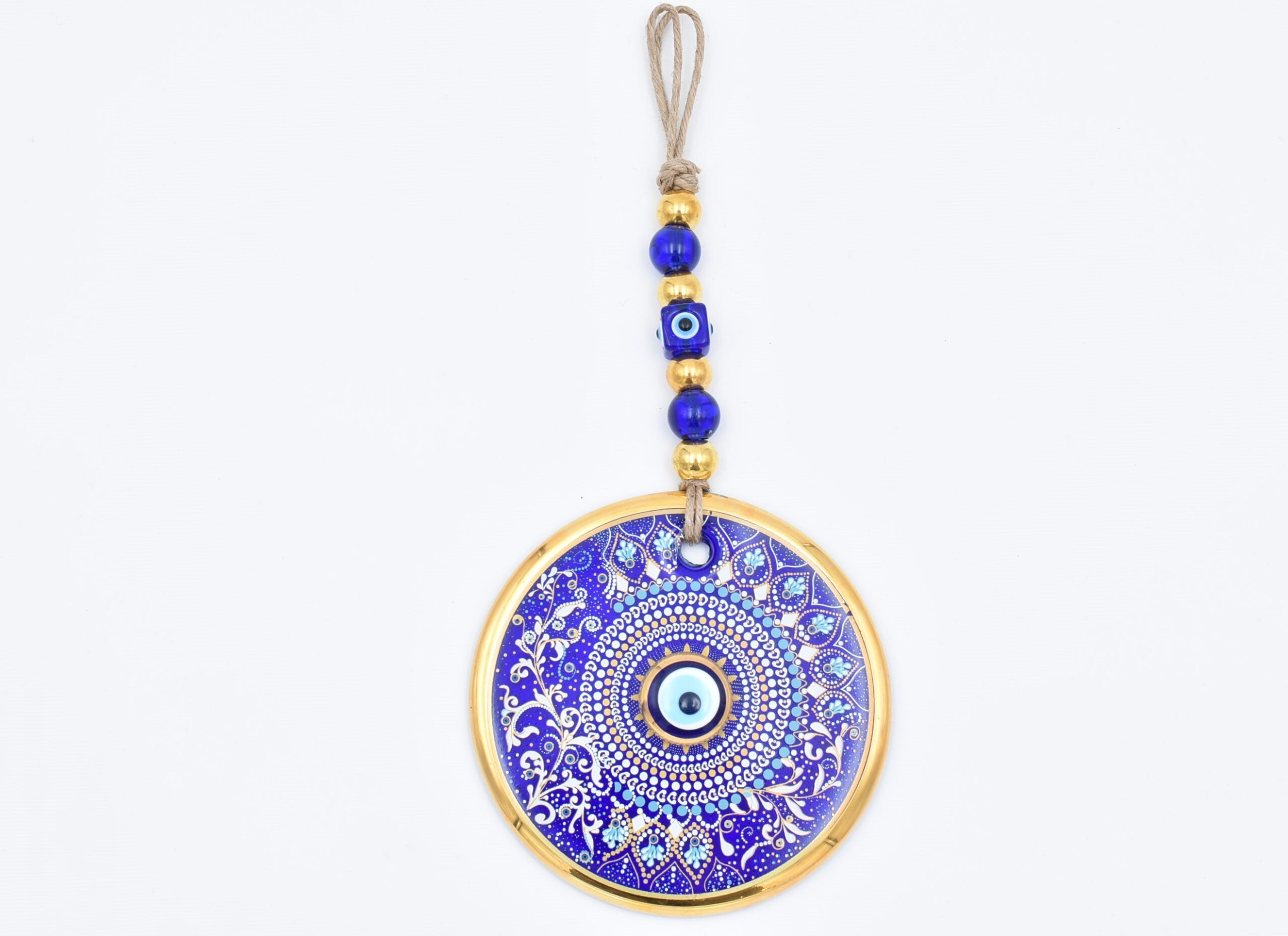 Κρεμαστό Γυάλινο Μάτι με Χρυσή Ρίγα και Κεντρική Χάντρα 11 cm – 13 cm