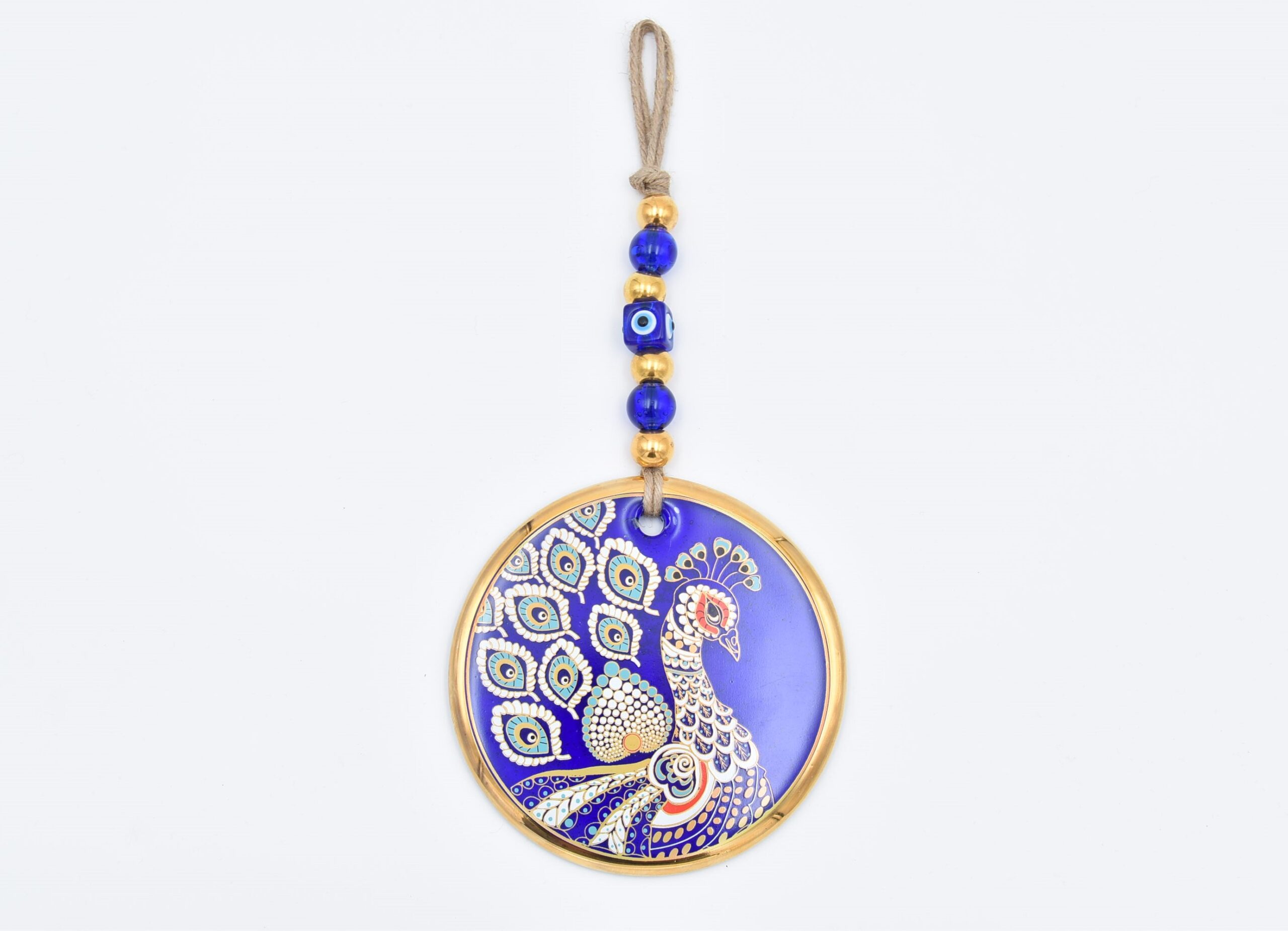 Κρεμαστό Γυάλινο Μάτι με Χρυσή Ρίγα