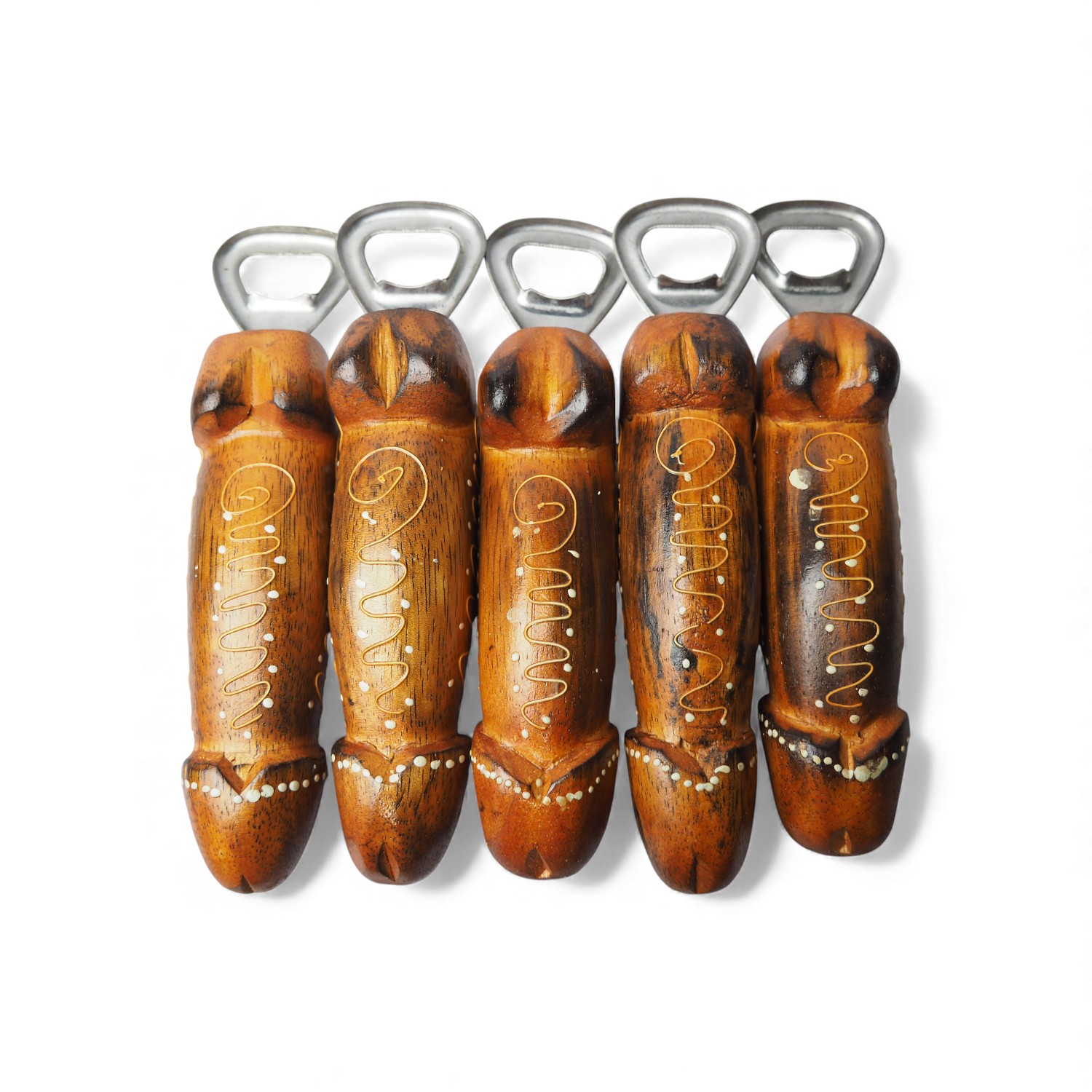 Ξύλινος Φαλλός Ανοιχτήρι Ανάγλυφος Καφέ