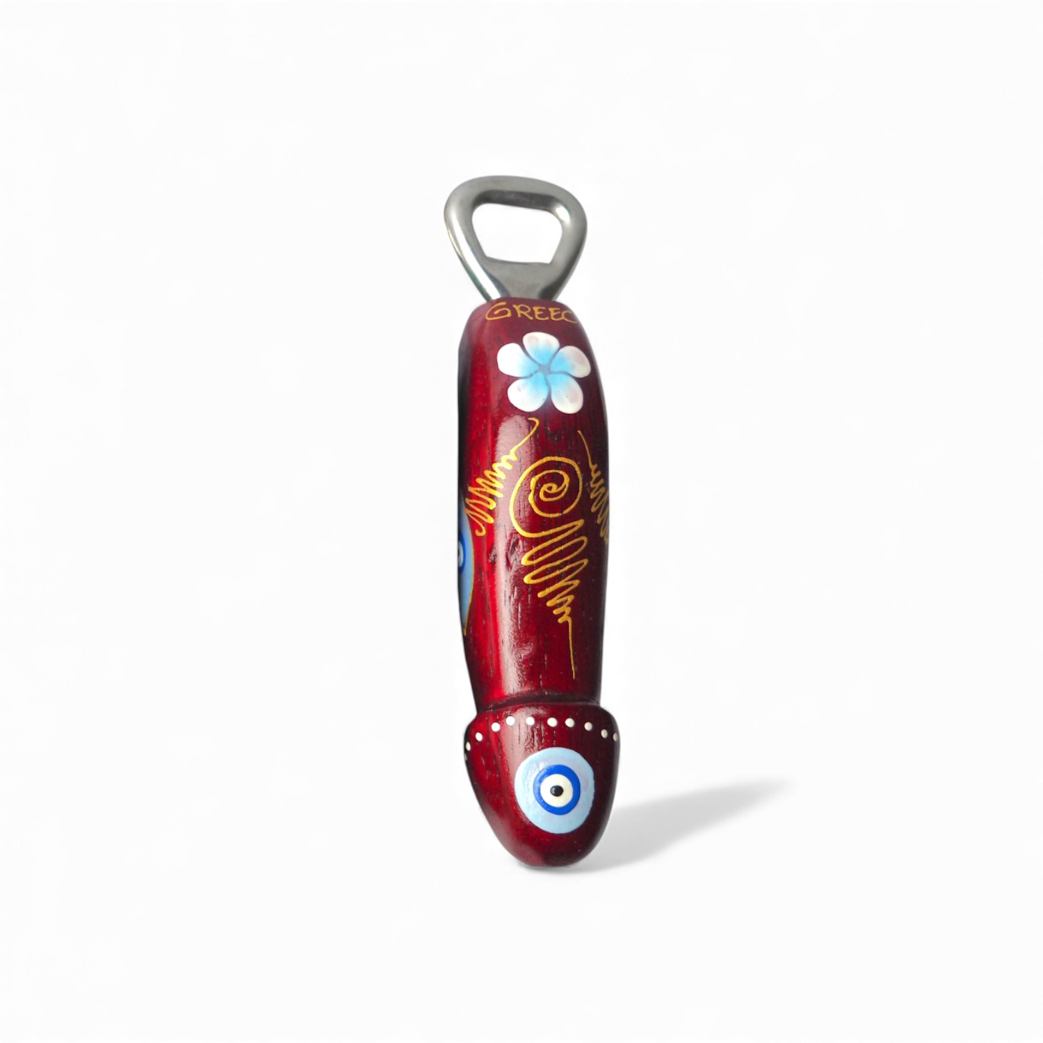 Ξύλινος Φαλλός Ανοιχτήρι Ανάγλυφος Μάτι – Χειροποίητο Souvenir (10–20 cm)