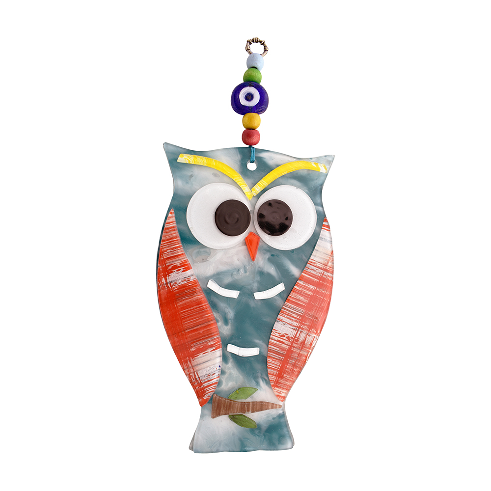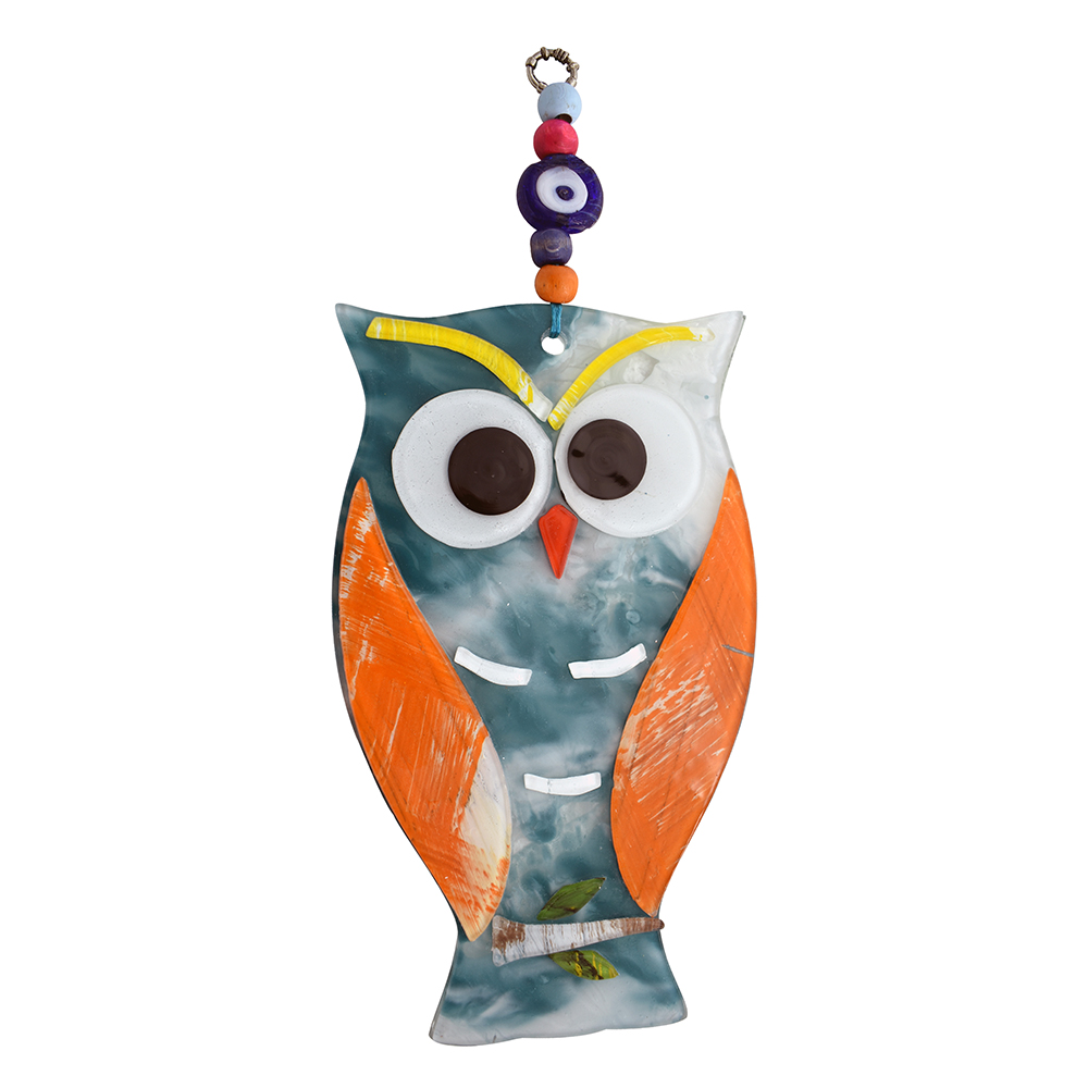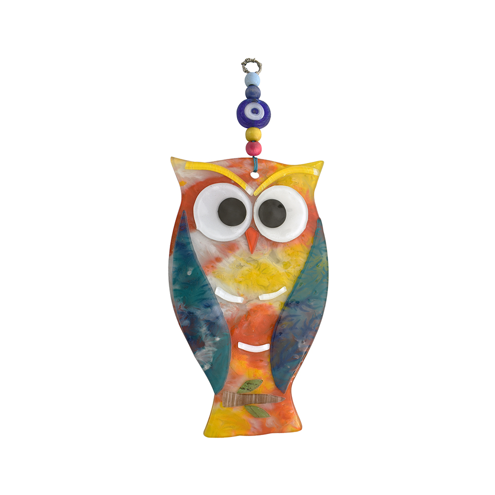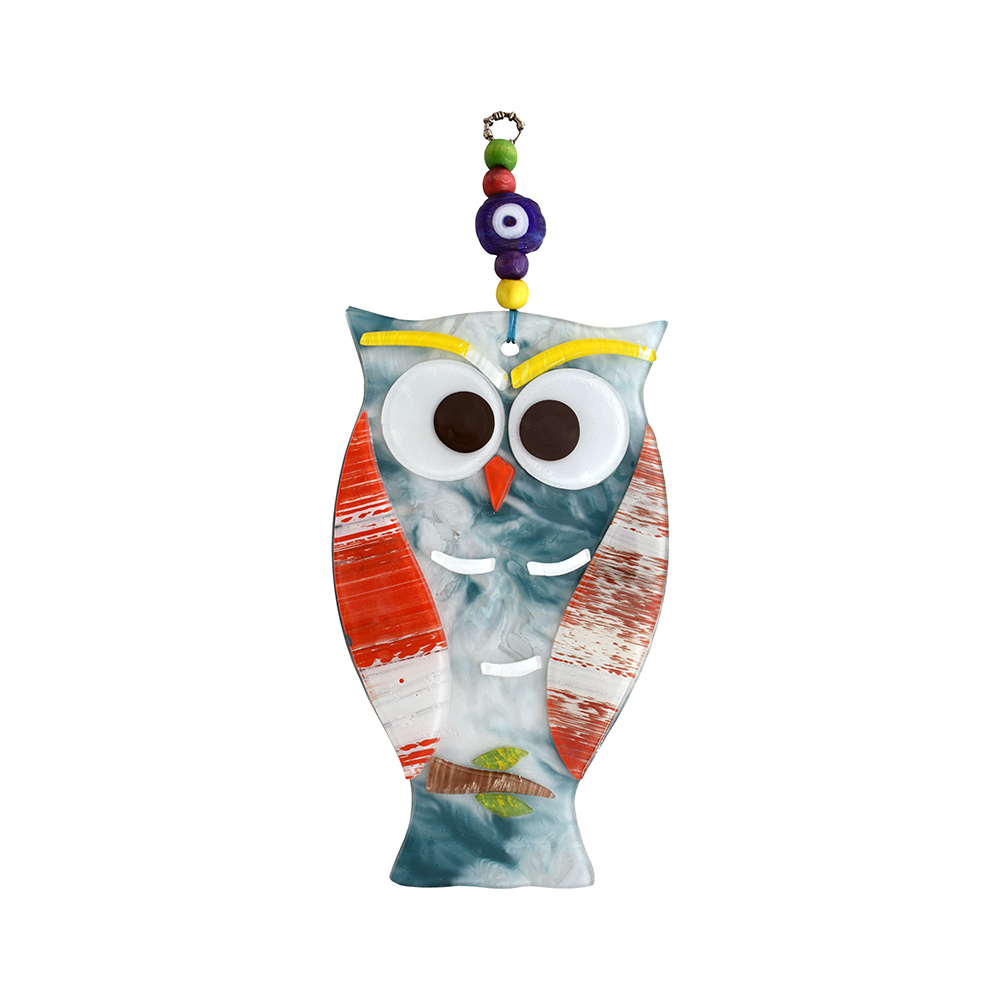 Κρεμαστή Κουκουβάγια Φυσητό 13 cm – Χειροποίητο Διακοσμητικό με Μάτι