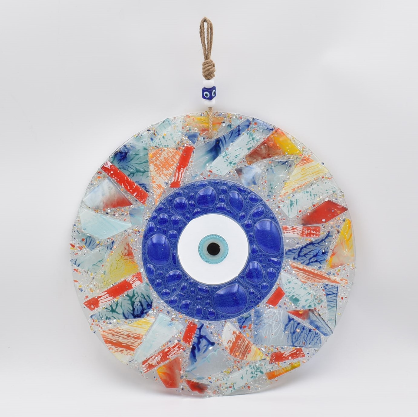 • Κεντρικό μπλε μάτι, σύμβολο προστασίας και καλής τύχης