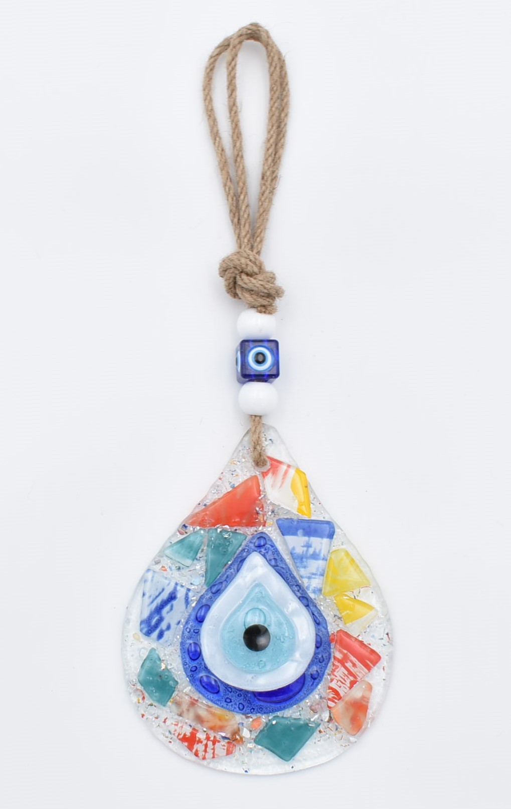 Φυσητό Κρεμαστό Μάτι Δάκρυ με Χρωματιστές Πέτρες 10 cm – 13 cm