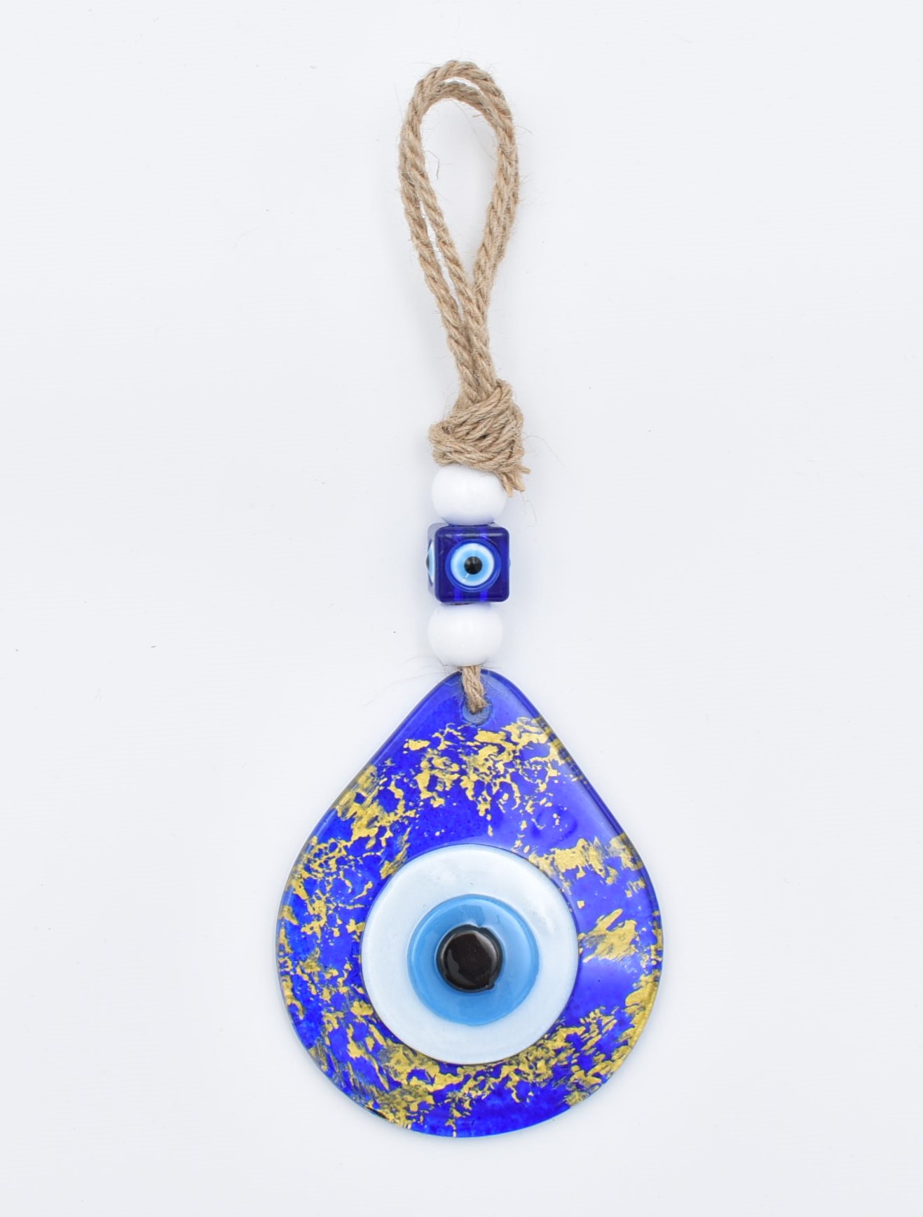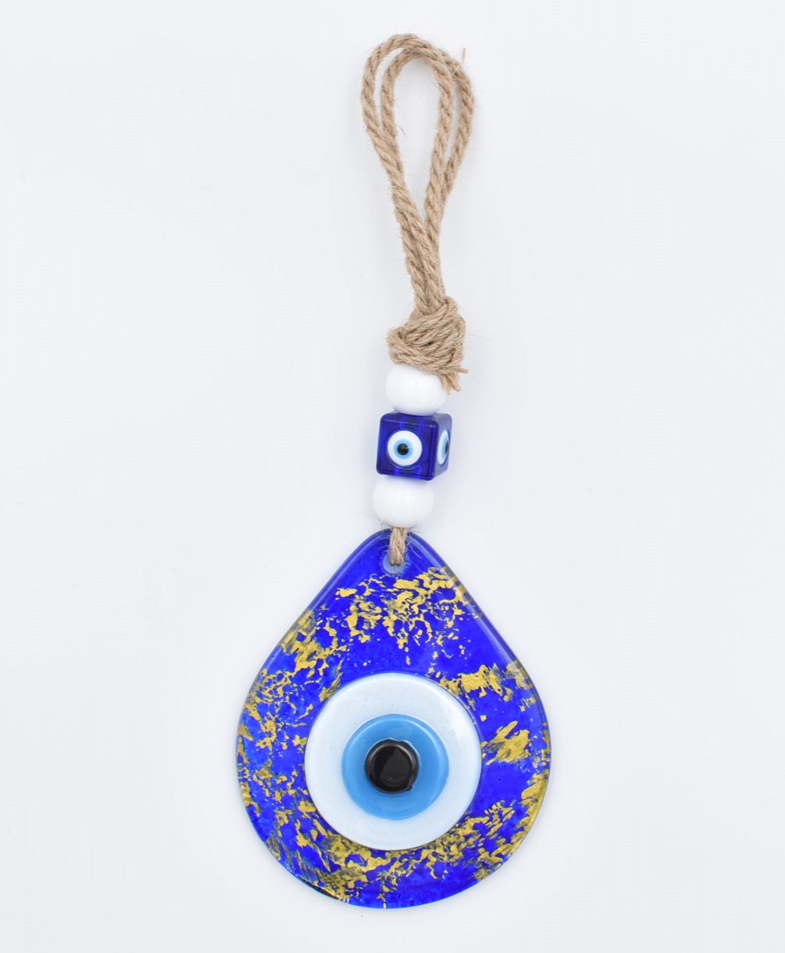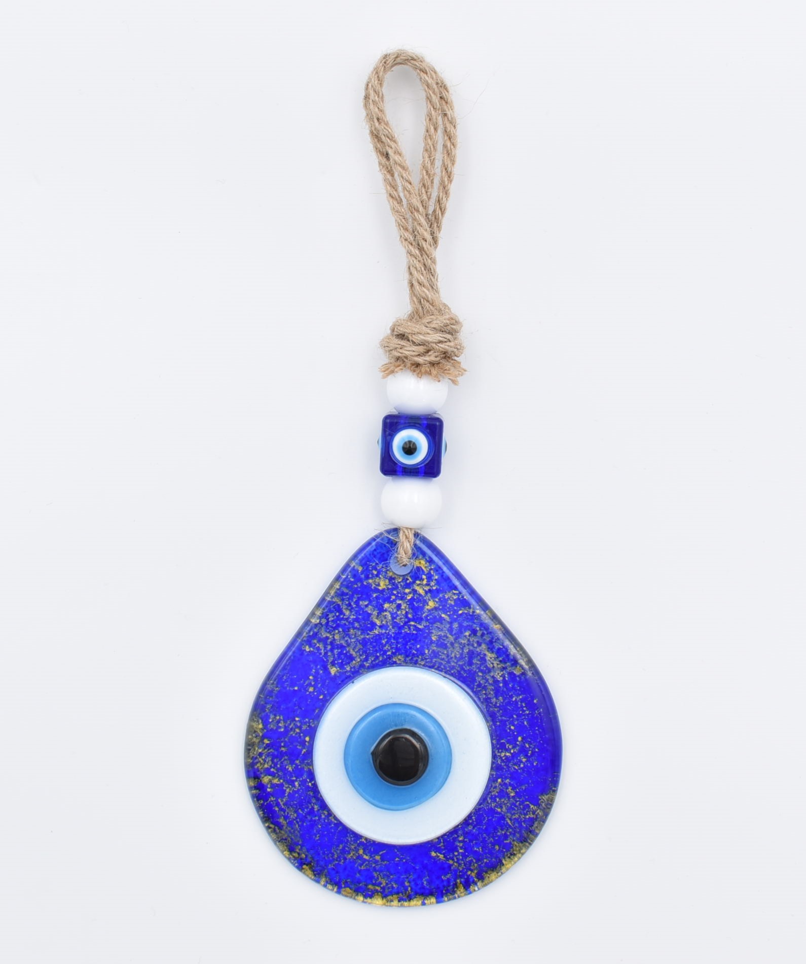 • Υλικό: Φυσητό γυαλί υψηλής ποιότητας Μάτι Μπλε με Εφέ Νερών και Ιριδίζουσες Χρυσές Λεπτομέρειες.